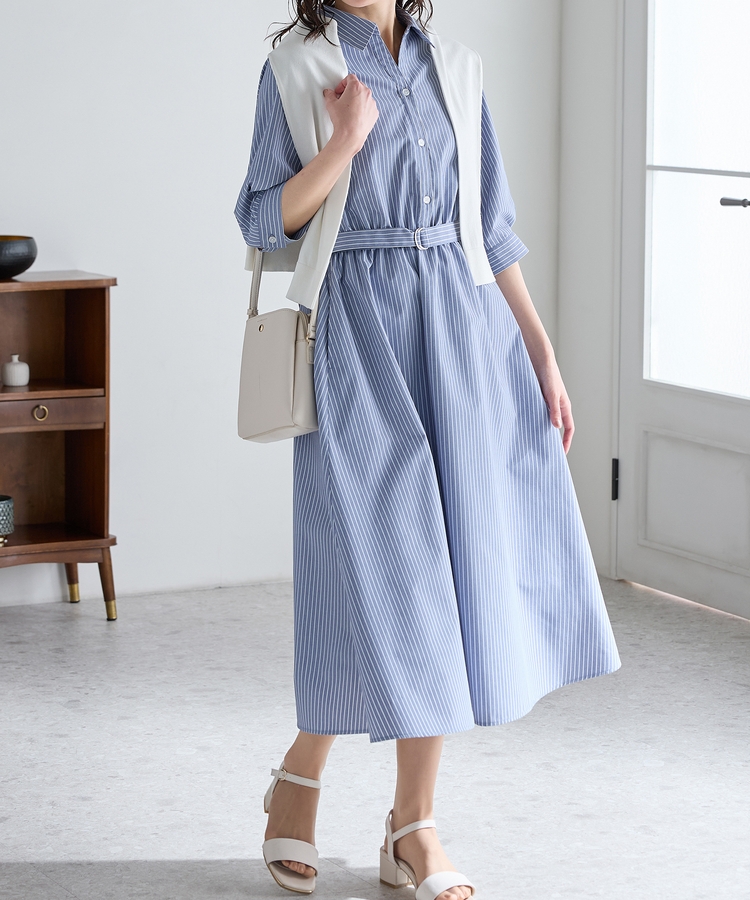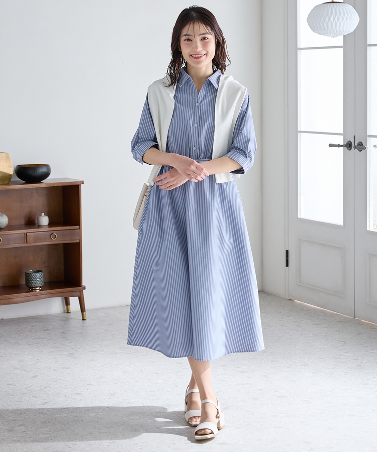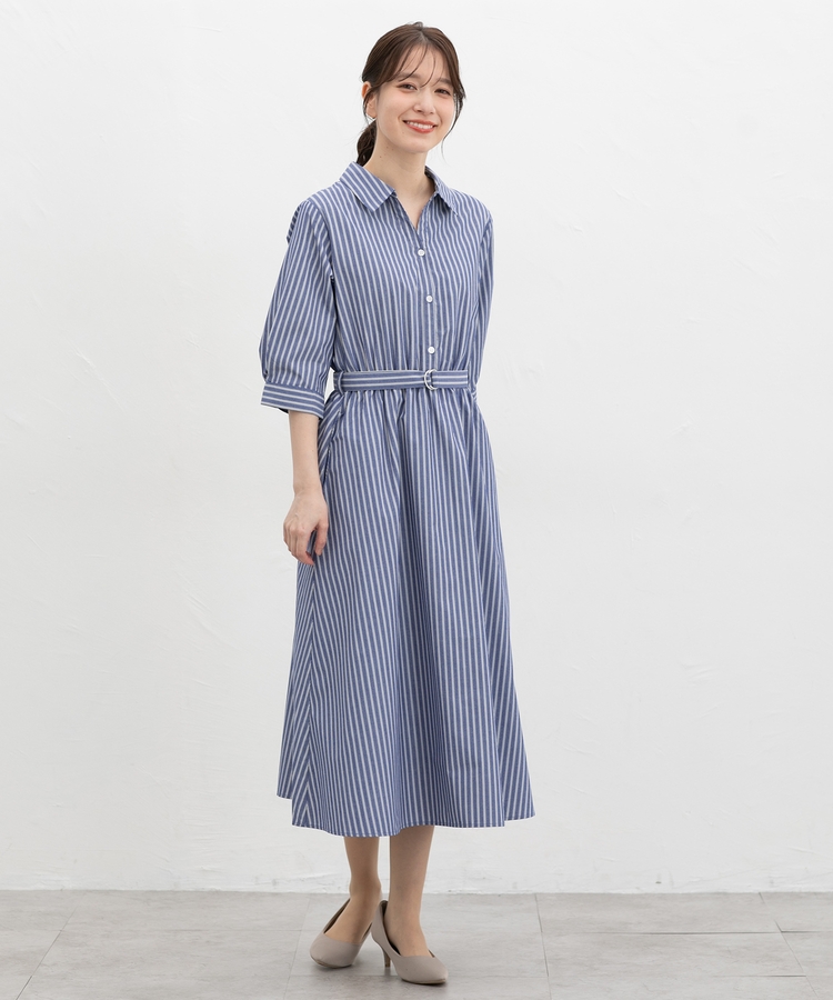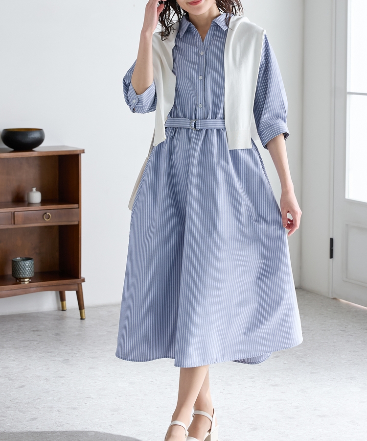 6分袖シャツワンピース