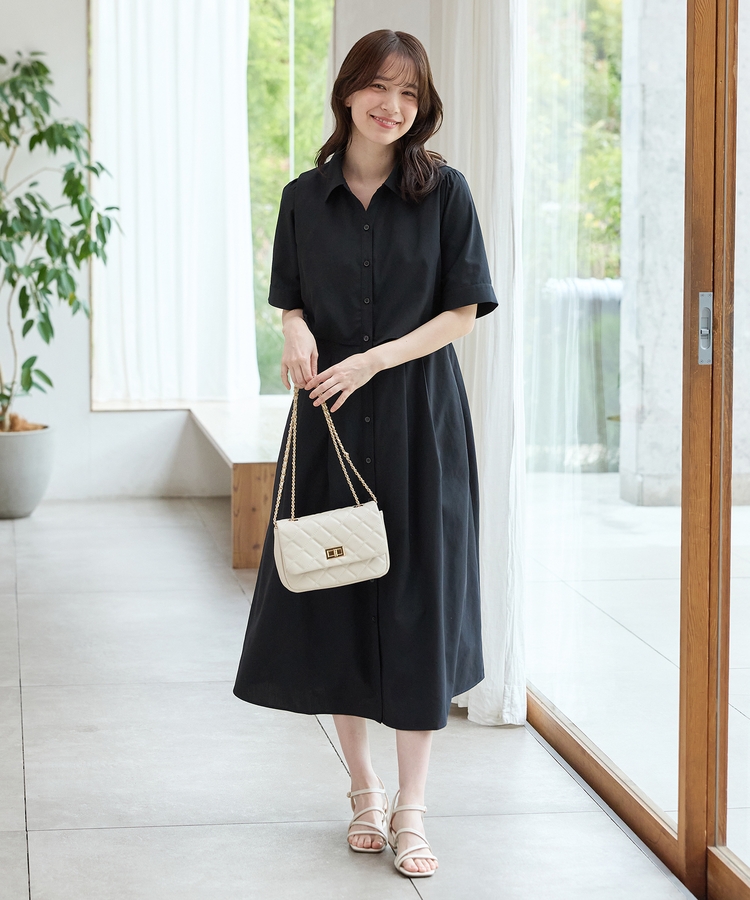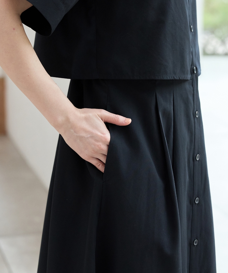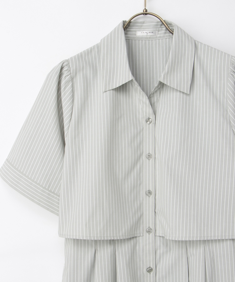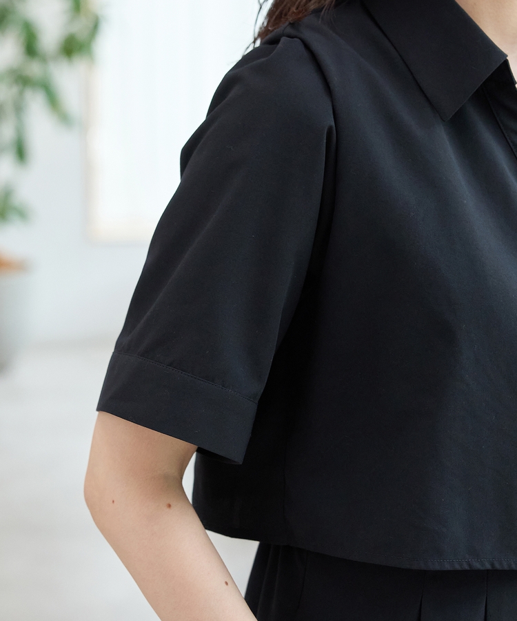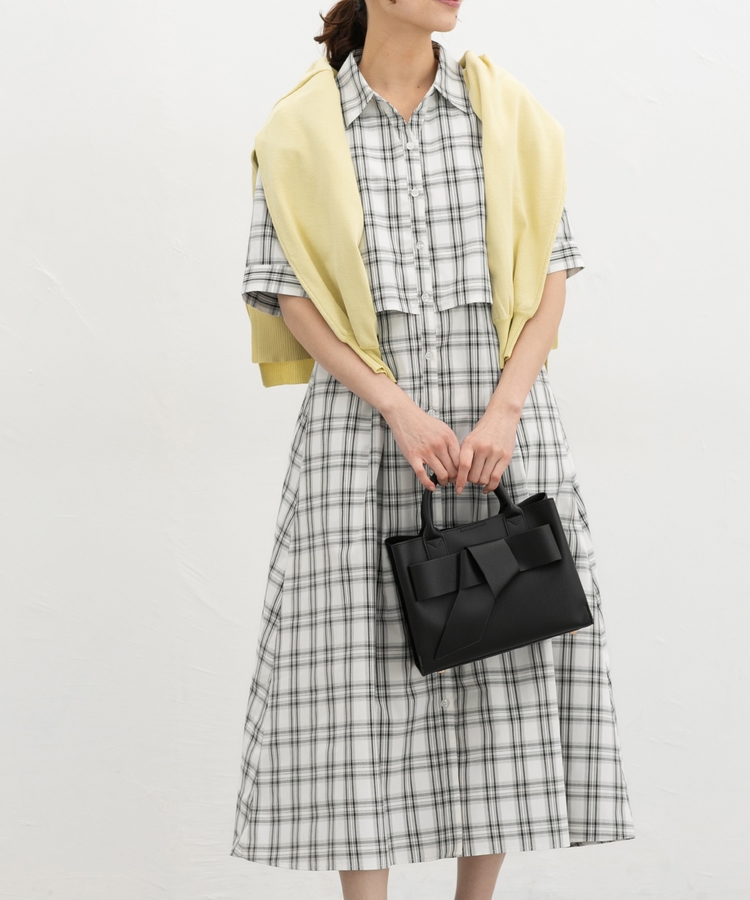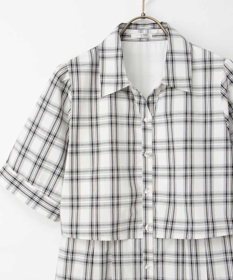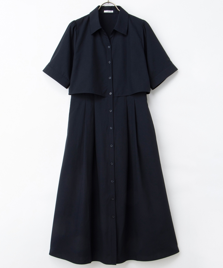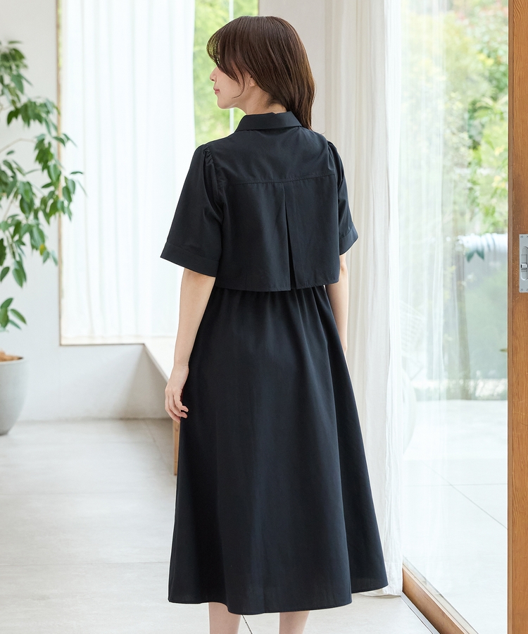 クロップドシャツとロングスカートをレイヤードしたような着こなしが1枚で楽しめ、時短も叶う上品デザイン。