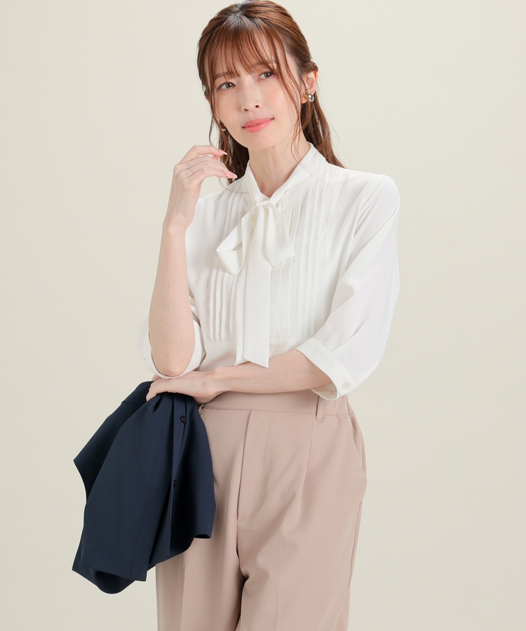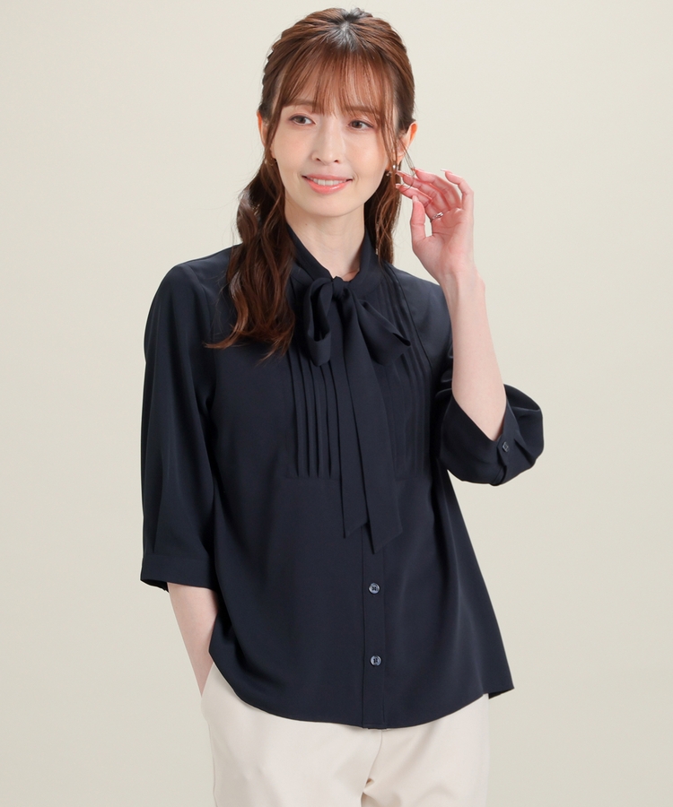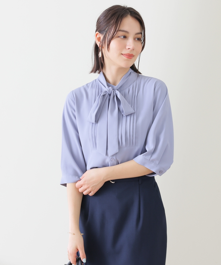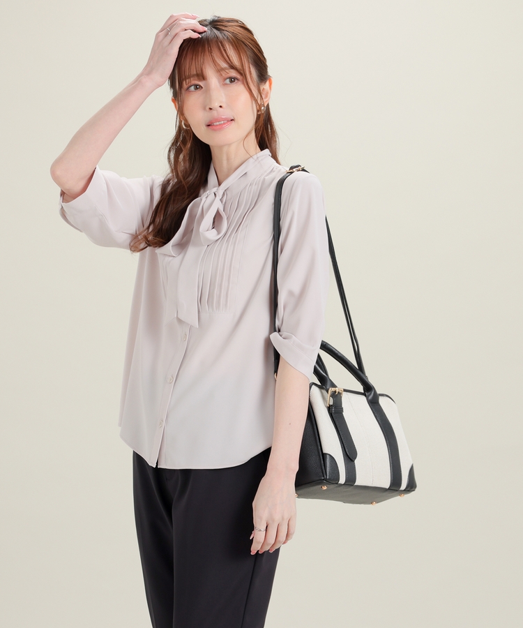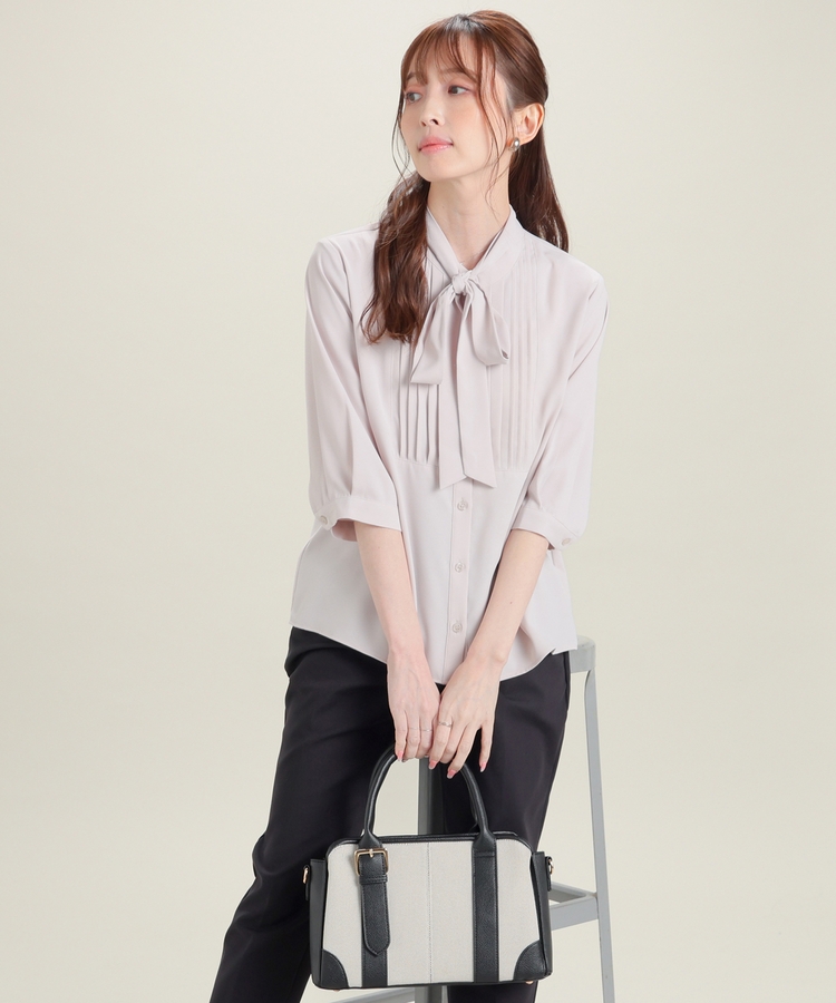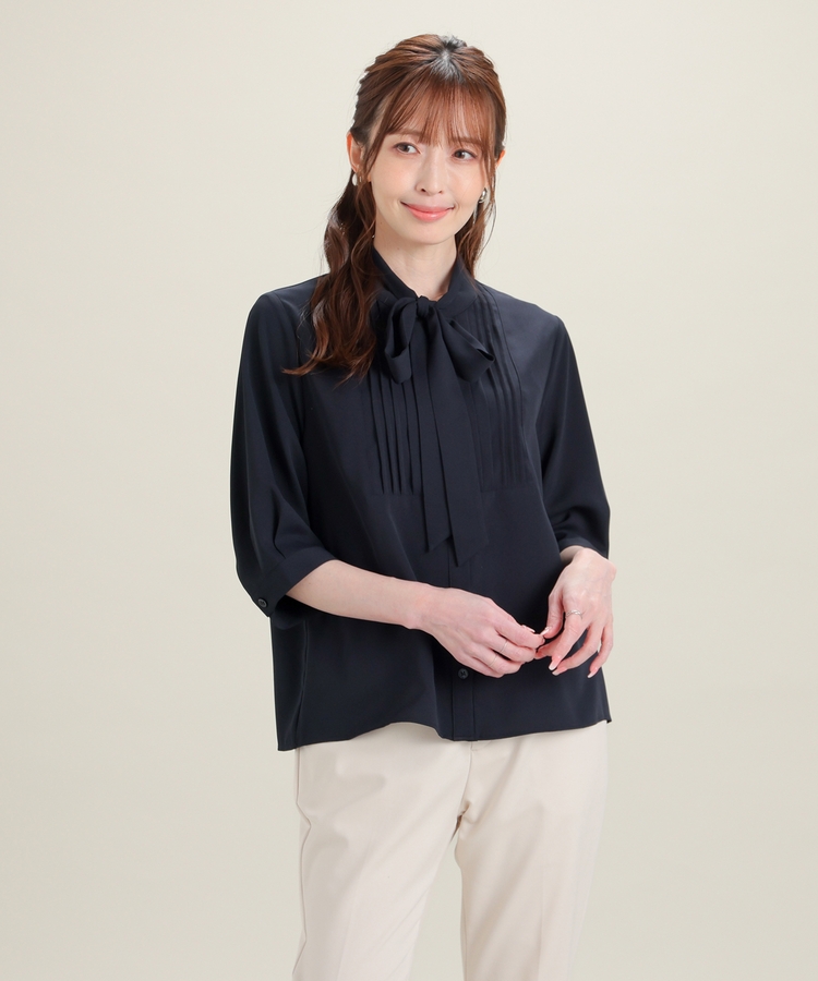 6分袖ボウタイブラウス
