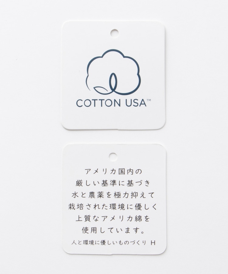 アメリカ国内の厳しい基準に基づき、水と農薬を極力抑えて栽培された、環境に優しく着心地もよいUSAコットン100%素材。