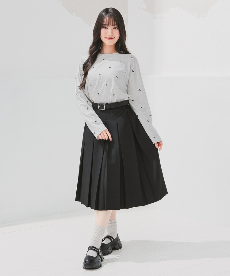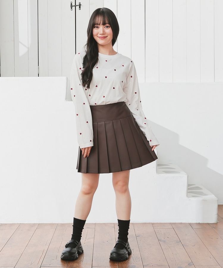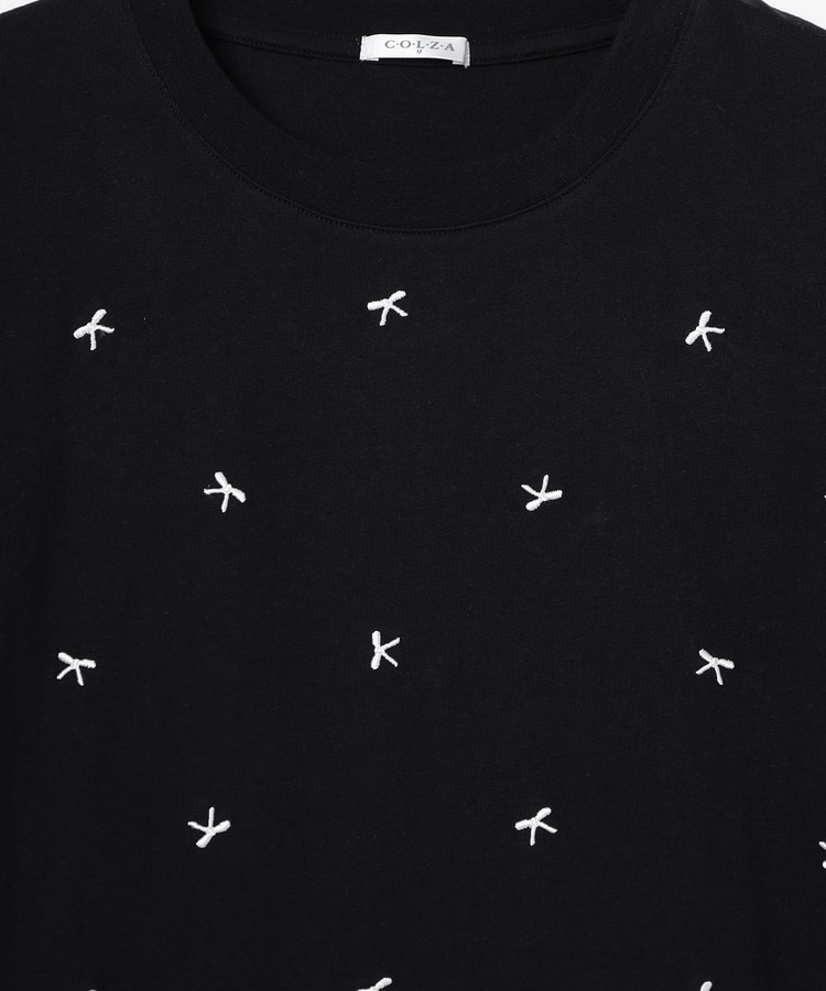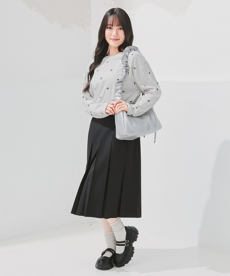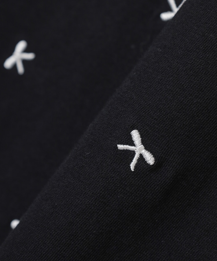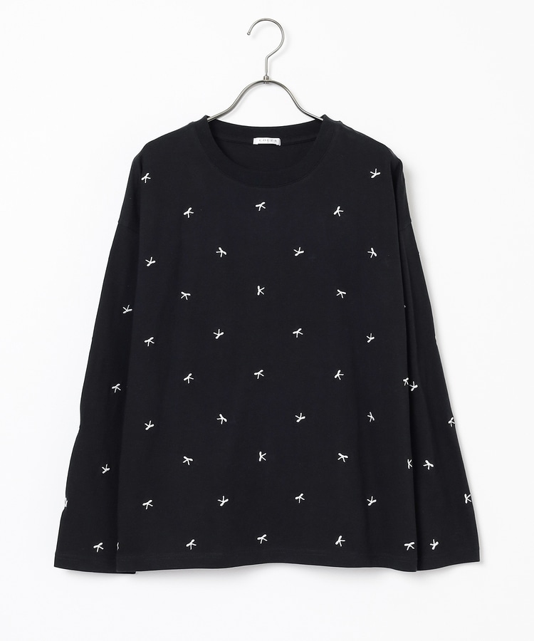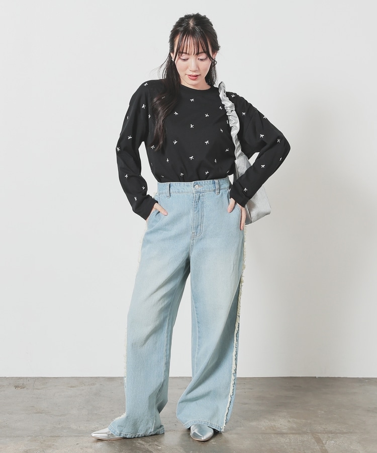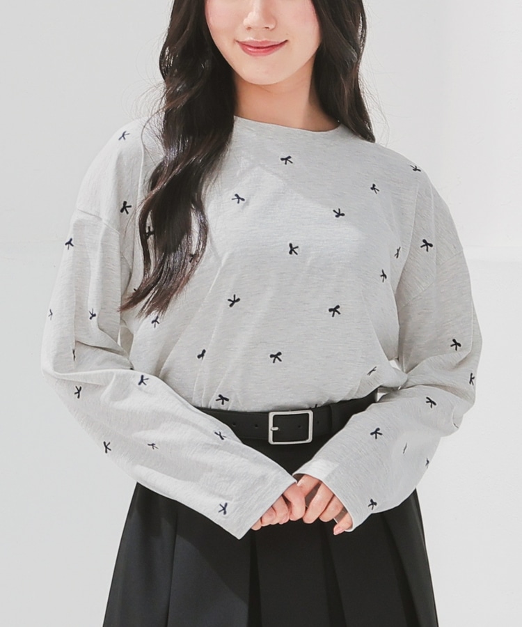 全体にちりばめれたハートとリボンモチーフの刺繍がキュートなデザイン。