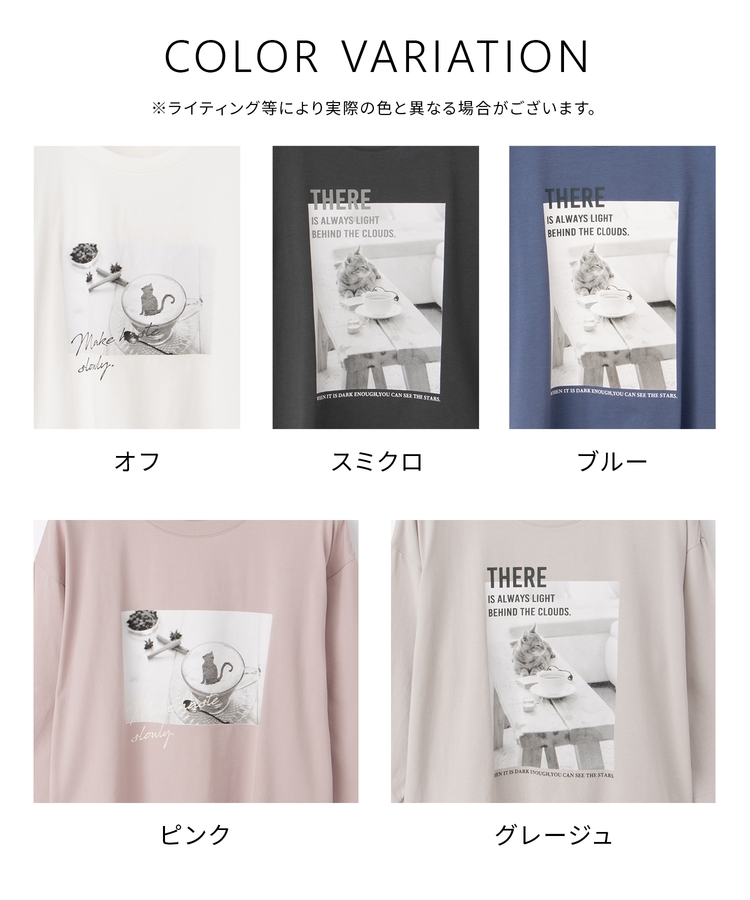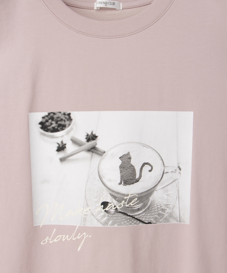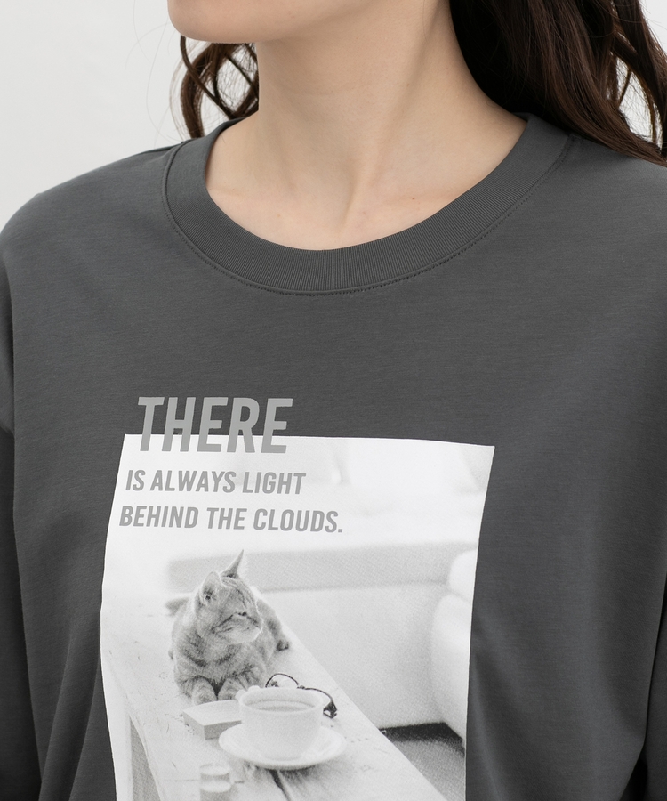 モノクロのフォトプリントがお洒落な、1枚で着映える大人可愛いデザイン。