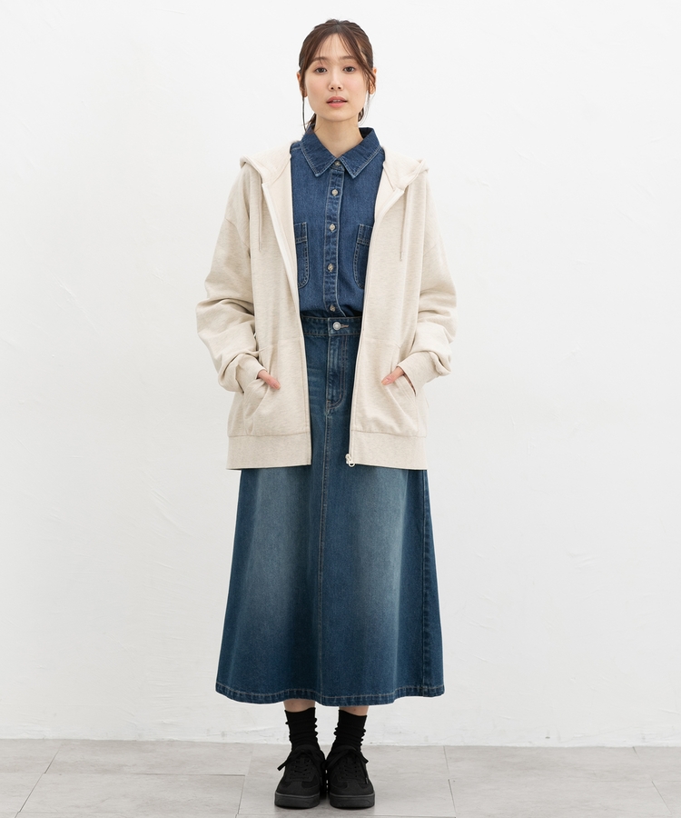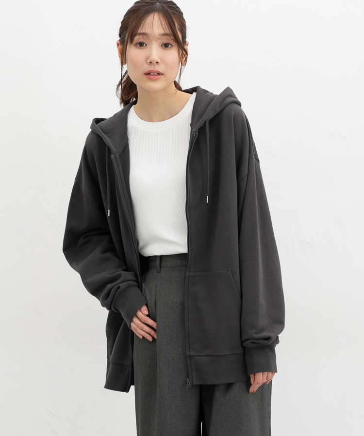 ヒップまですっぽり隠れる丈感のゆったりシルエットでこなれた印象に。