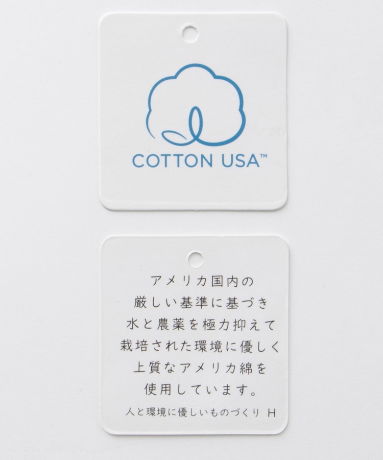 アメリカ国内の厳しい基準に基づき、水と農薬を極力抑えて栽培された、環境に優しく着心地もよいUSAコットン100%素材。