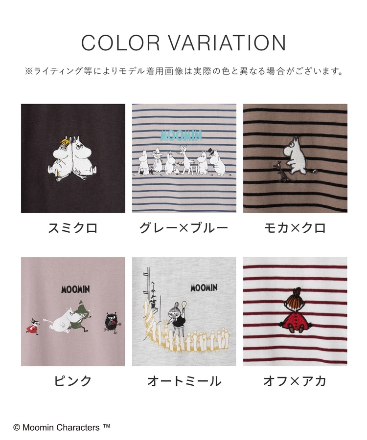 ムーミンと仲間たちのプリントや刺繍がおしゃれなデザイン。