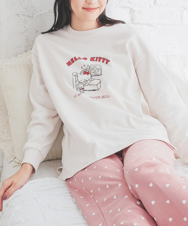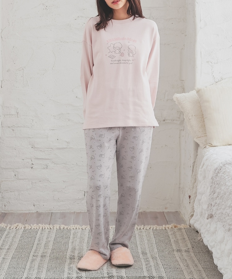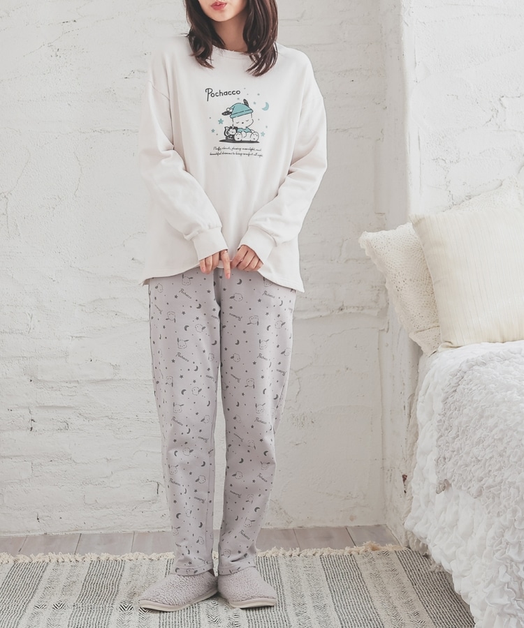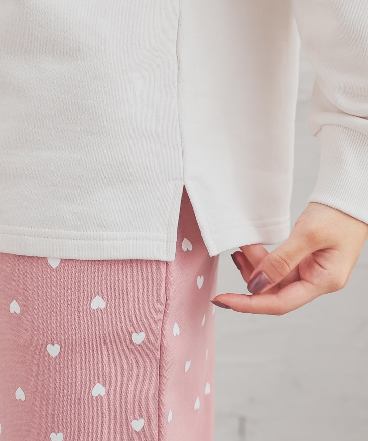 トップスのプリントやボトムスの総柄がキュートなデザイン。