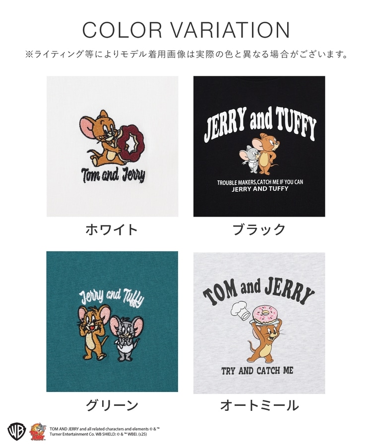 大人気アニメ「トムとジェリー」の刺繍やプリントがキュートなデザイン。