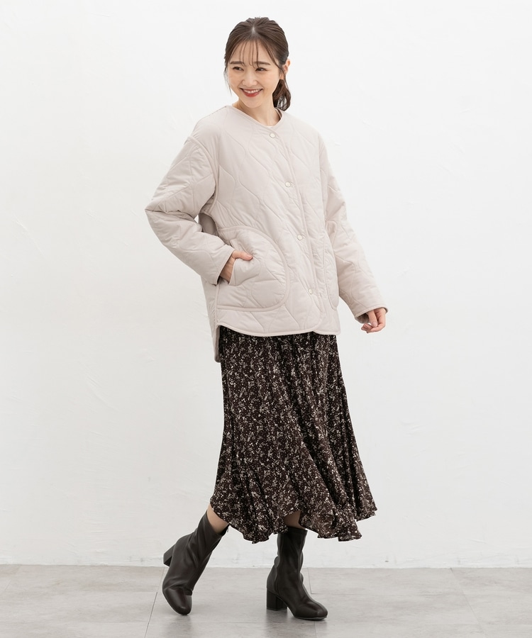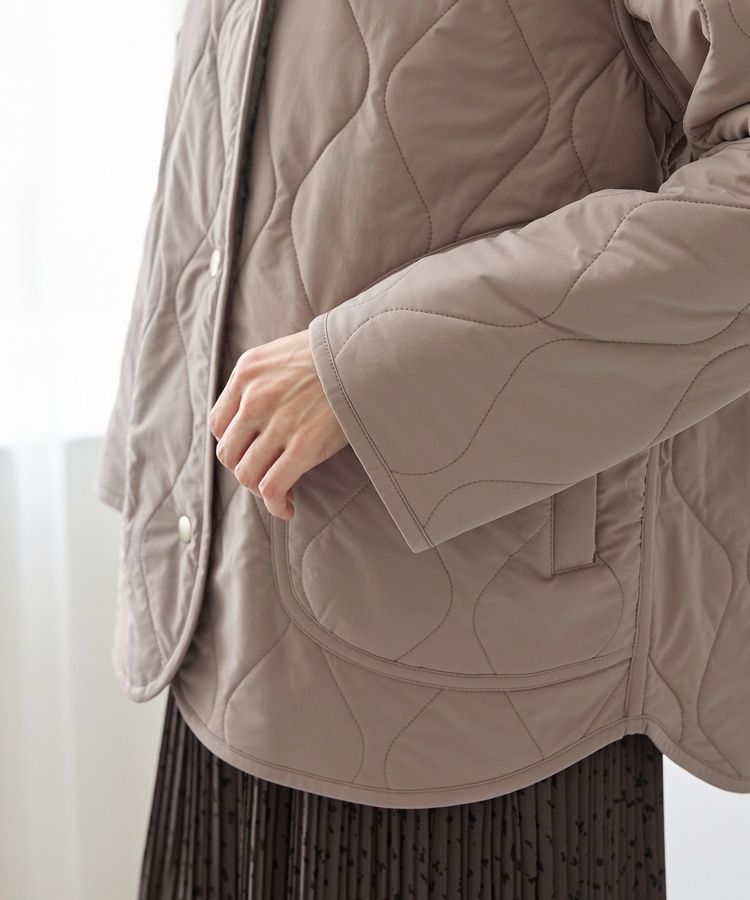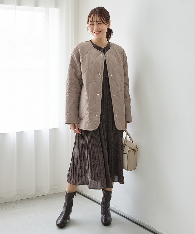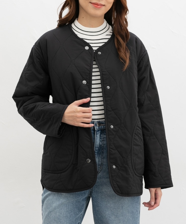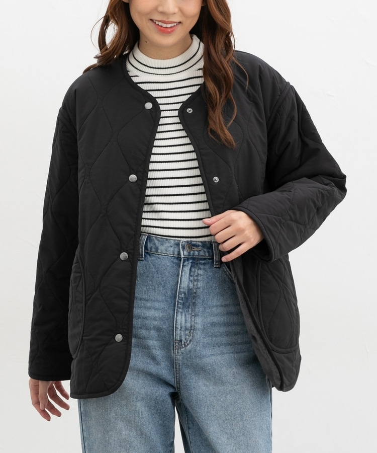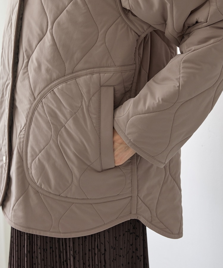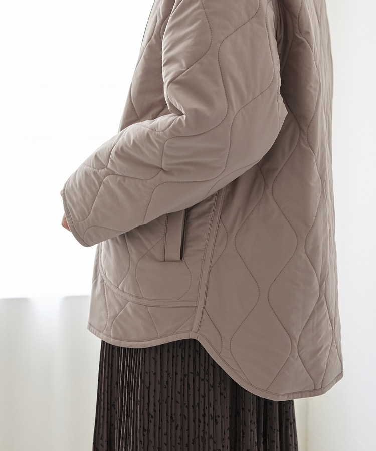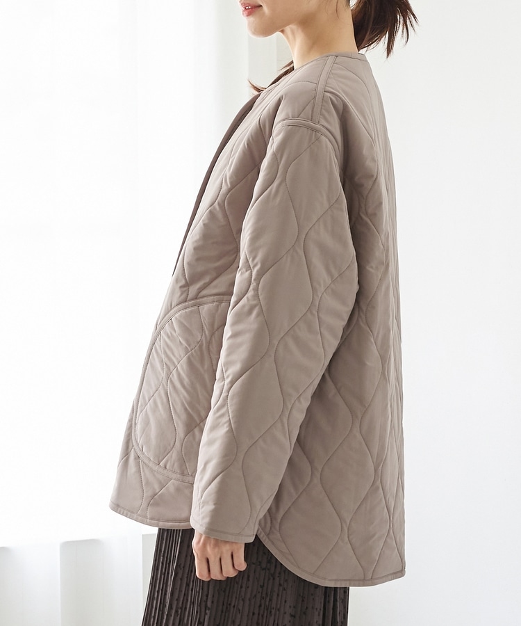 首元が開きすぎないノーカラーで、キルティングとファーの2Wayで楽しめるリバーシブルデザイン。
