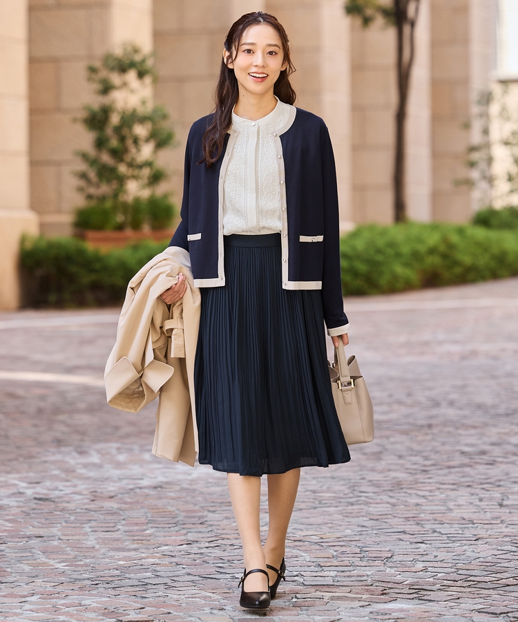 ジャケットにも合うサイズ感で、テーパードパンツやフレアスカートと合わせたきれいめお仕事スタイルに大活躍。