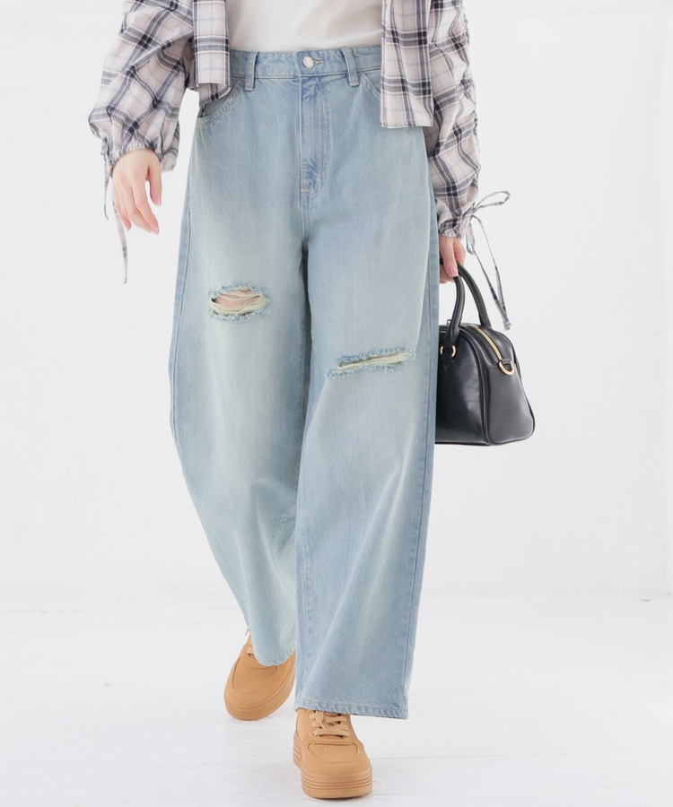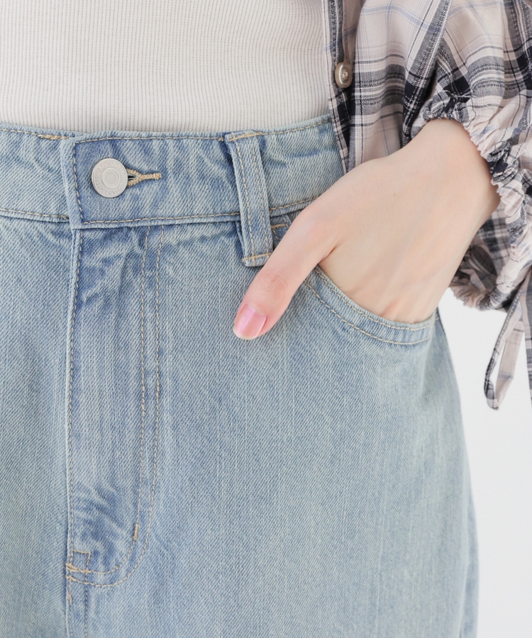 ストンと落ちるすっきりストレートなシルエットとハイウエストで、脚長効果抜群。
