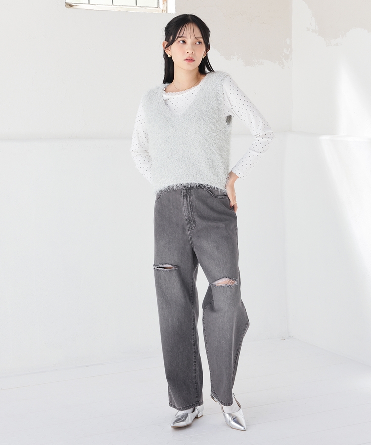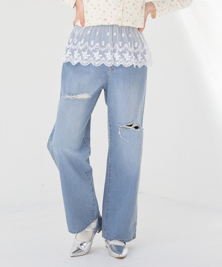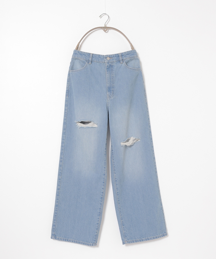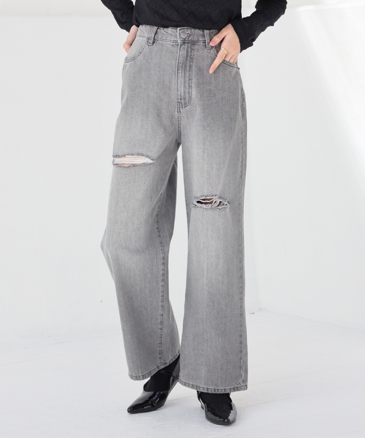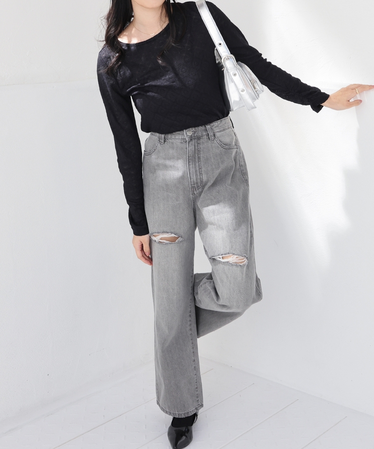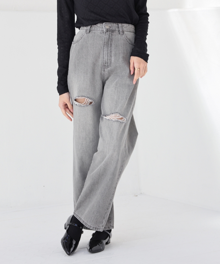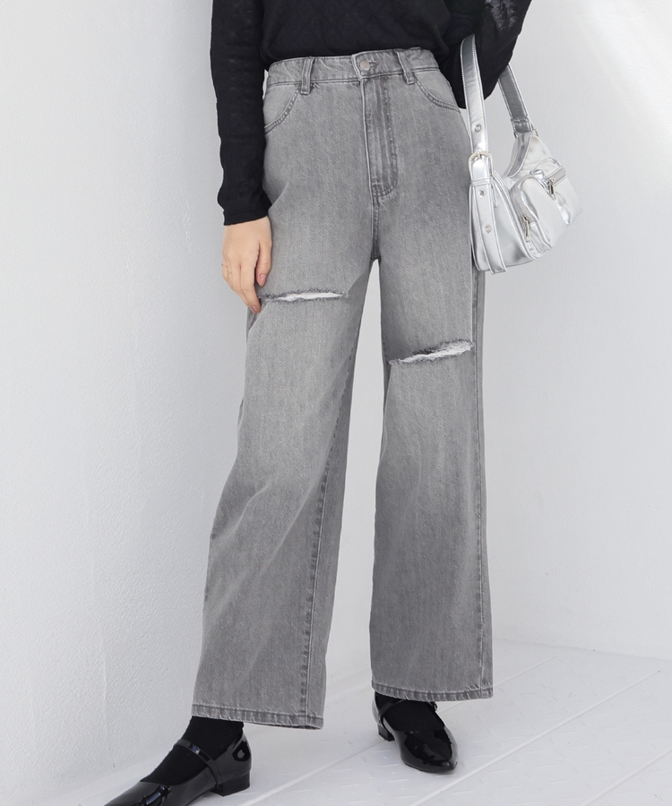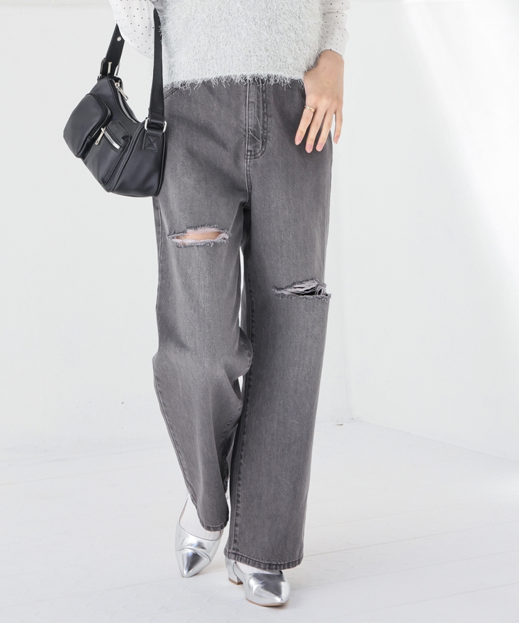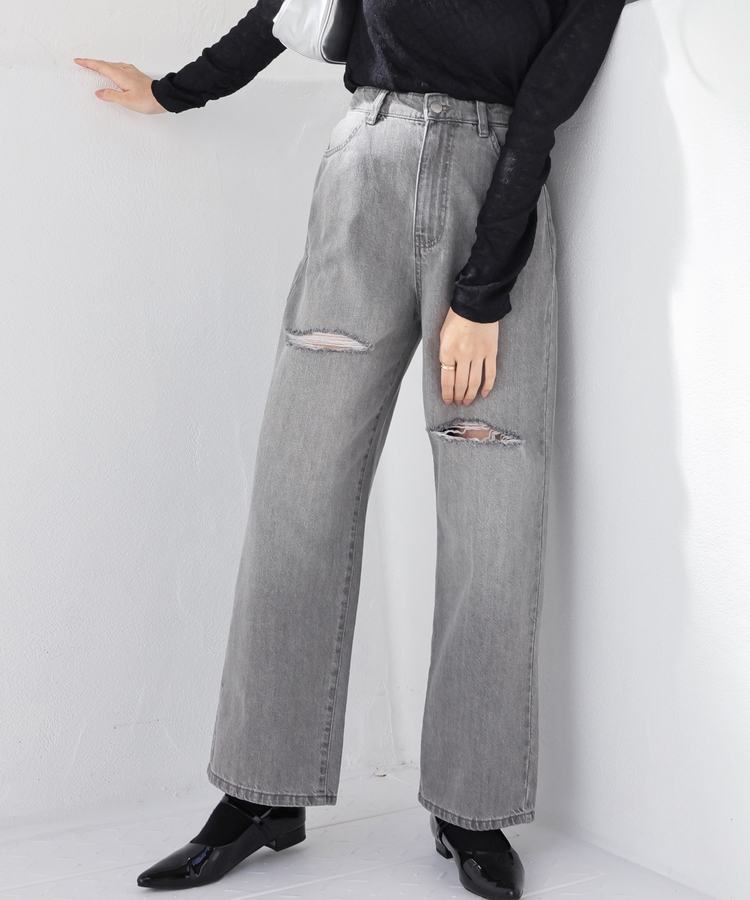 ストンと落ちるすっきりストレートなシルエットとハイウエストで、脚長効果抜群。