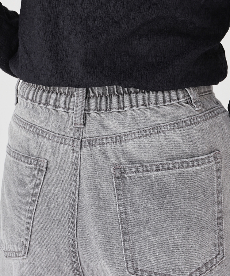 後ウエストはゴム仕様でストレスフリーなはき心地。