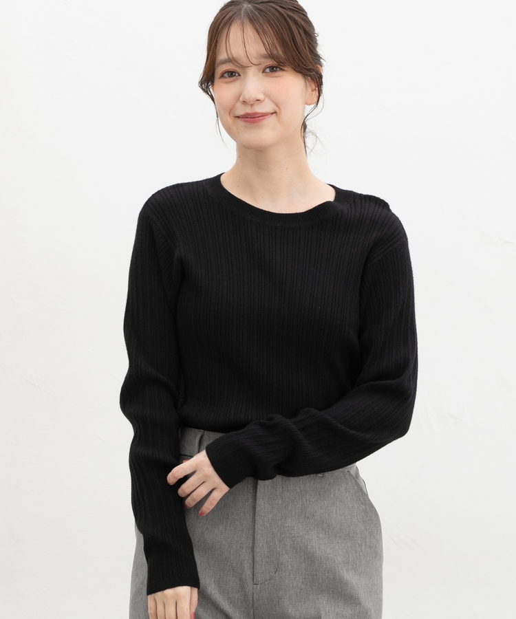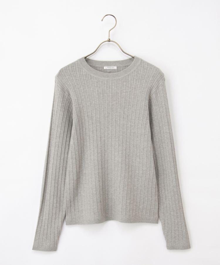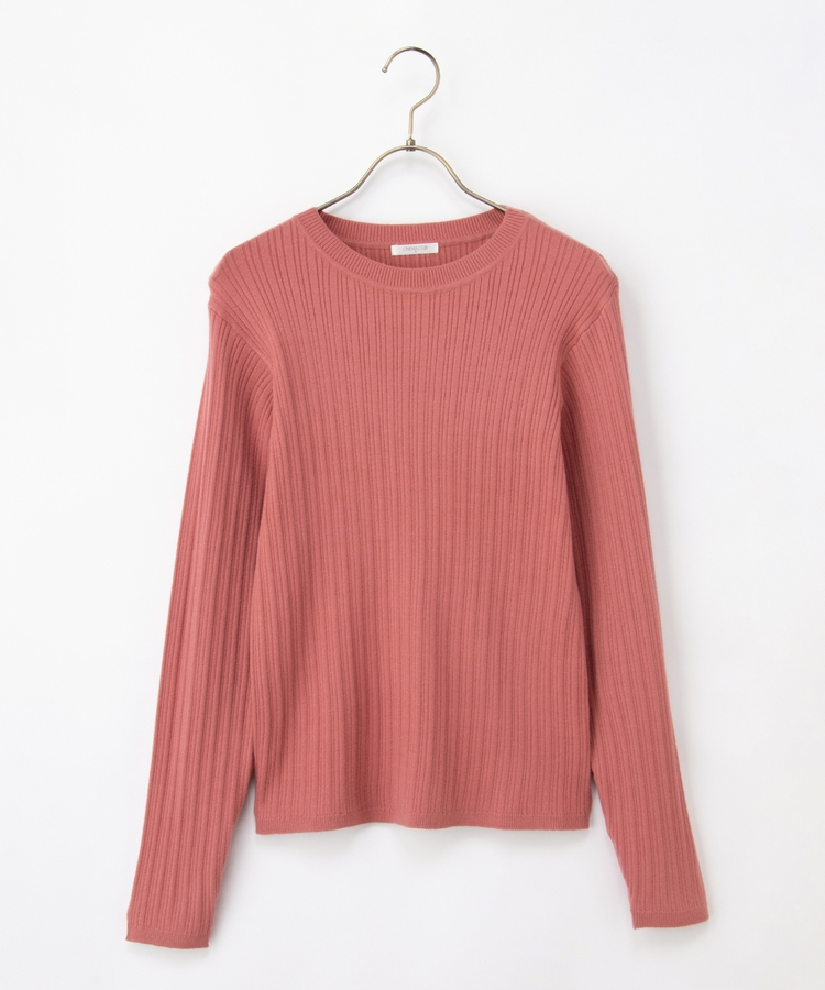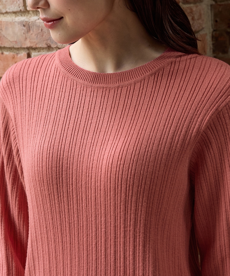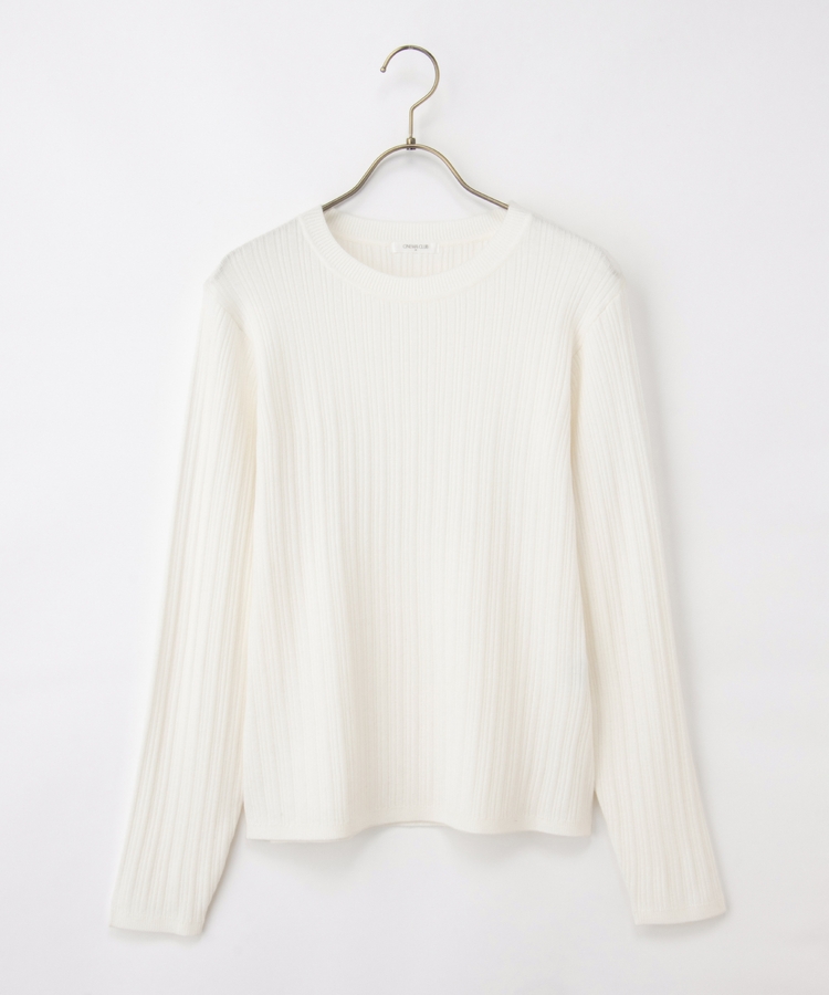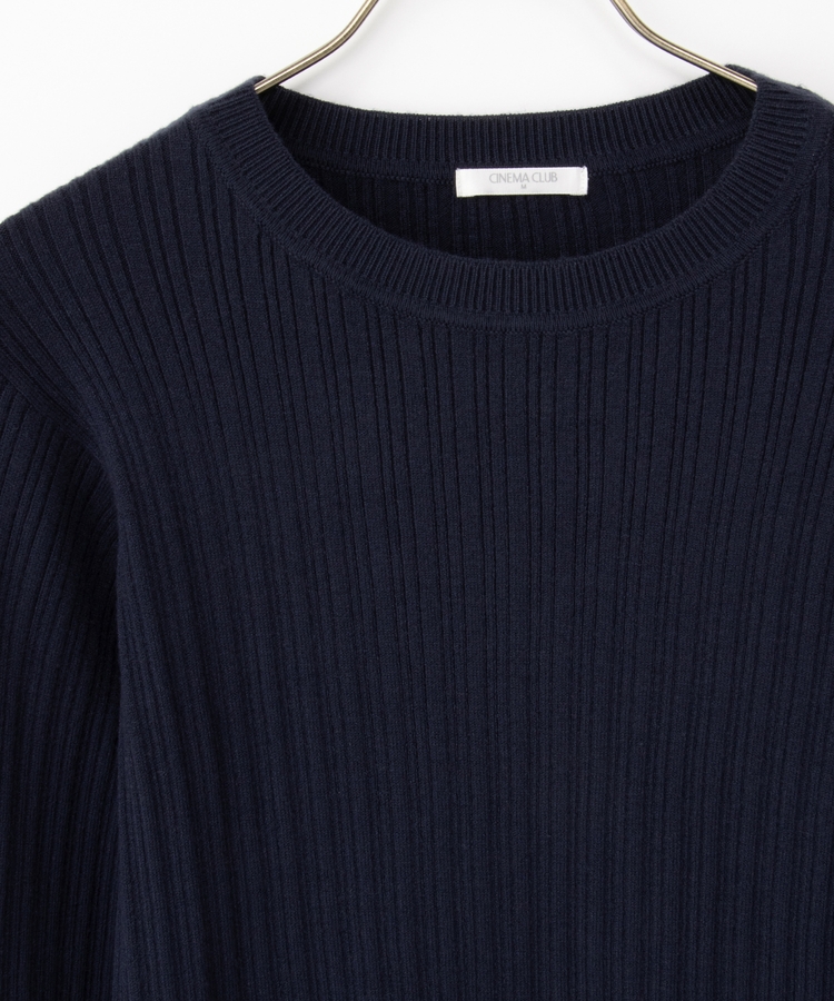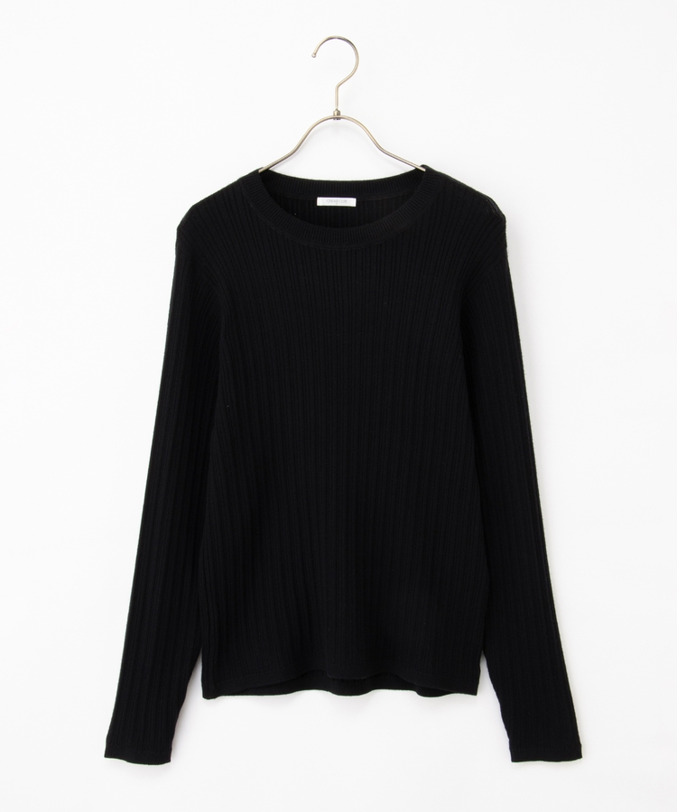 ランダムなリブがお洒落な、クルーネックのシンプルデザイン。