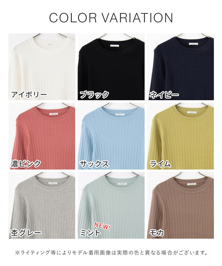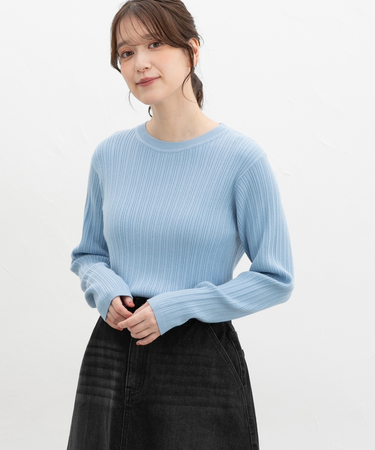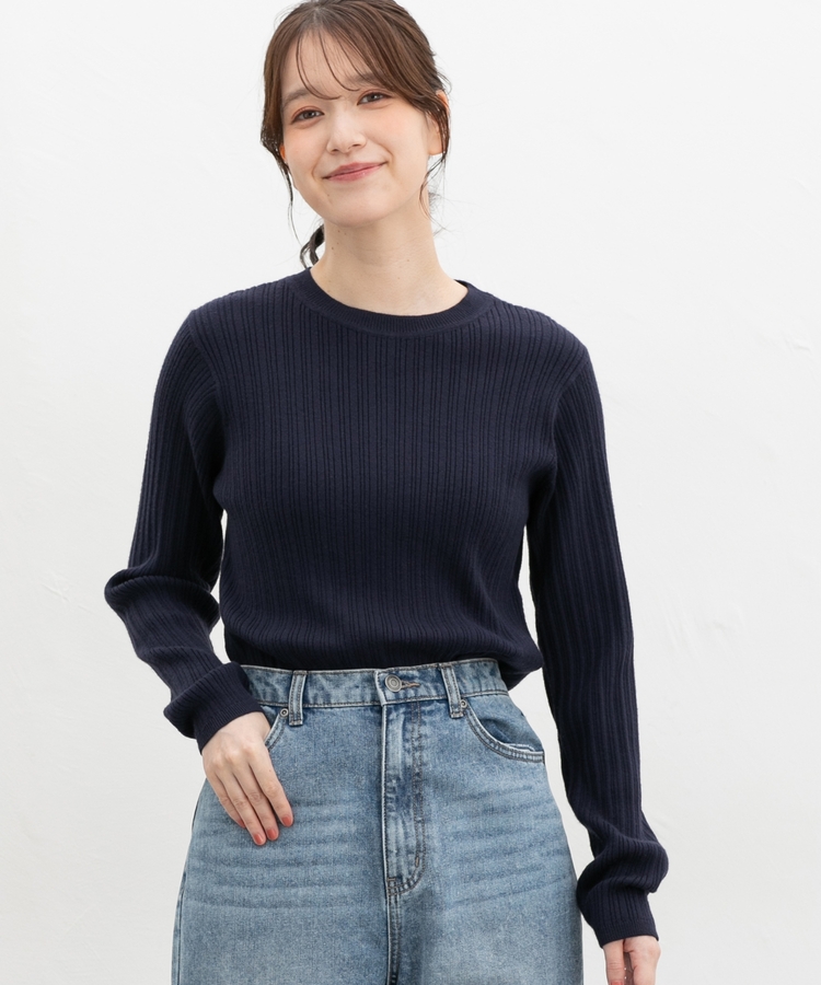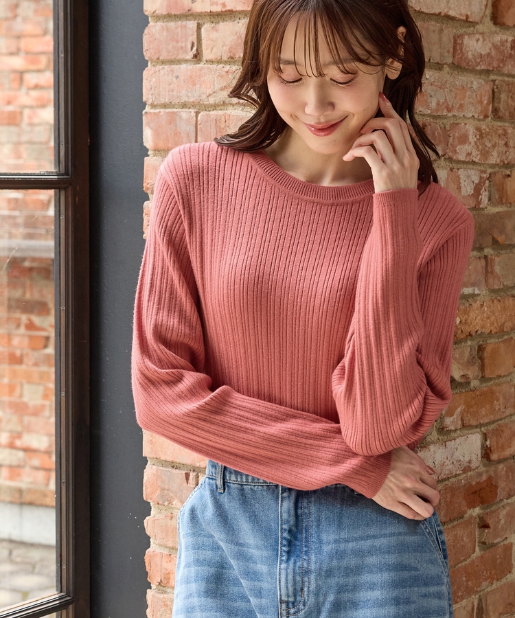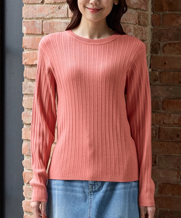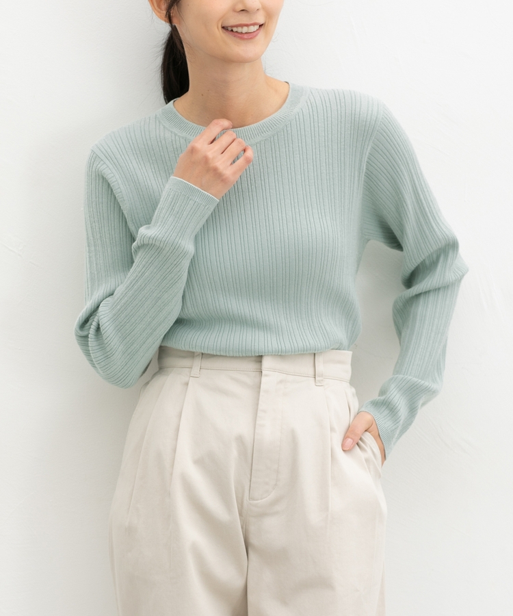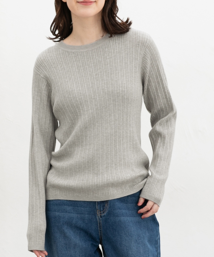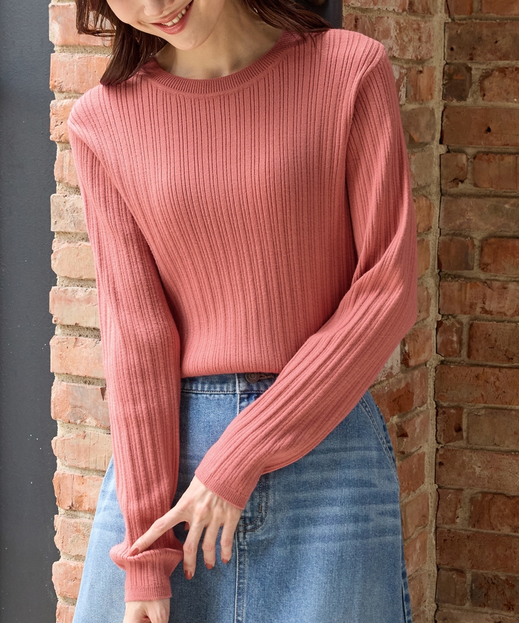 ランダムなリブがお洒落な、クルーネックのシンプルデザイン。