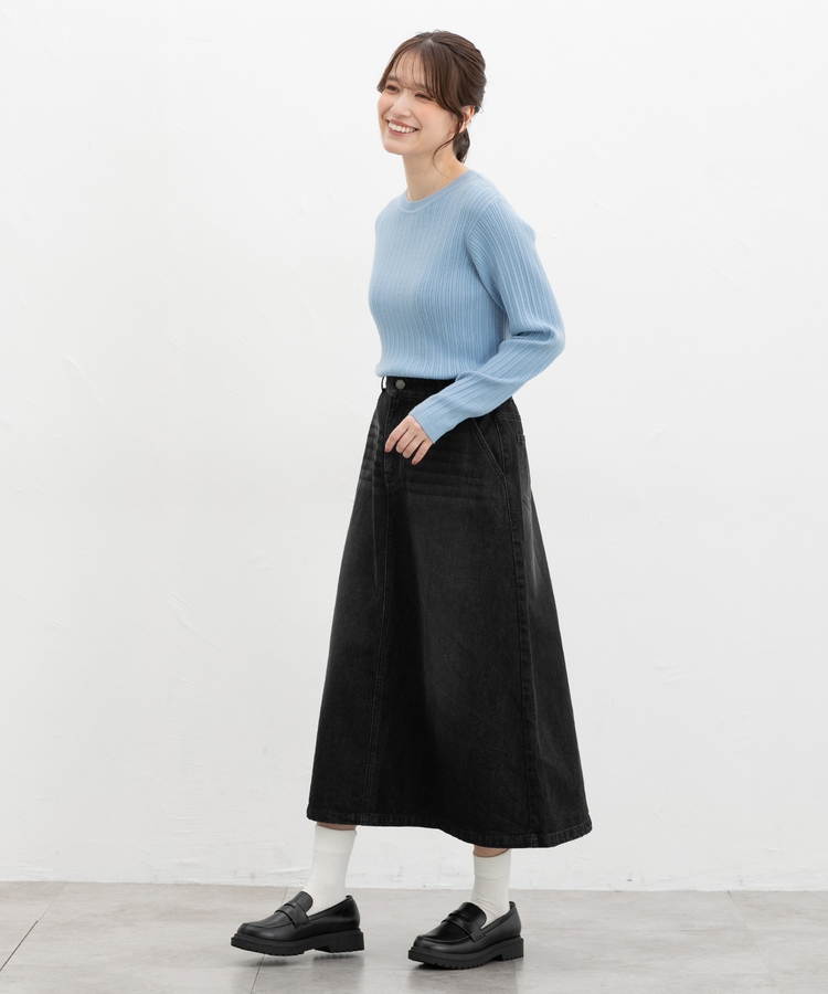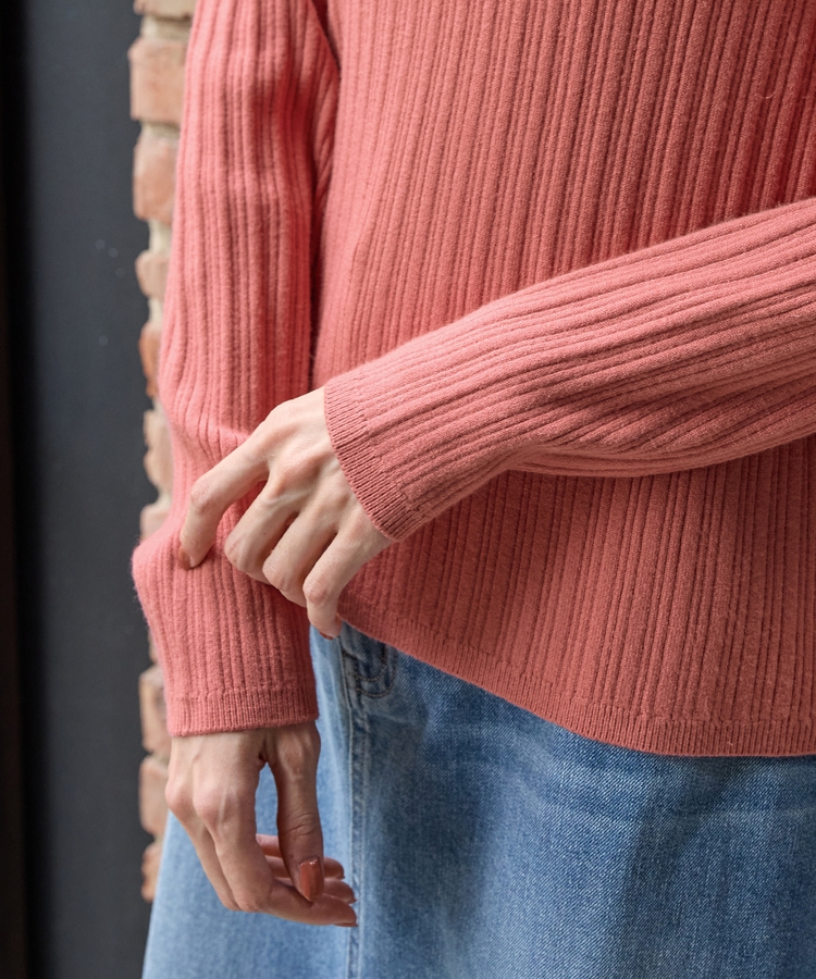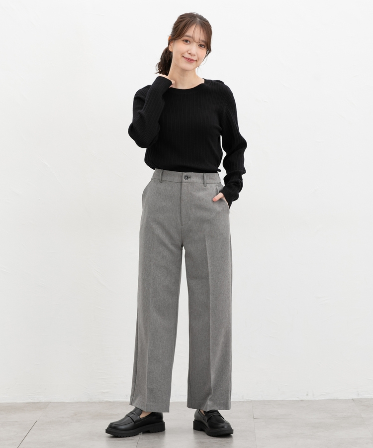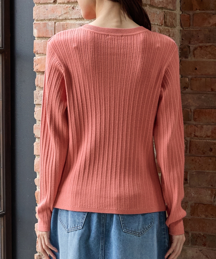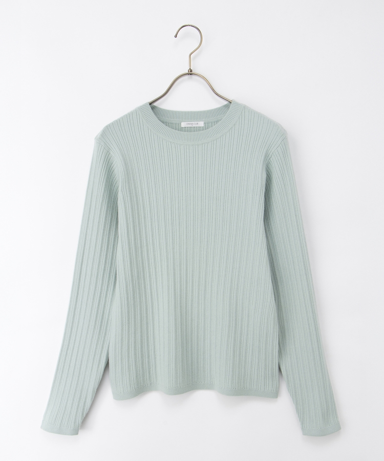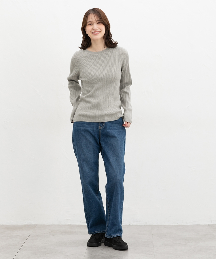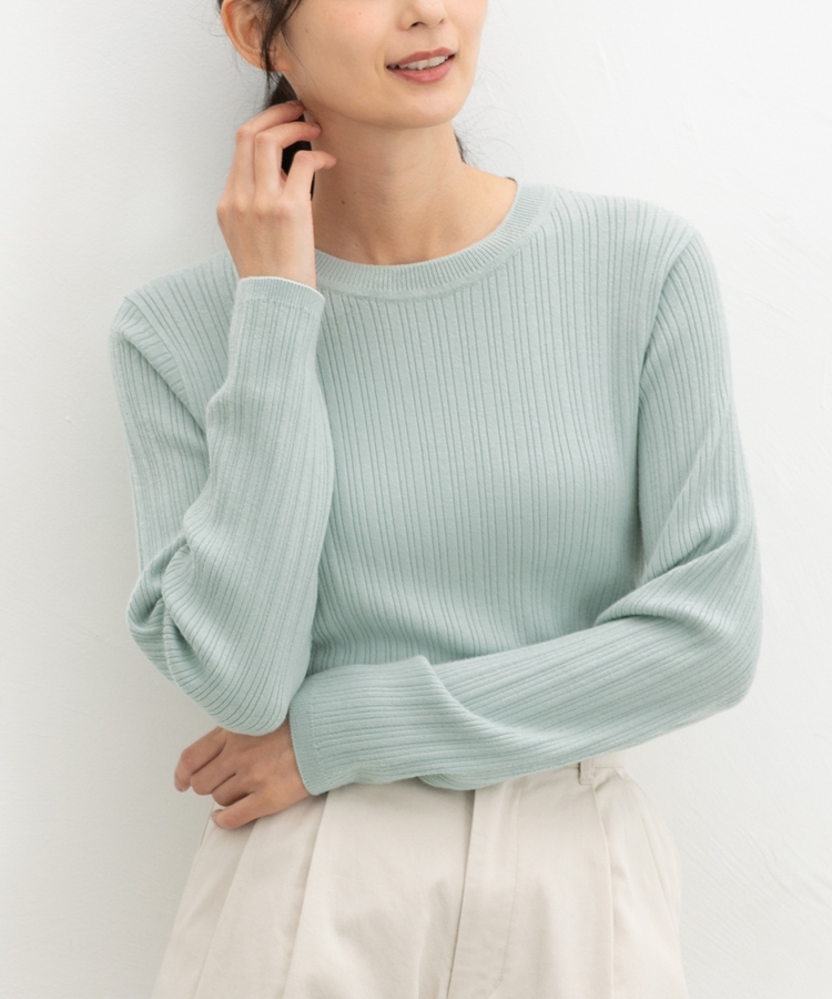 ランダムなリブがお洒落な、クルーネックのシンプルデザイン。