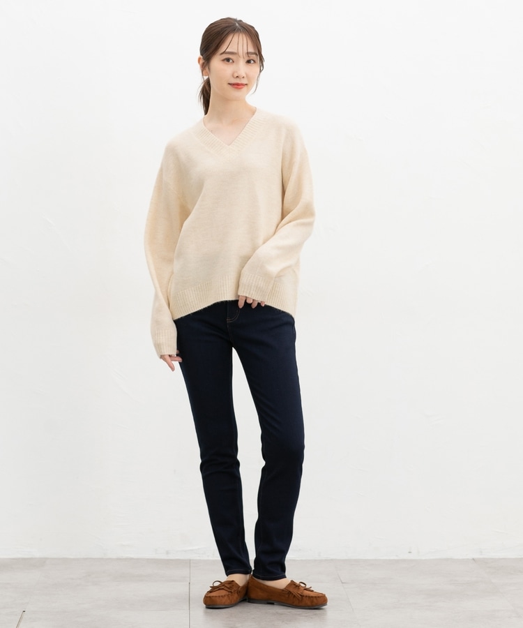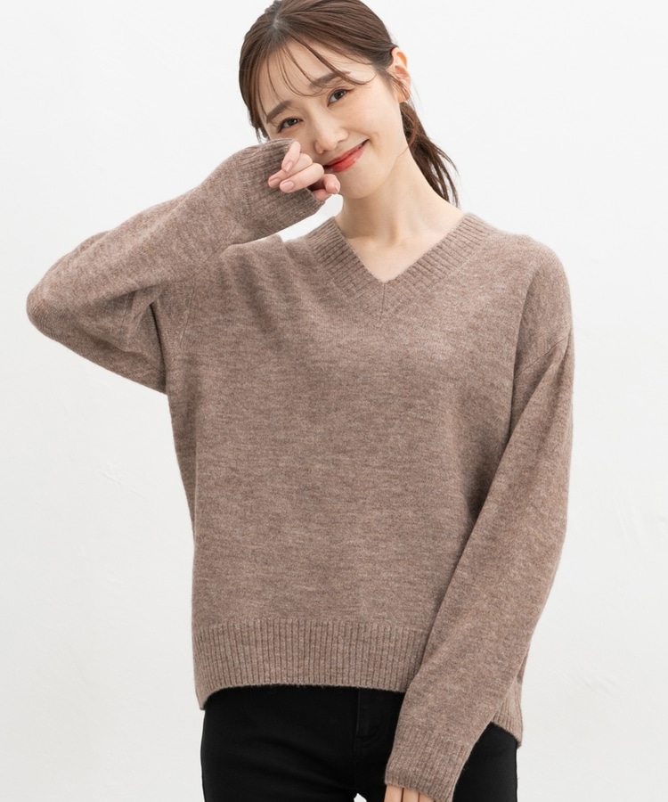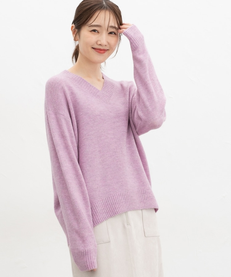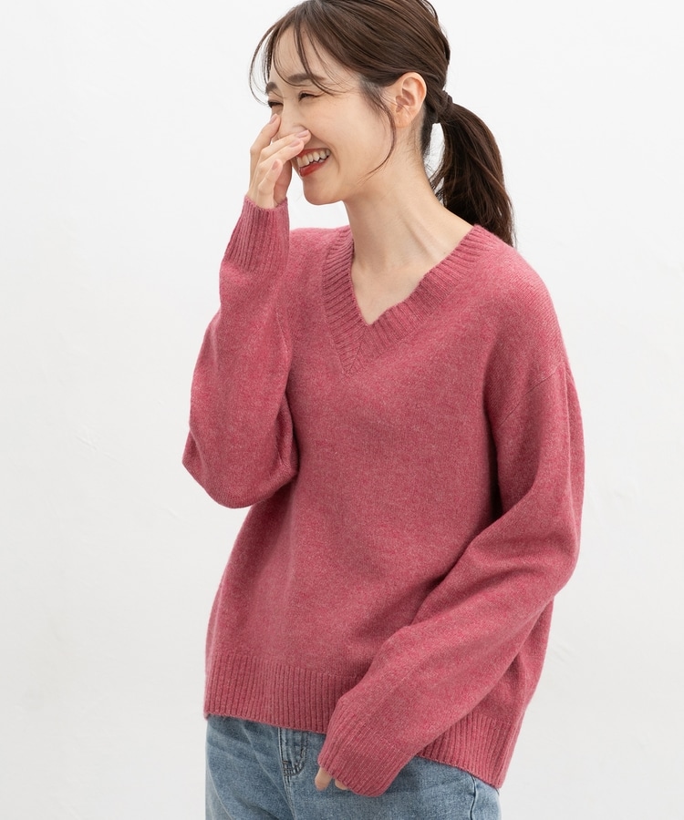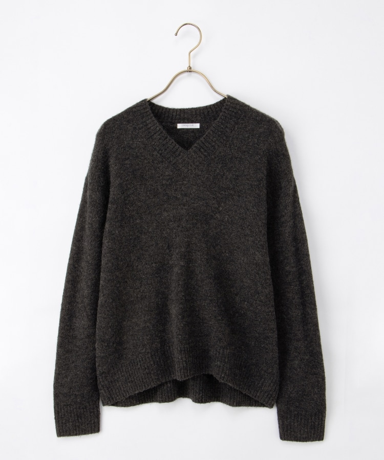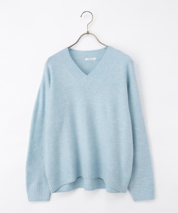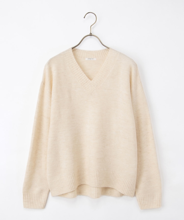 首元がすっきりきれいに見えるVネックのシンプルデザイン。