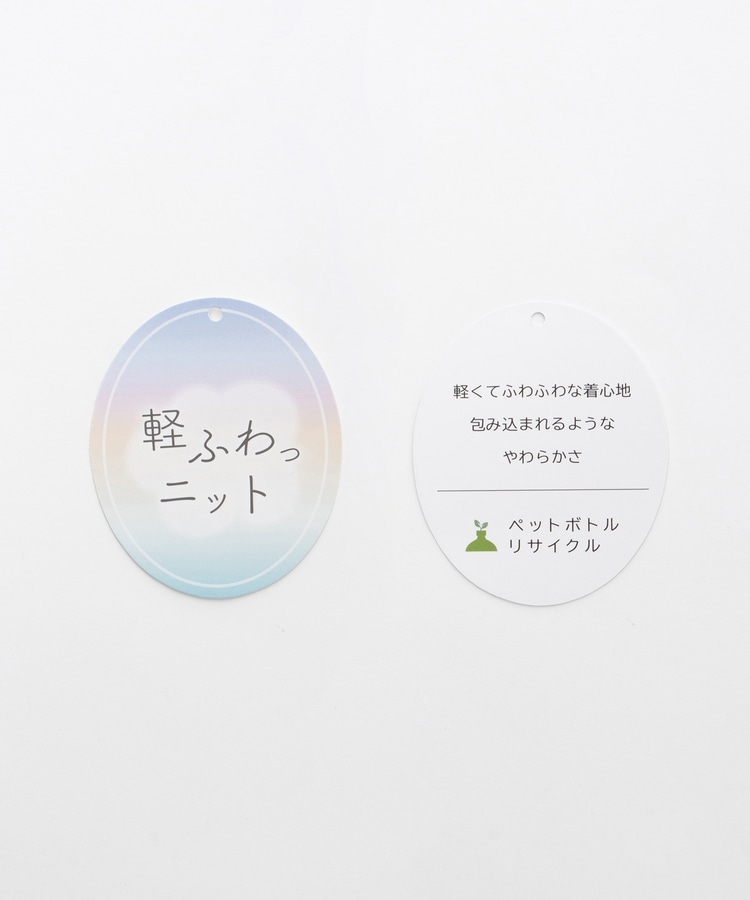 環境に優しい再生ポリエステルを使用した、ふわふわで軽く包み込まれるようなやわらかさのウール混『軽ふわっニット』素材。