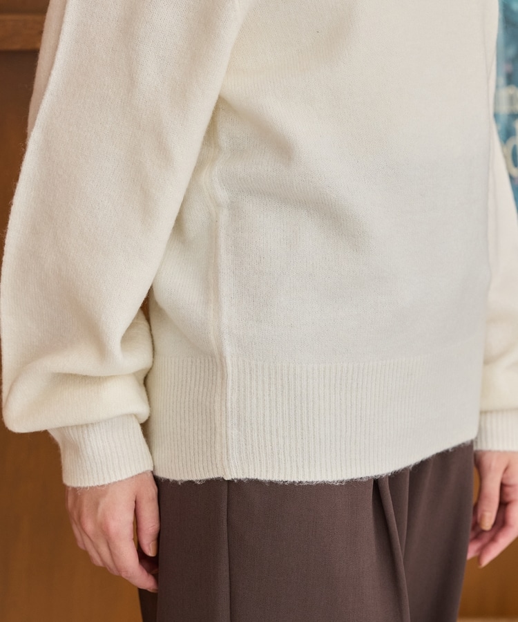 環境に優しい再生ポリエステルを使用した、ふわふわで軽く包み込まれるようなやわらかさのウール混『軽ふわっニット』素材。