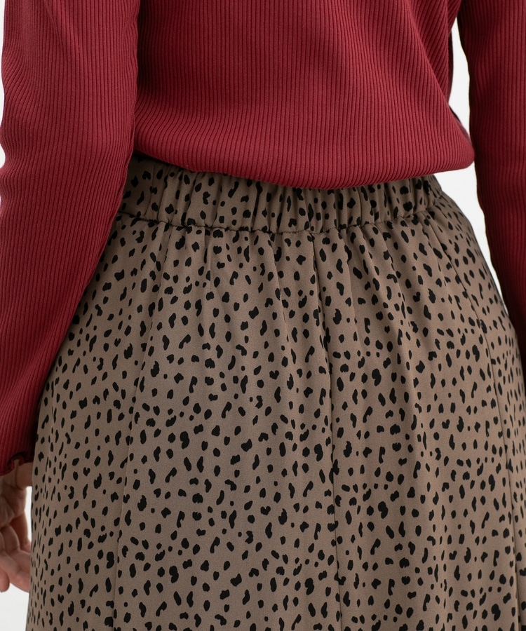 後ろウエストゴムとサイドファスナーで、はき心地も着脱も楽らく。