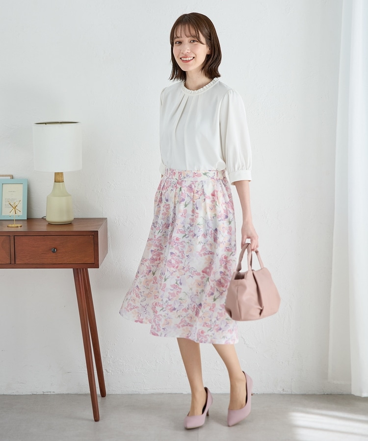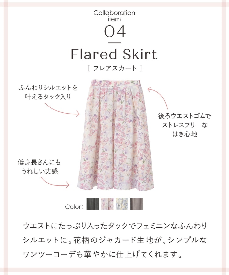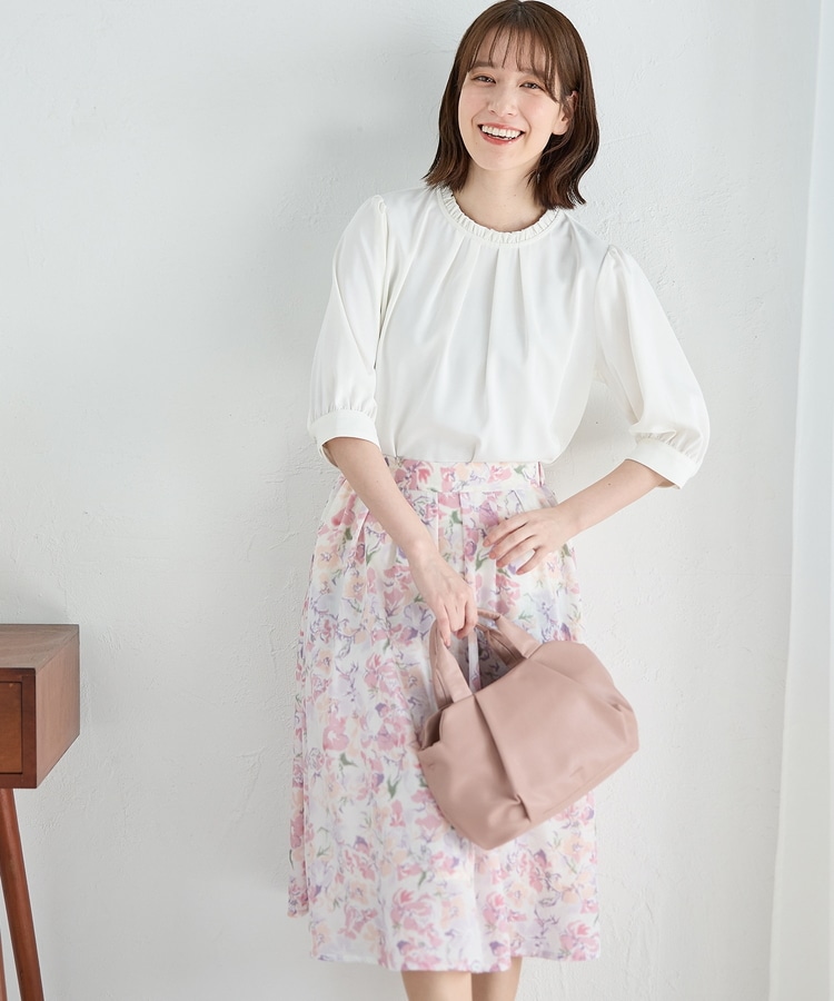 タックを入れた、ふんわりと広がるシルエットがフェミニンなデザイン。