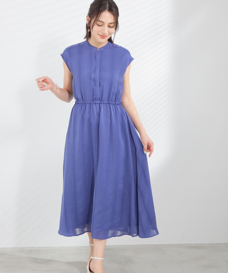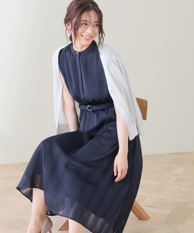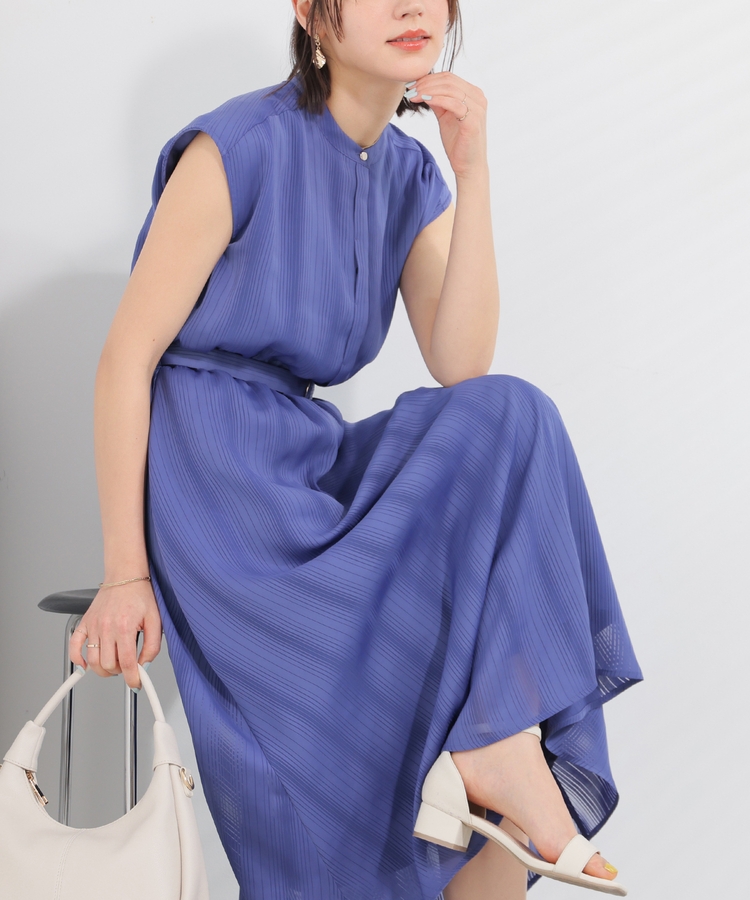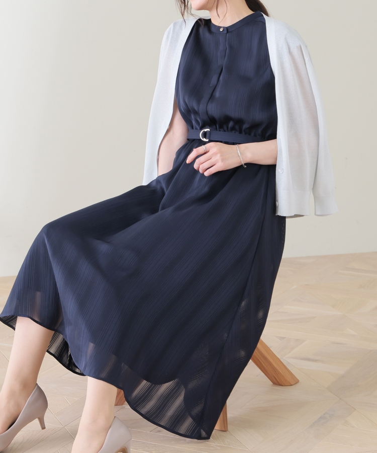 ストライプの織り柄が入った、清涼感のあるシアー素材。