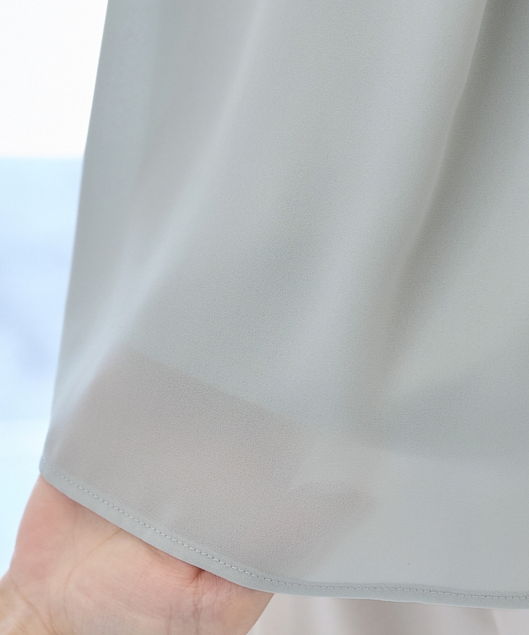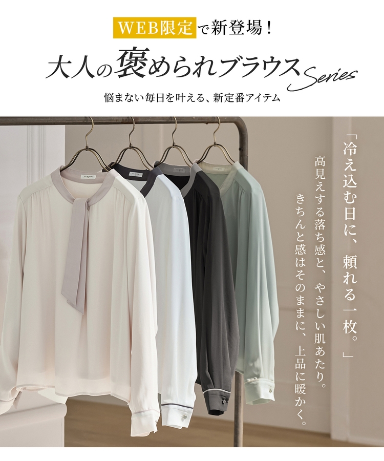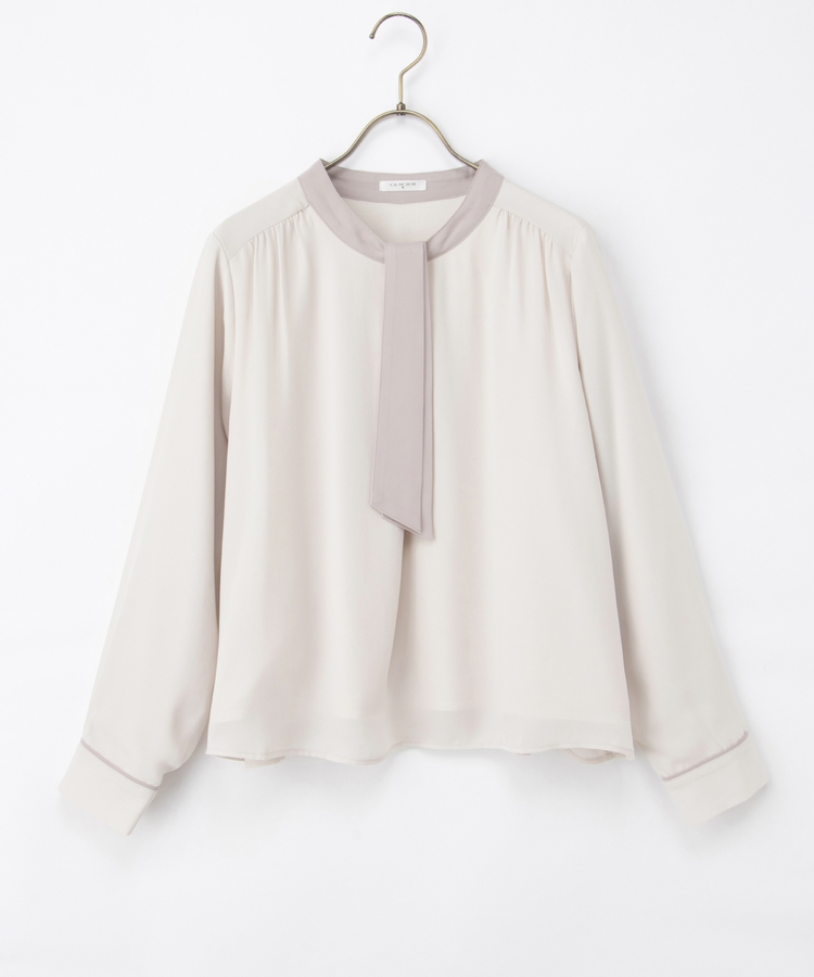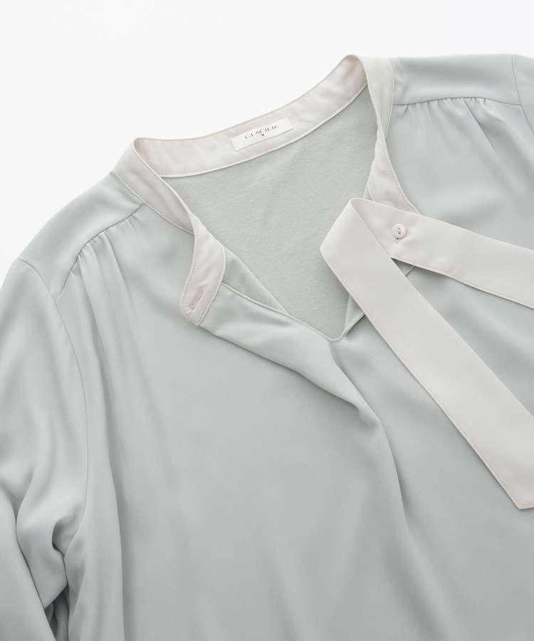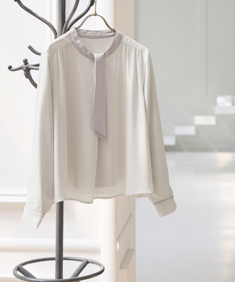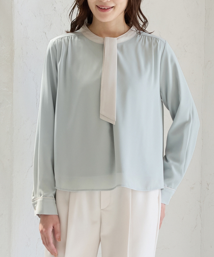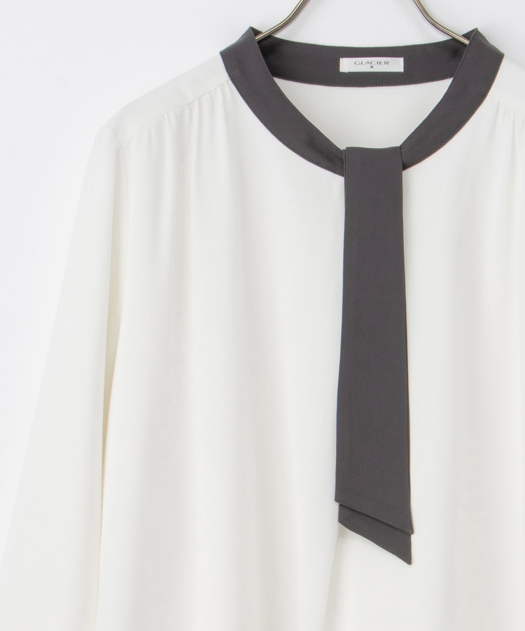 バンドカラーの衿と袖口も配色使いで、シンプルになりすぎないのも嬉しいポイント。