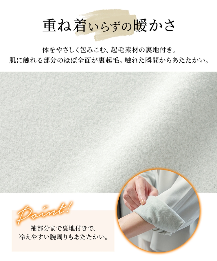 あったかインナーの重ね着が不要で、もたつかずスッキリなのにあったか。