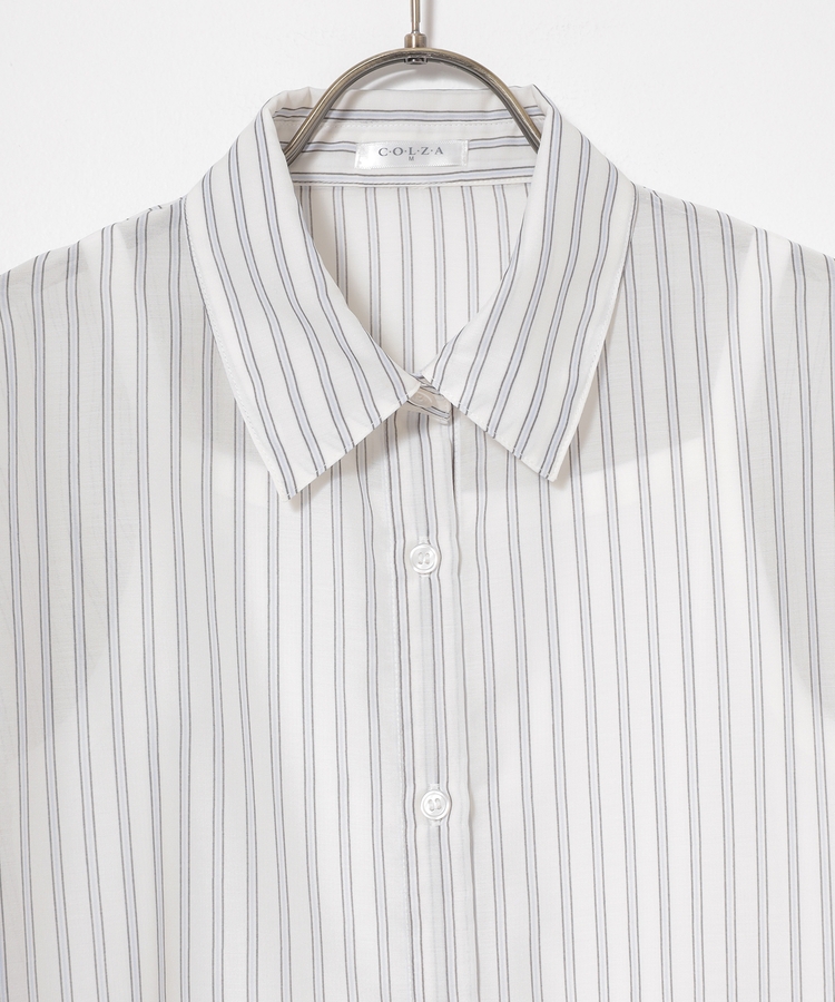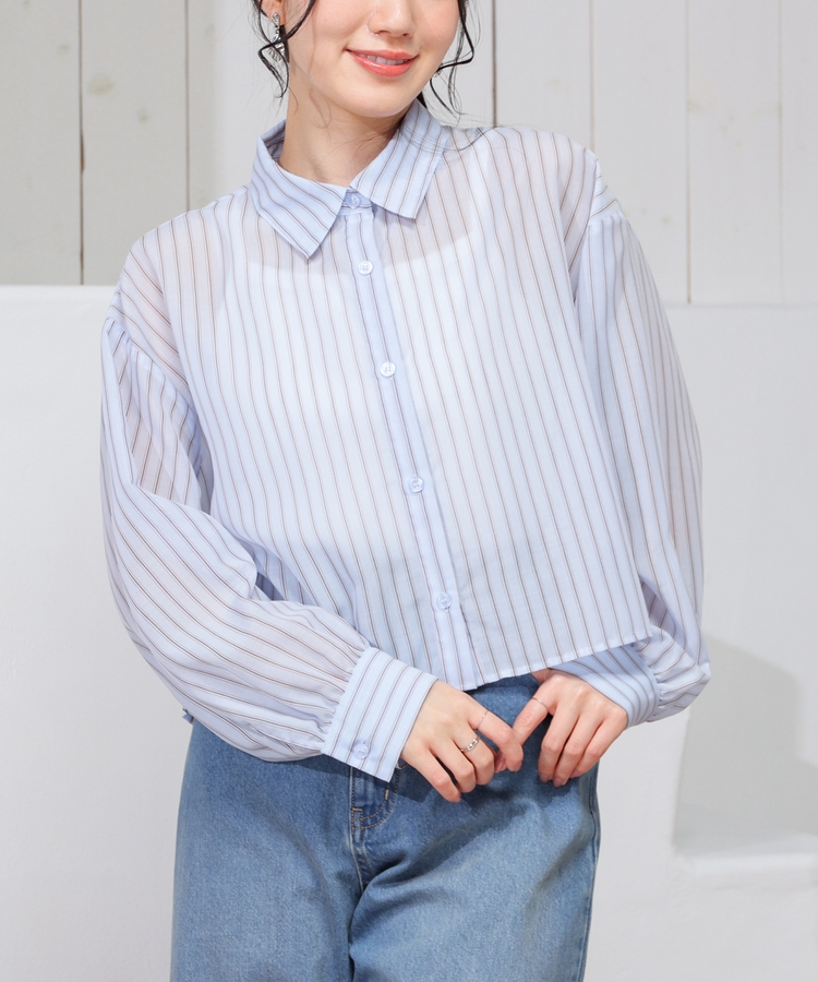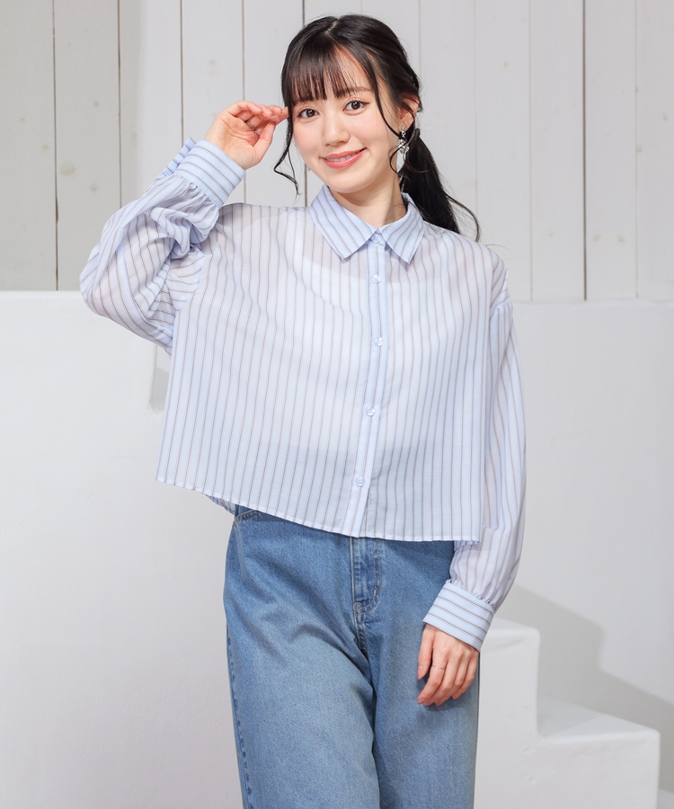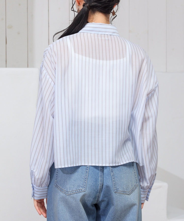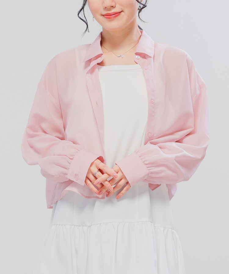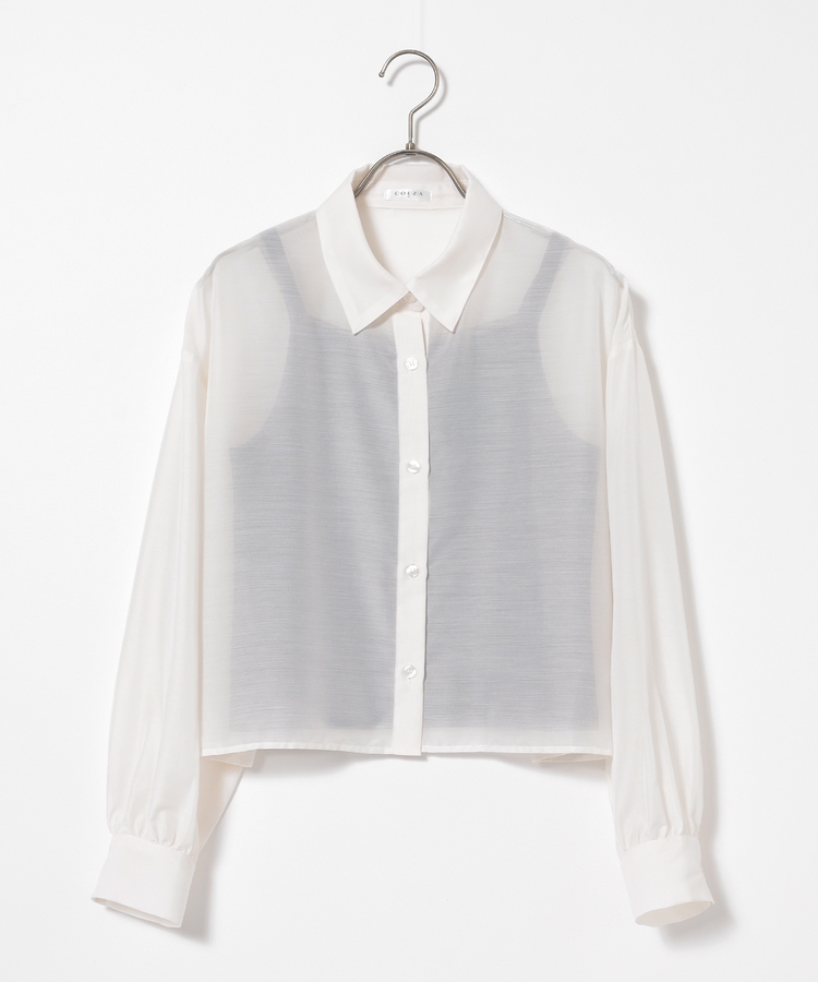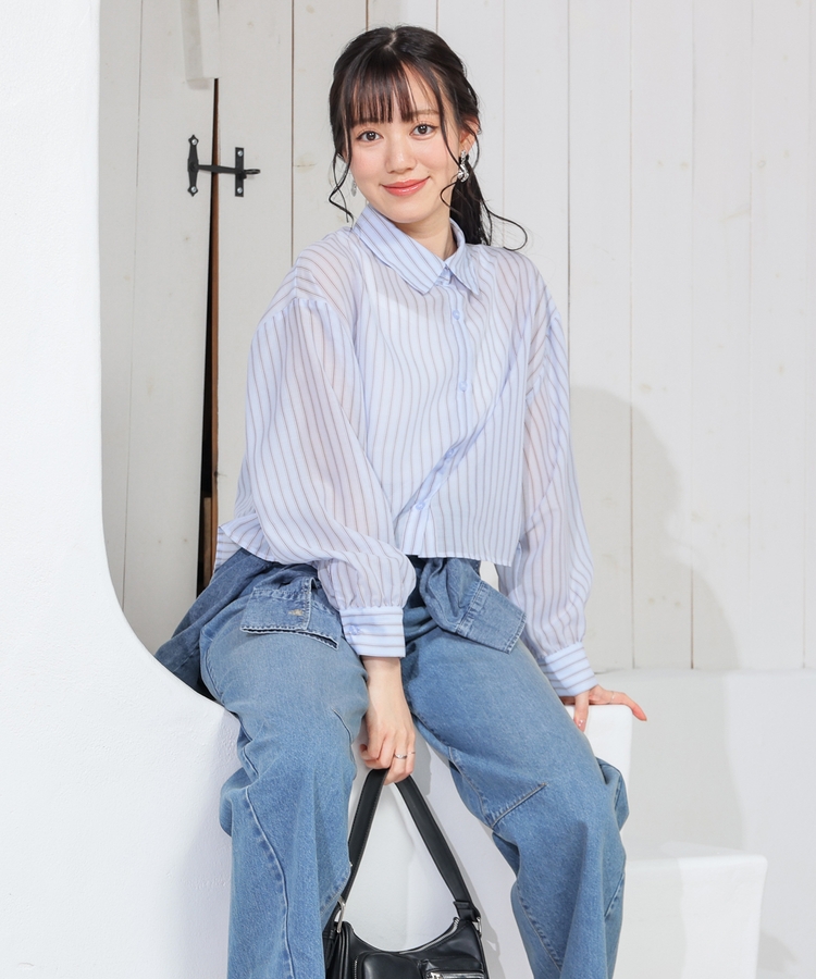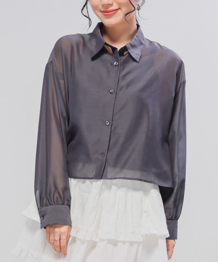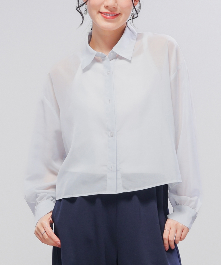 シアーシャツはゆったり幅×短め丈でスタイルアップ効果抜群。