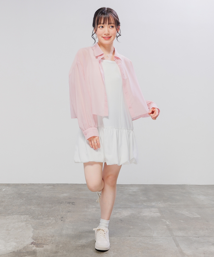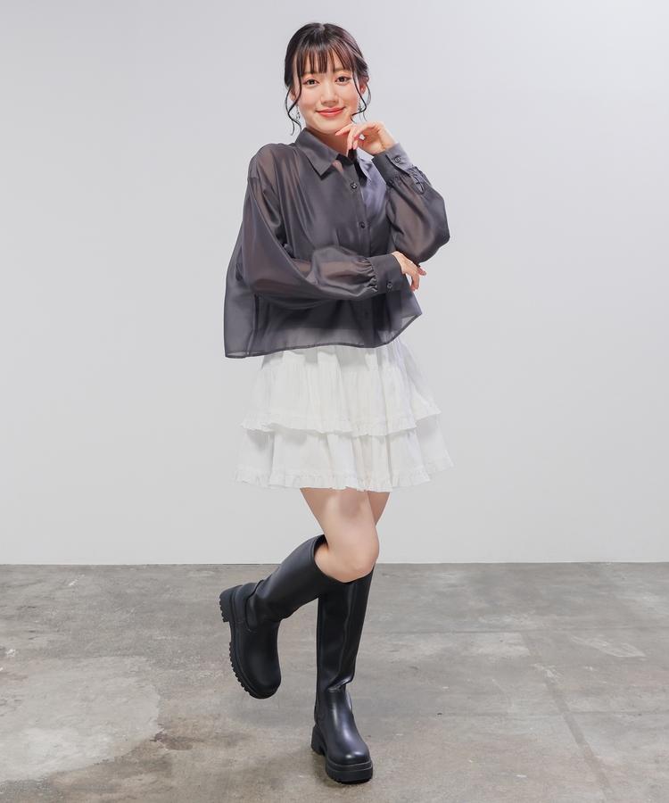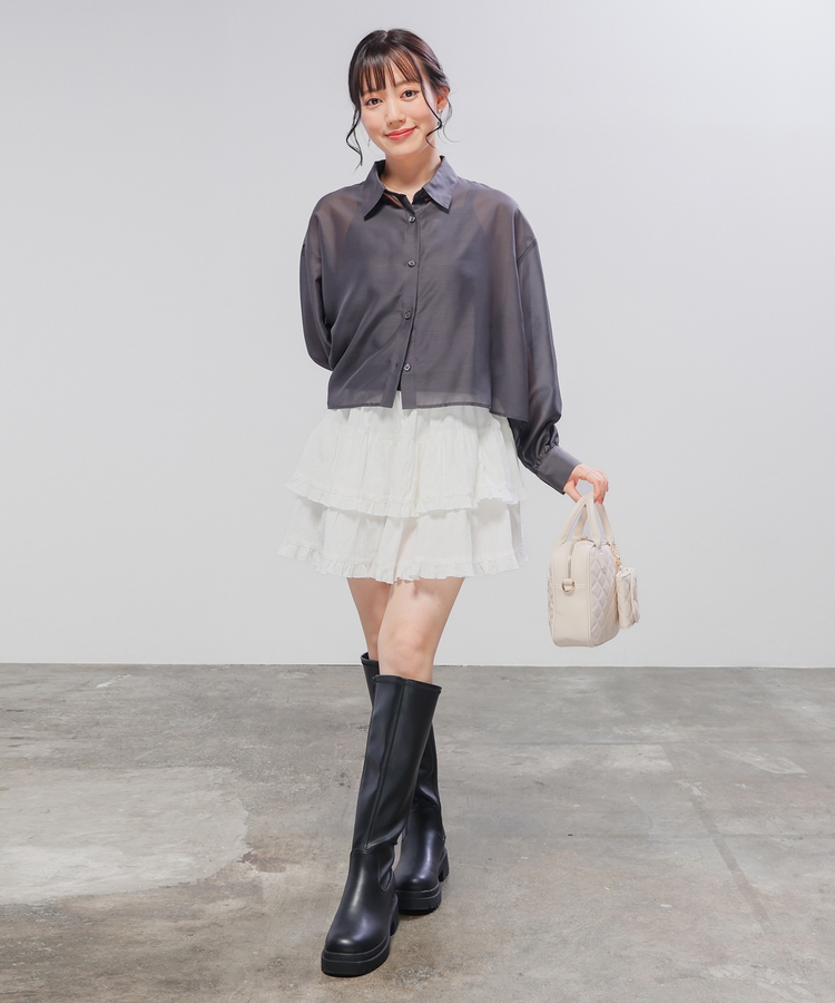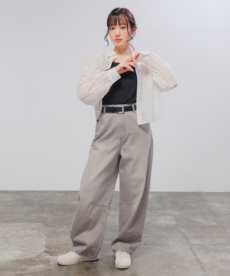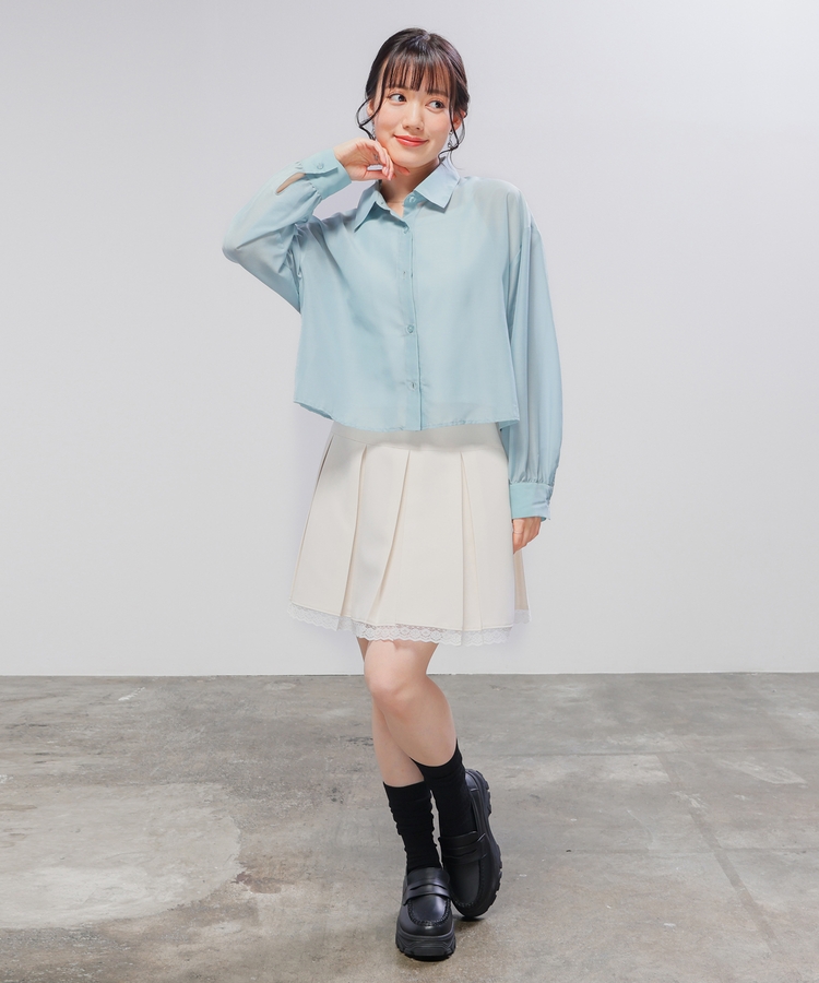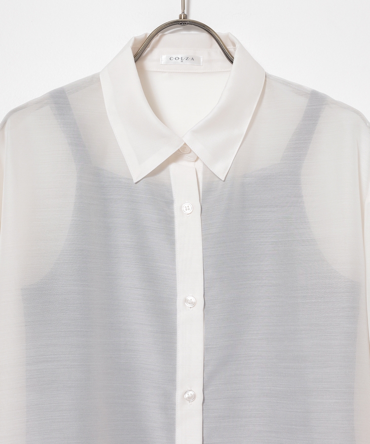 シャツは、程よい透け感のシアー素材。