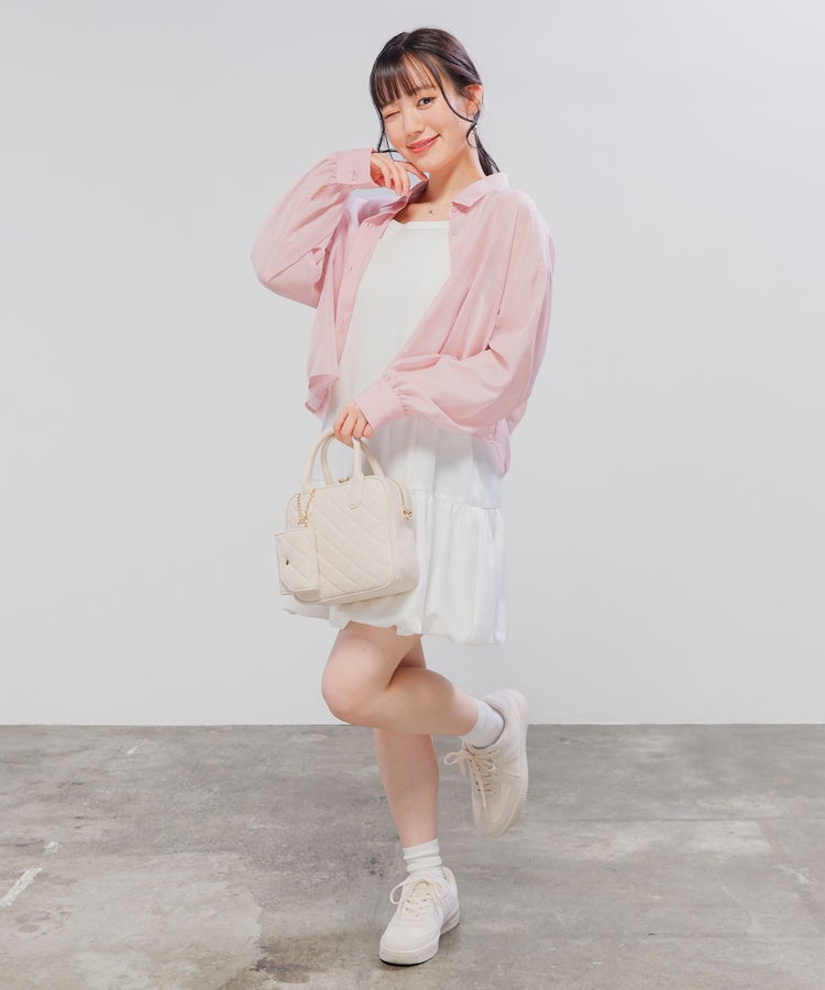簡単にレイヤードコーデが完成する、シアーシャツ×キャミソールのセット。