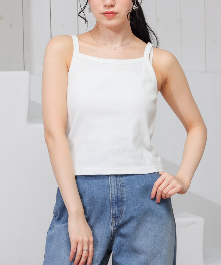 キャミソールもヘルシーに着こなせるショート丈。