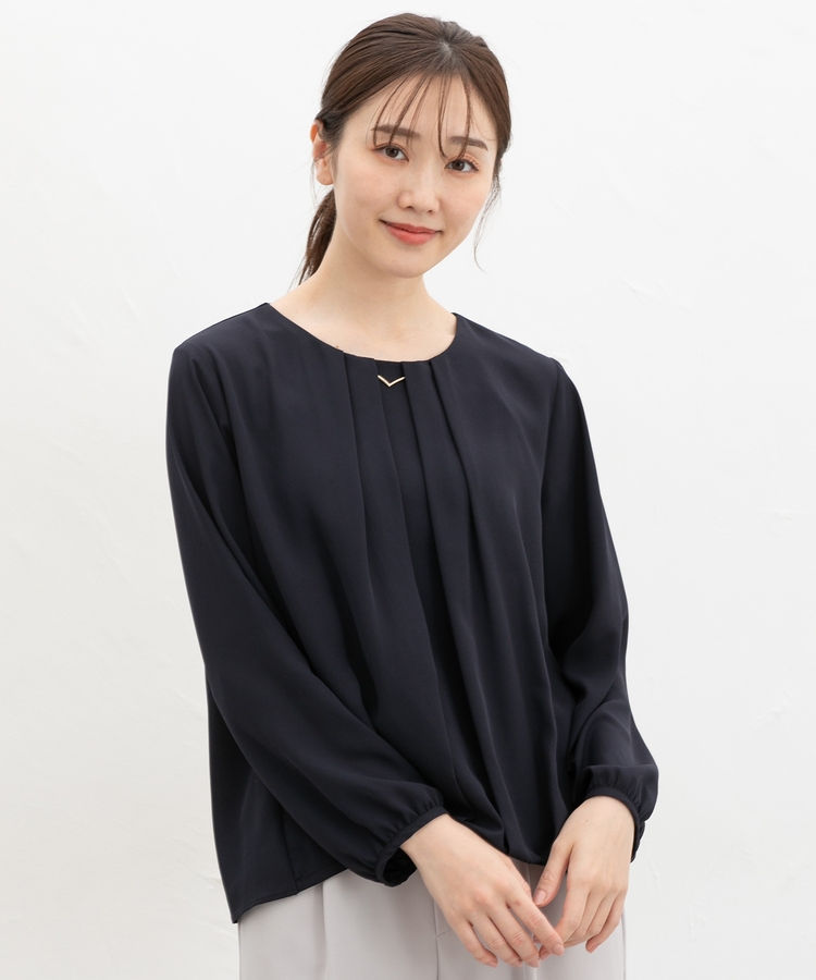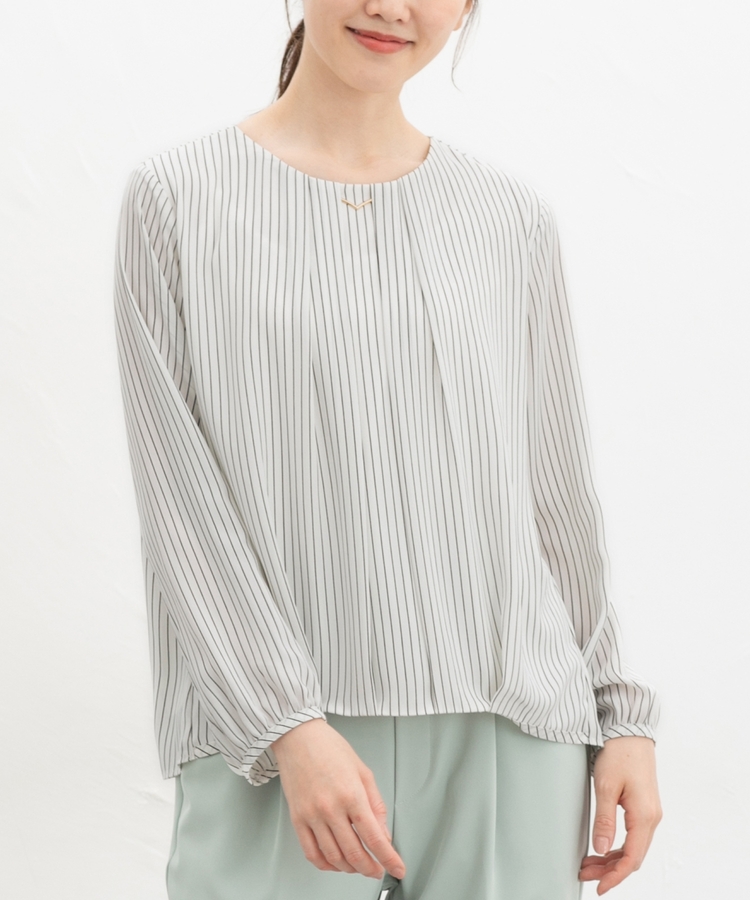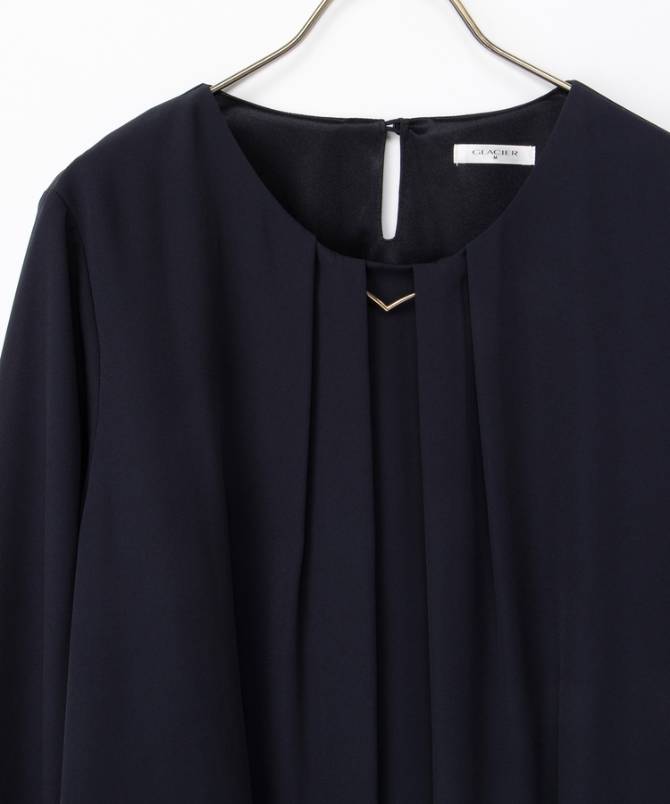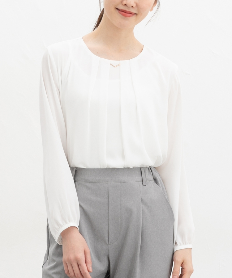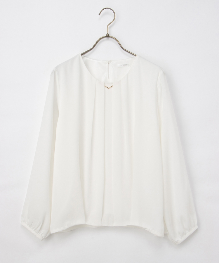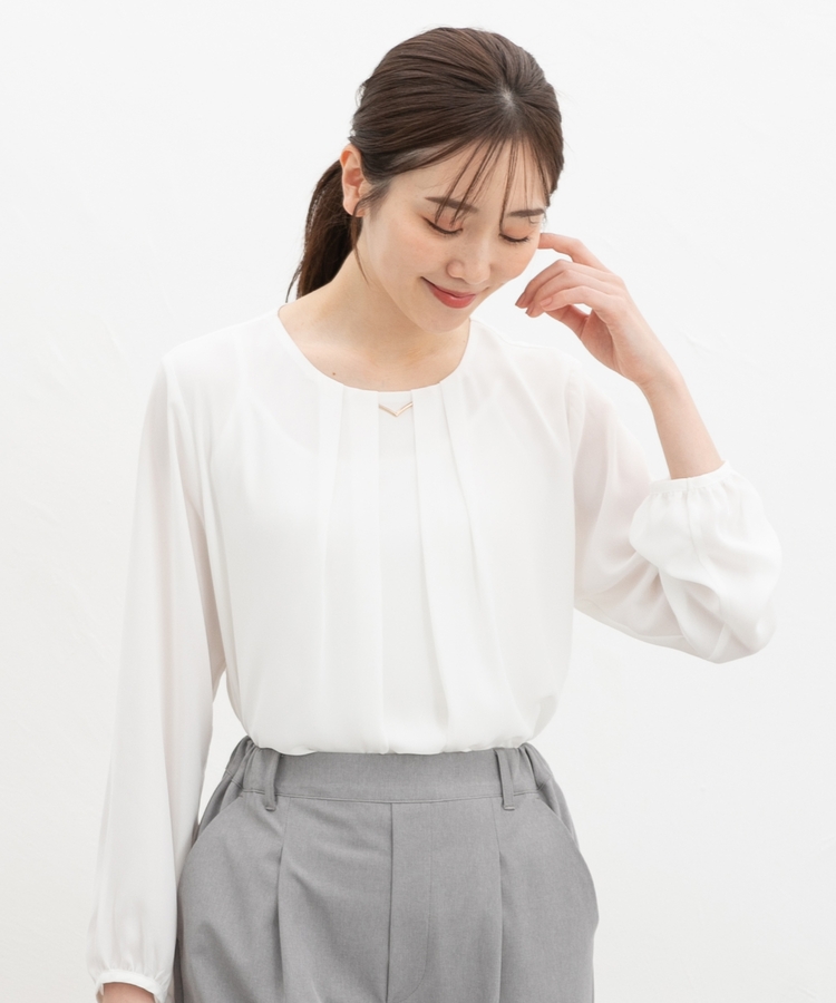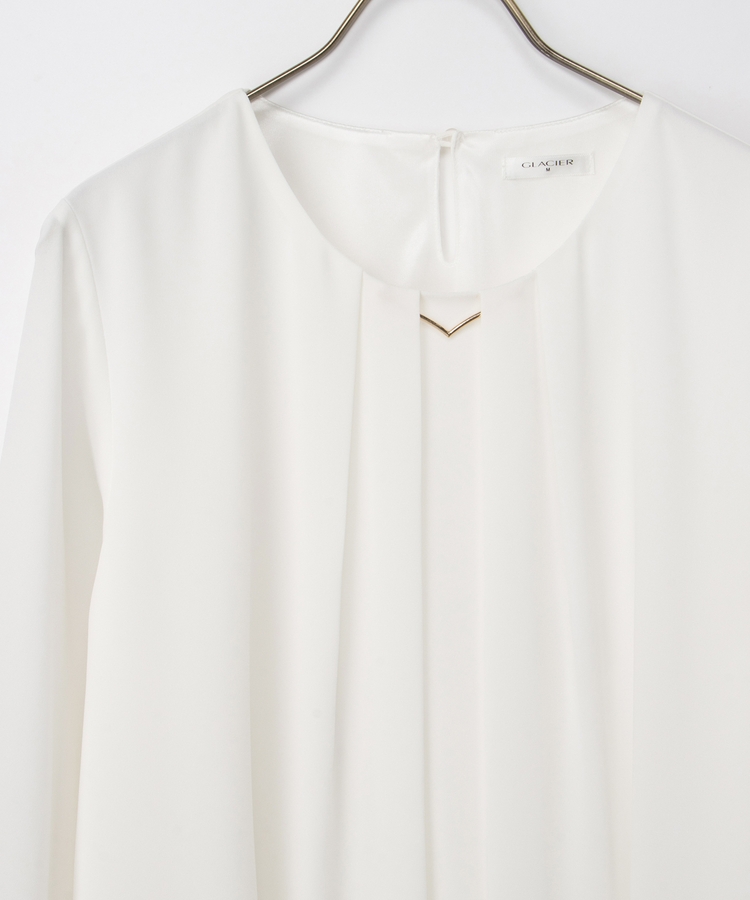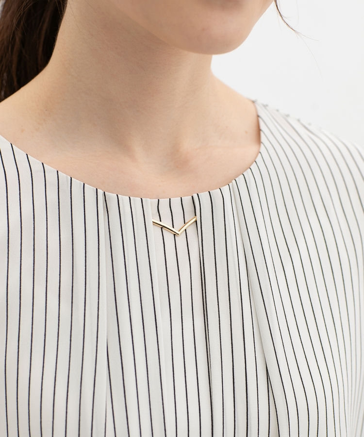 衿元にさりげない華やかさをプラスするメタルパーツのアクセサリーは、シーンやコーデに合わせて取り外し可能。