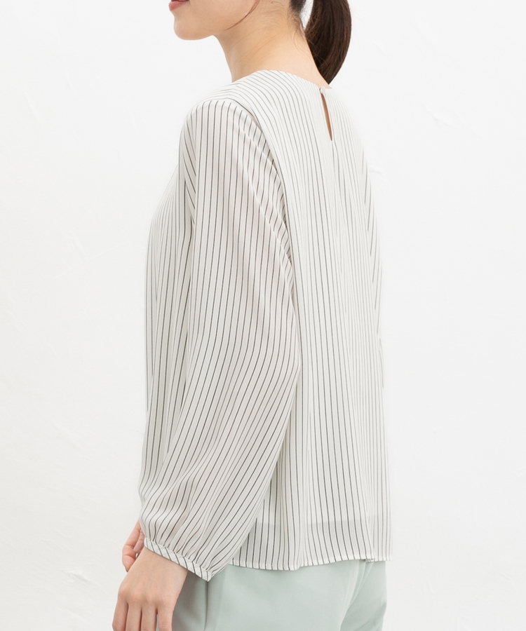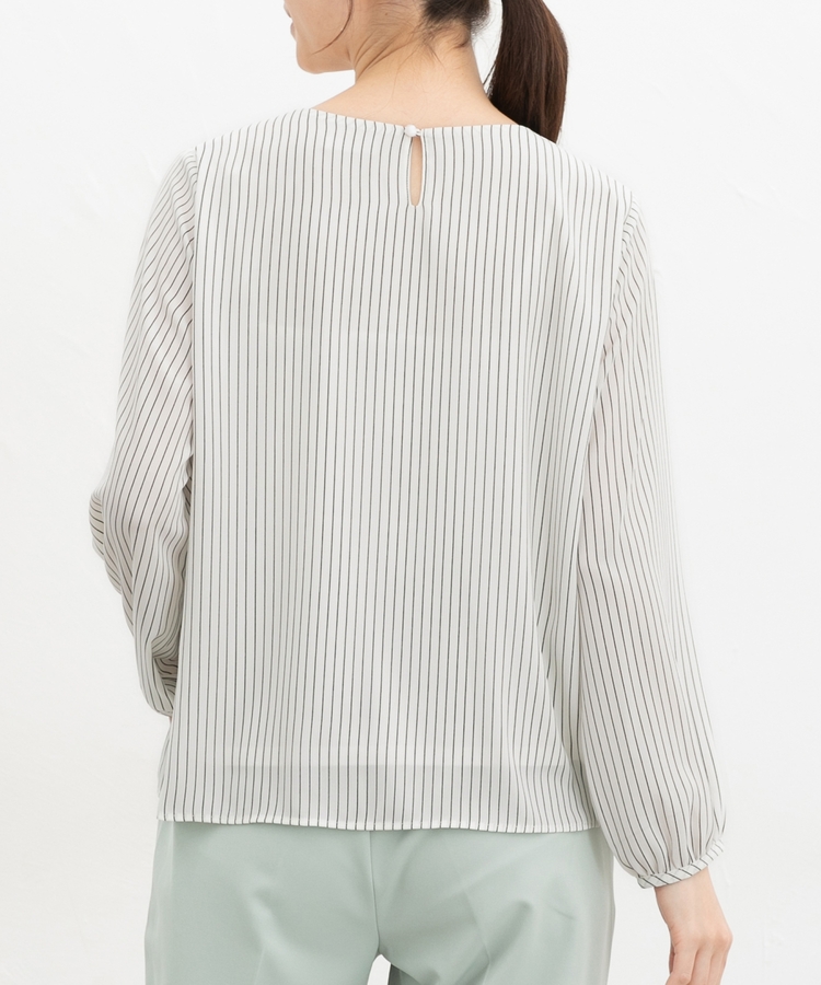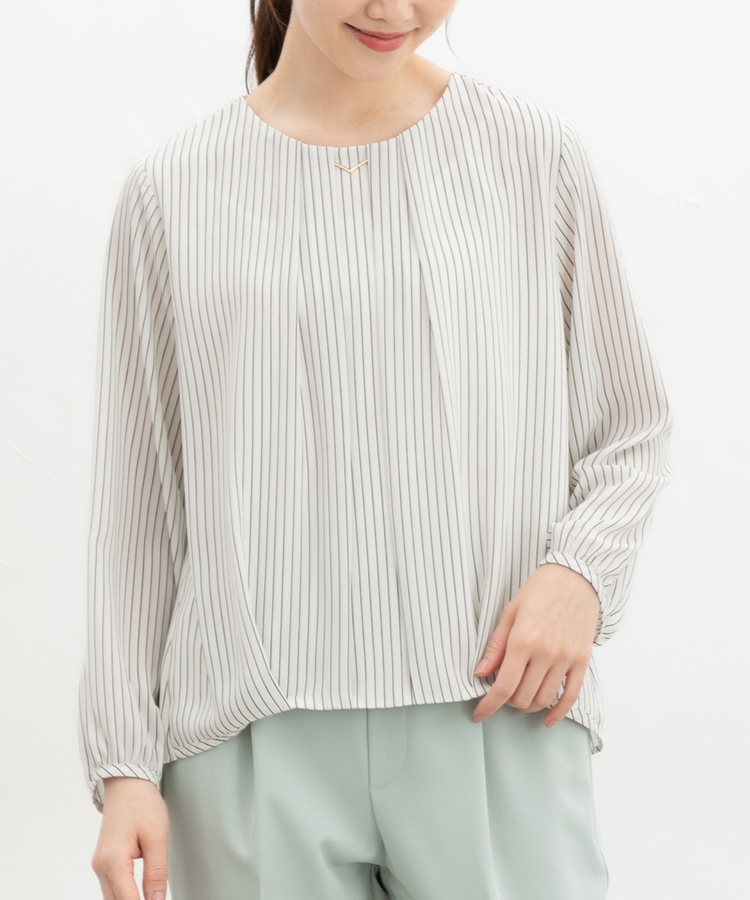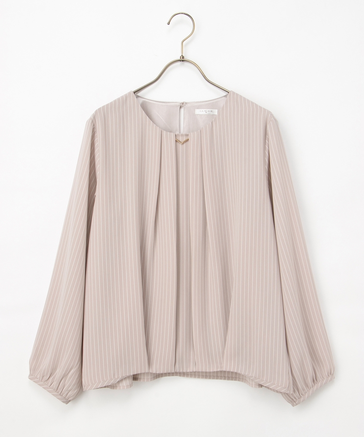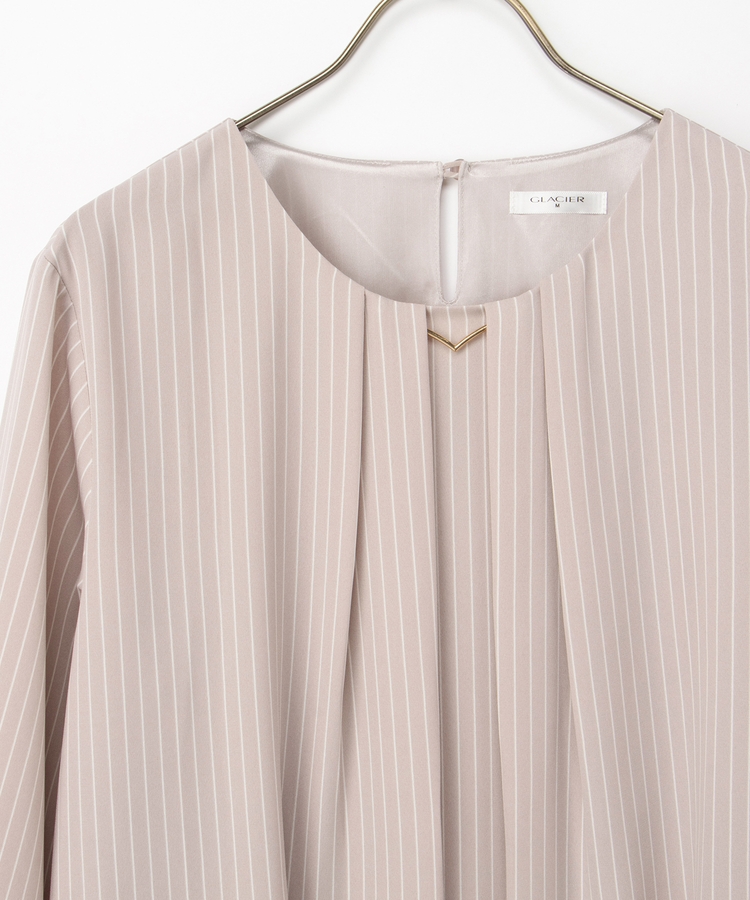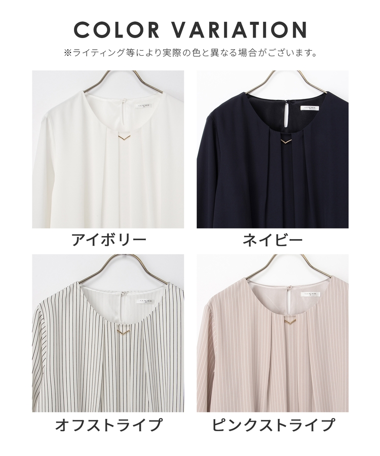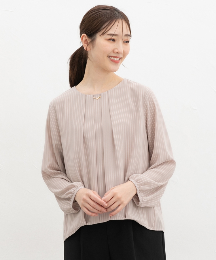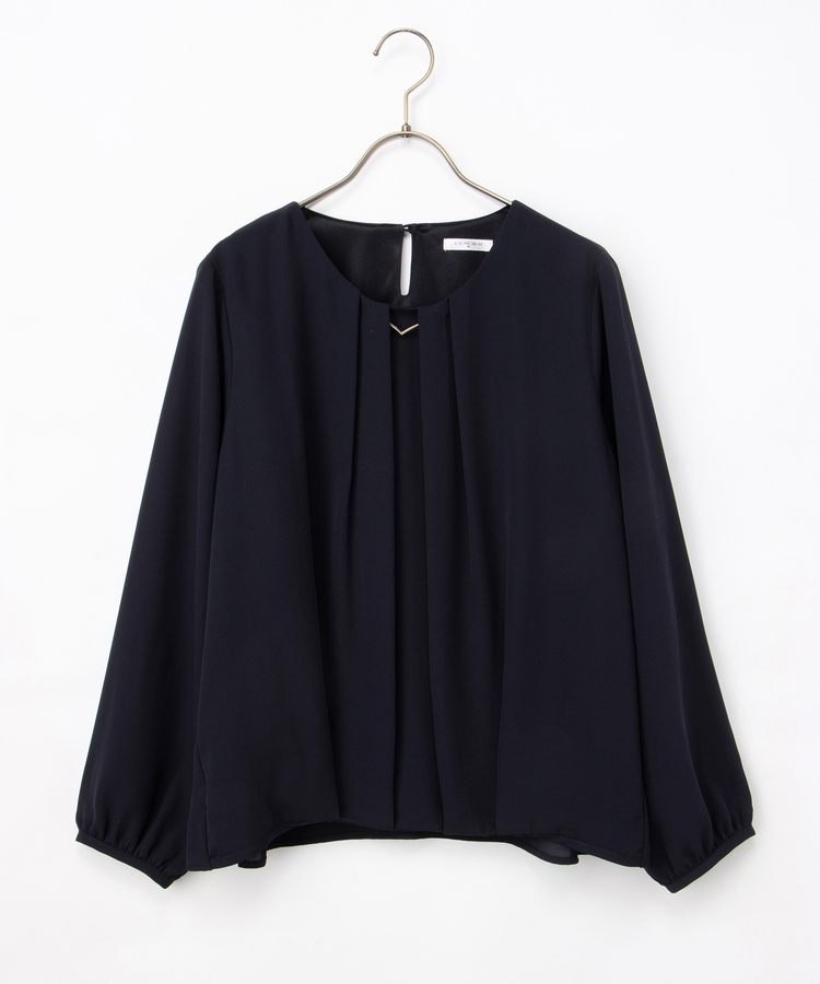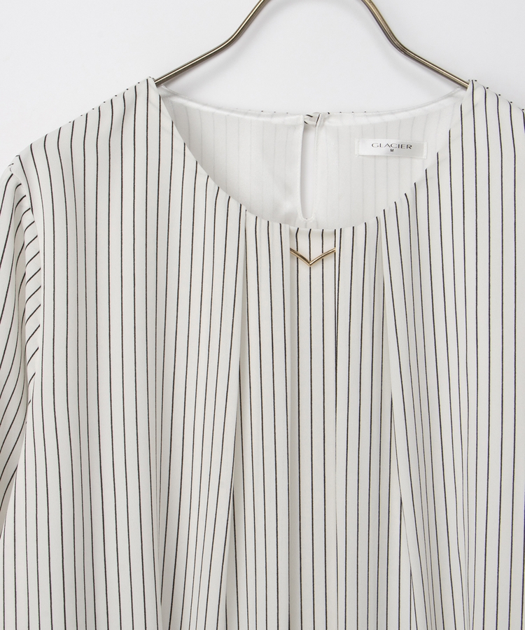衿元にさりげない華やかさをプラスするメタルパーツのアクセサリーは、シーンやコーデに合わせて取り外し可能。