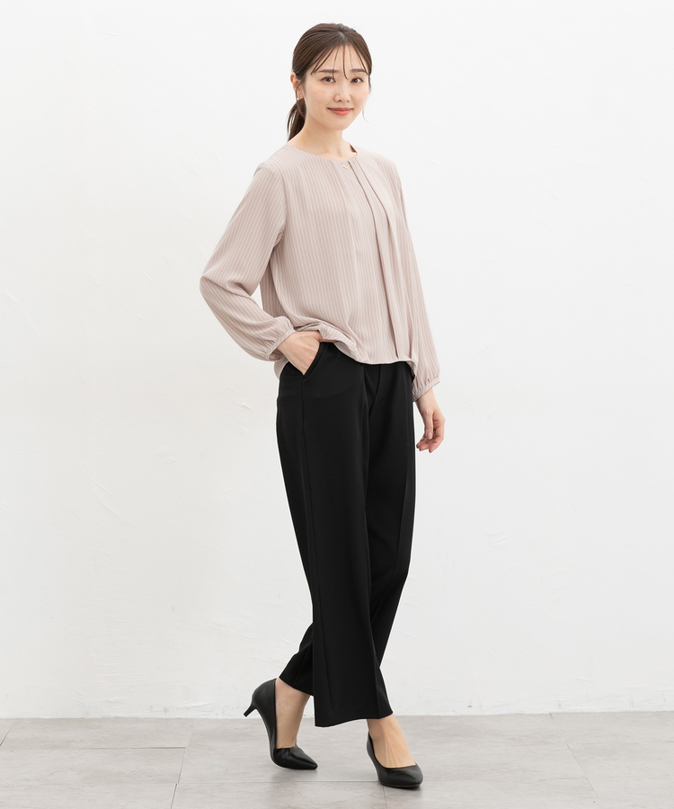 ジャケットにも合うサイズ感で、テーパードパンツやフレアスカートと好相性。