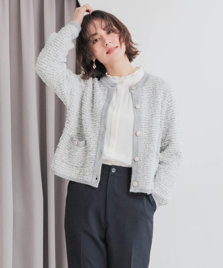 ツイード風クルーカーデ