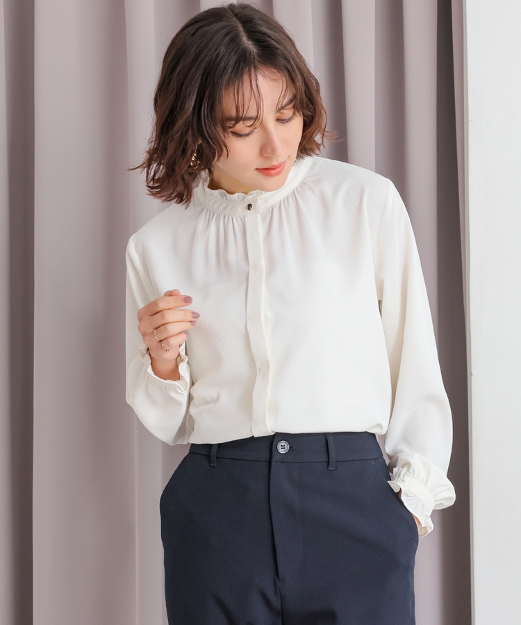 スタンドフリルブラウス