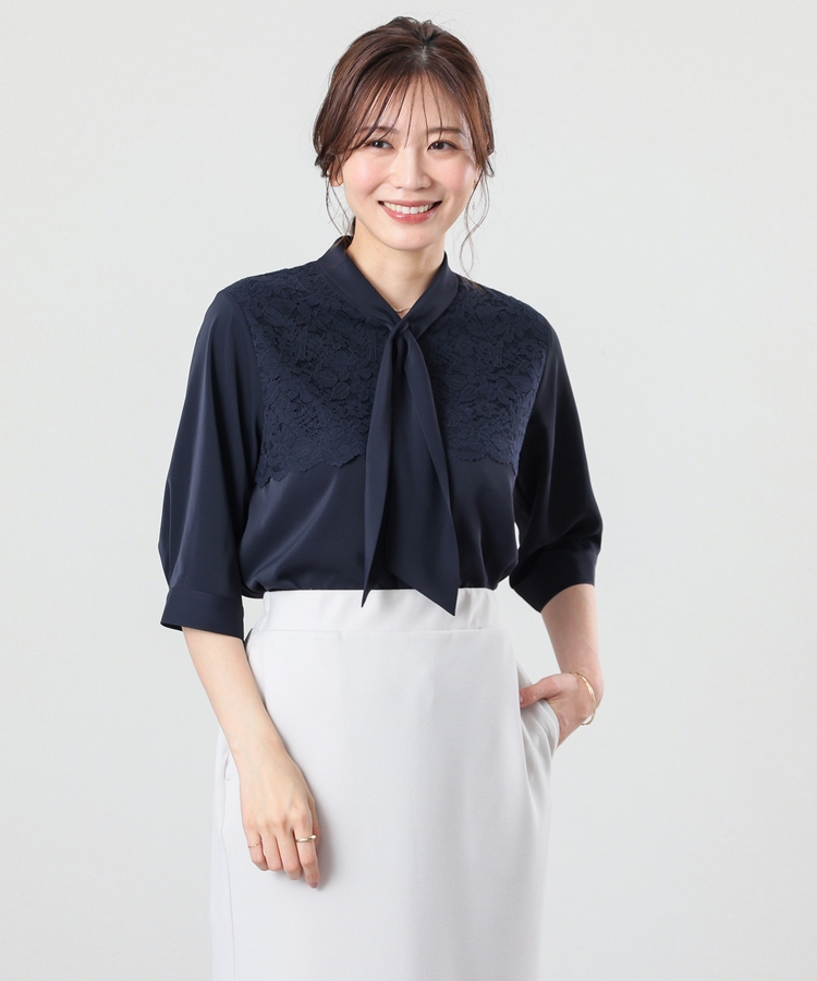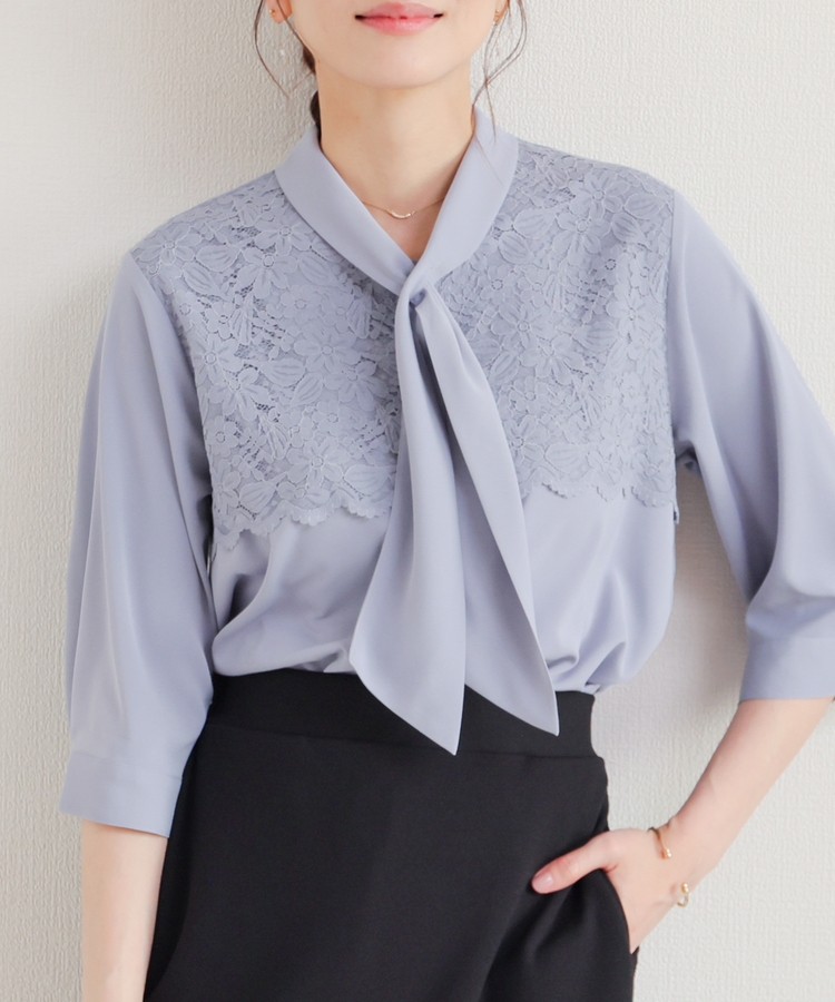 6分袖レース使いブラウス