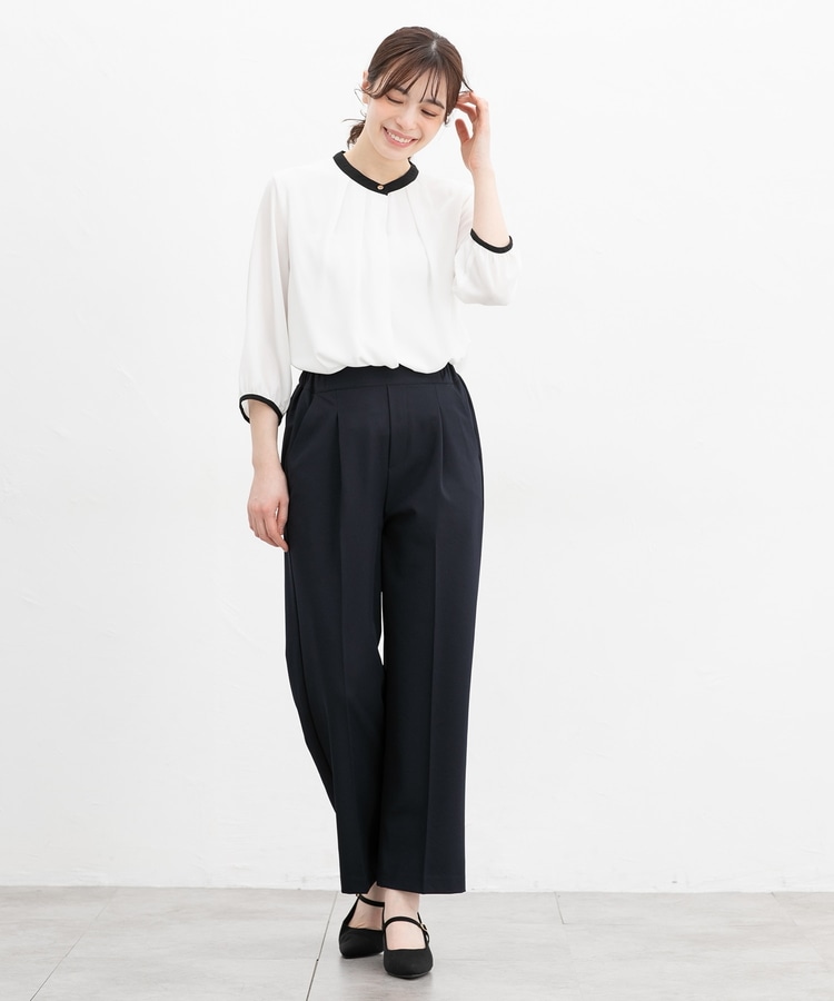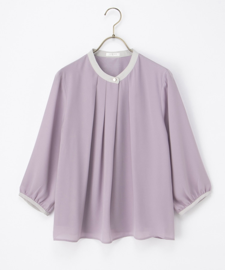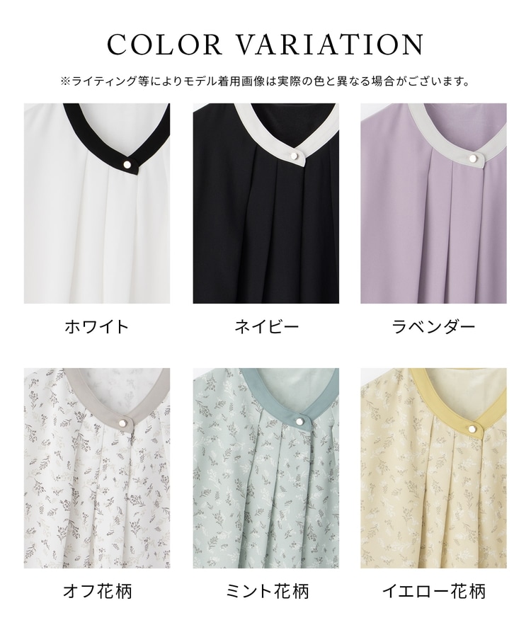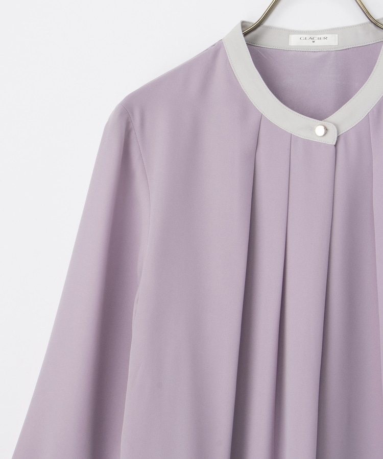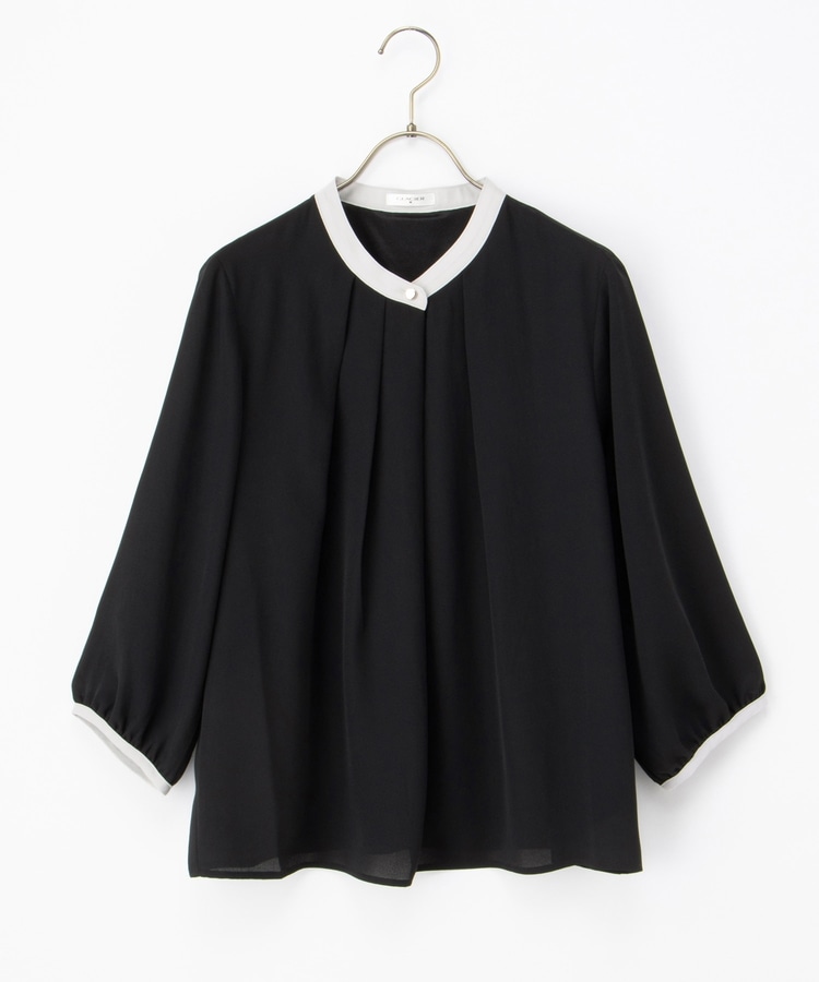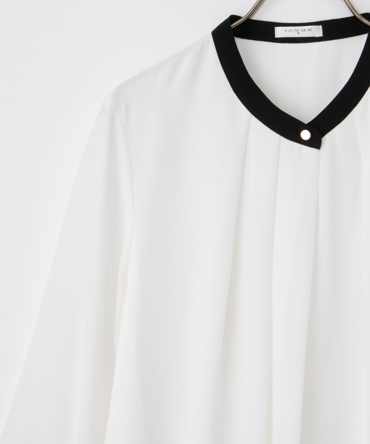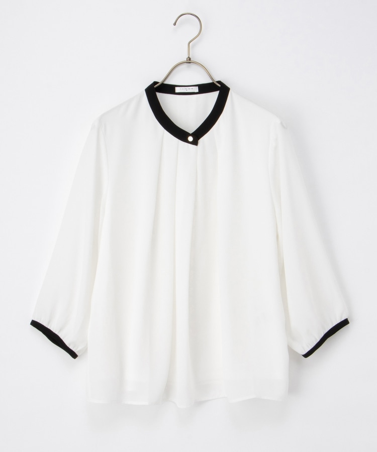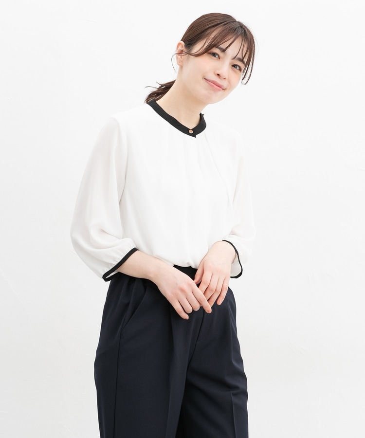 フェミニンなバンドカラーのえりぐりに配色をプラスした上品なデザイン。