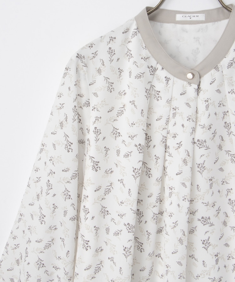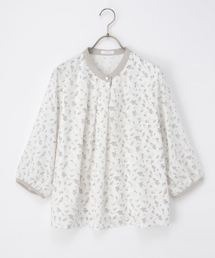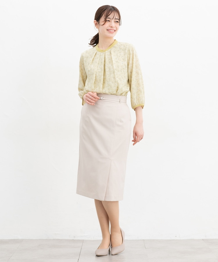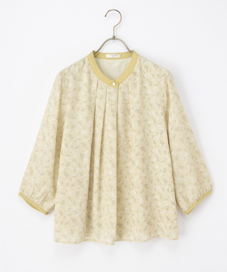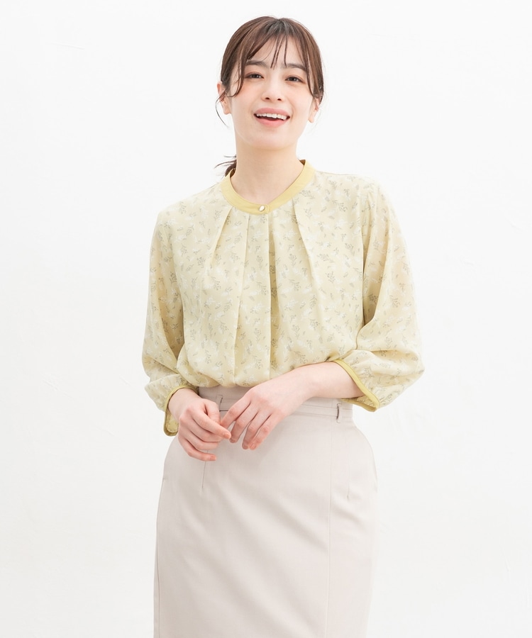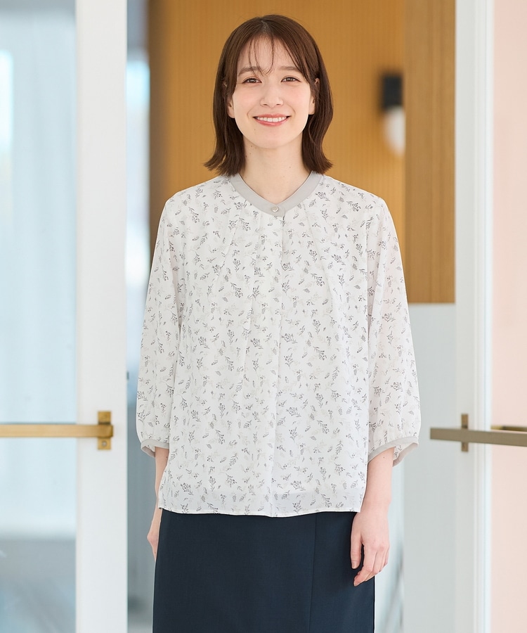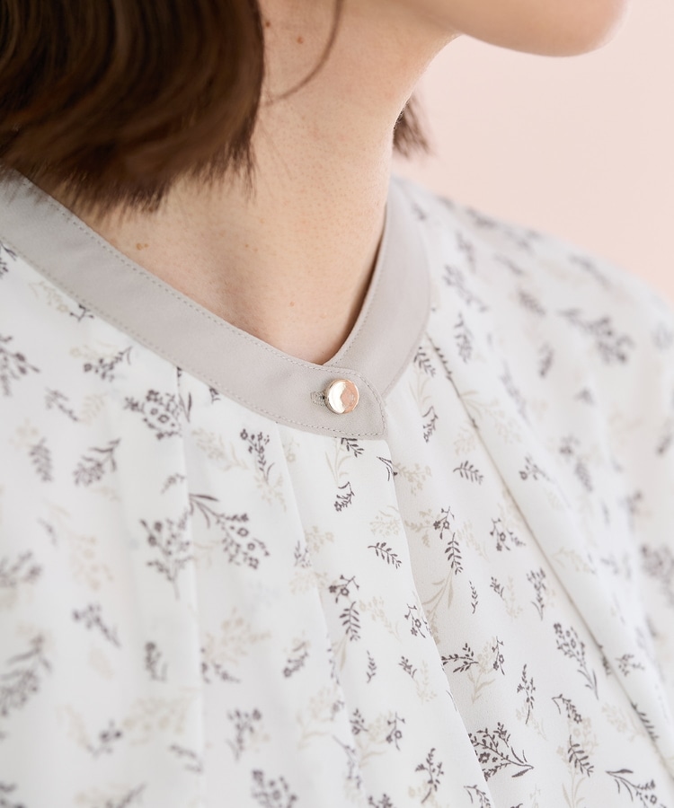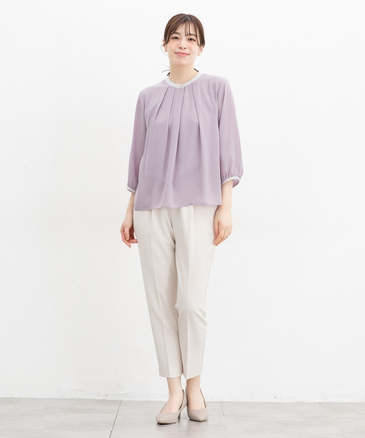 フェミニンなバンドカラーのえりぐりに配色をプラスした上品なデザイン。
