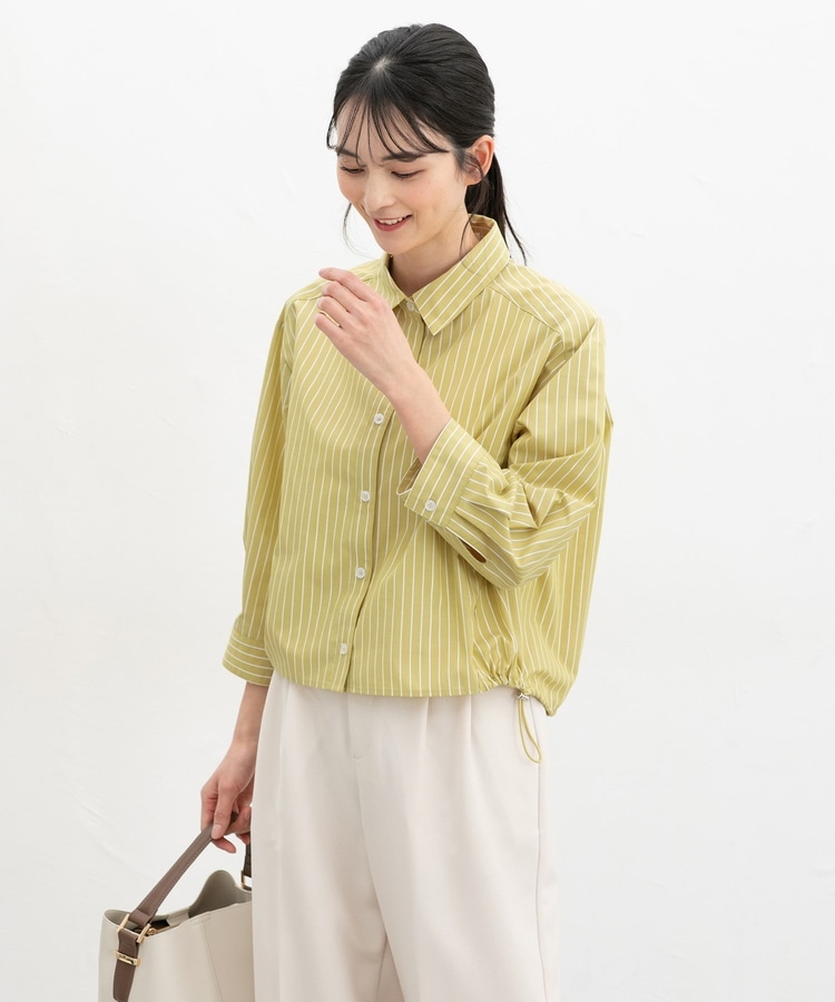 8分袖裾ドロストシャツ