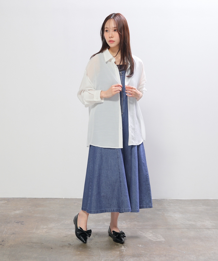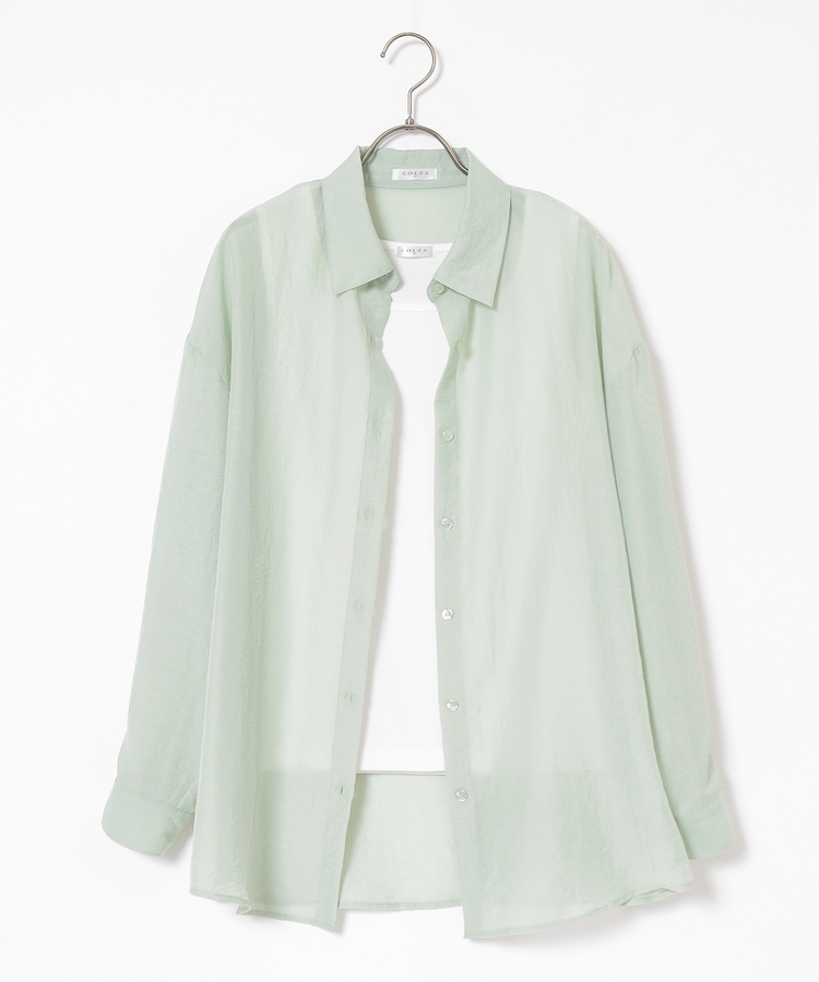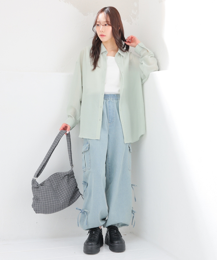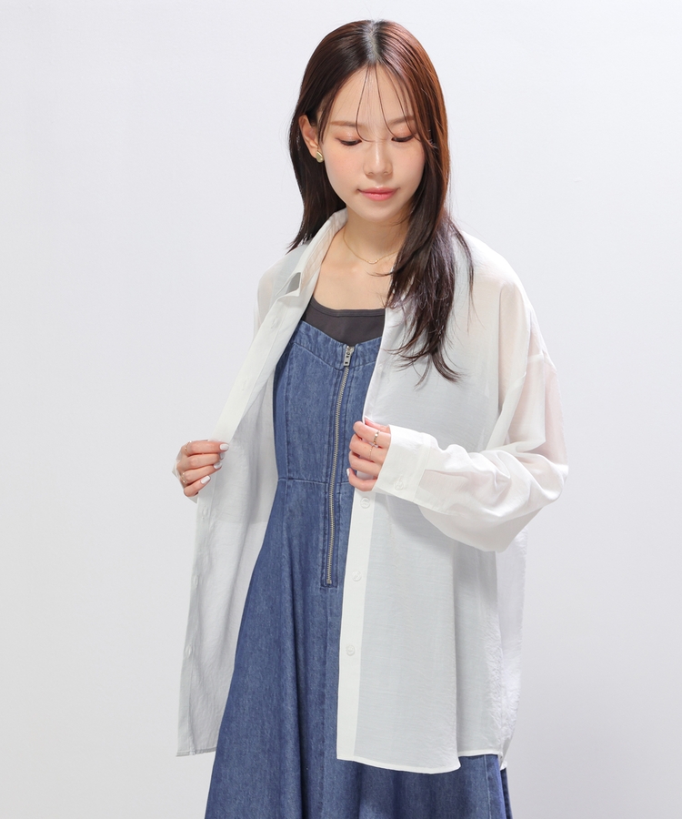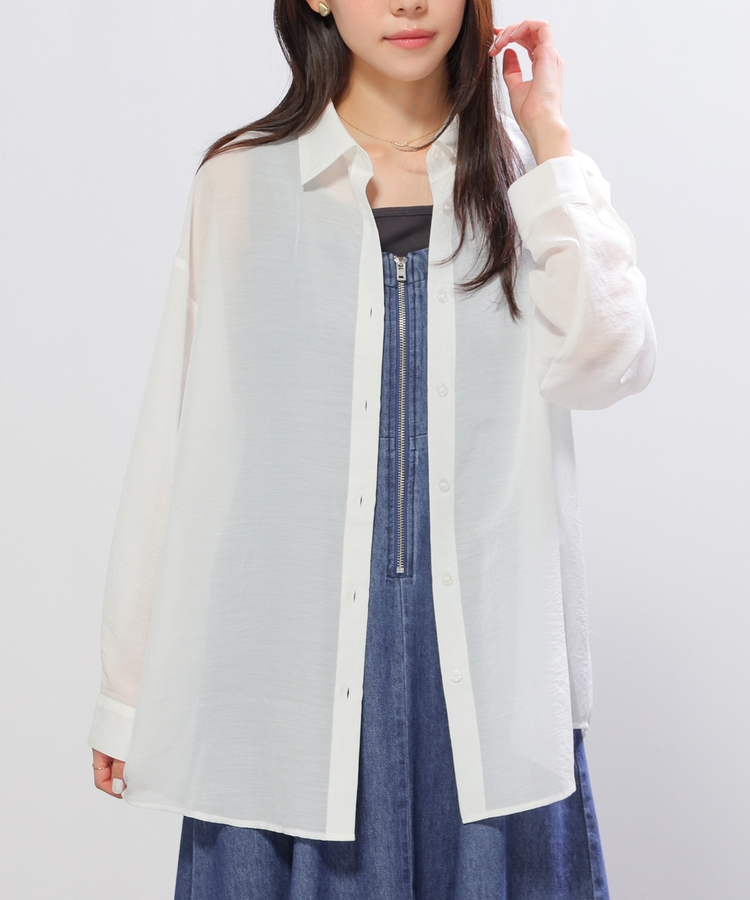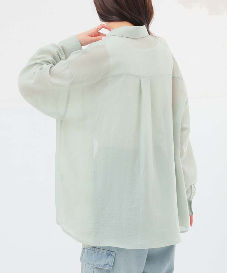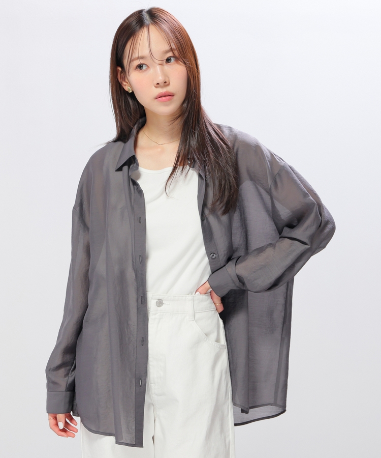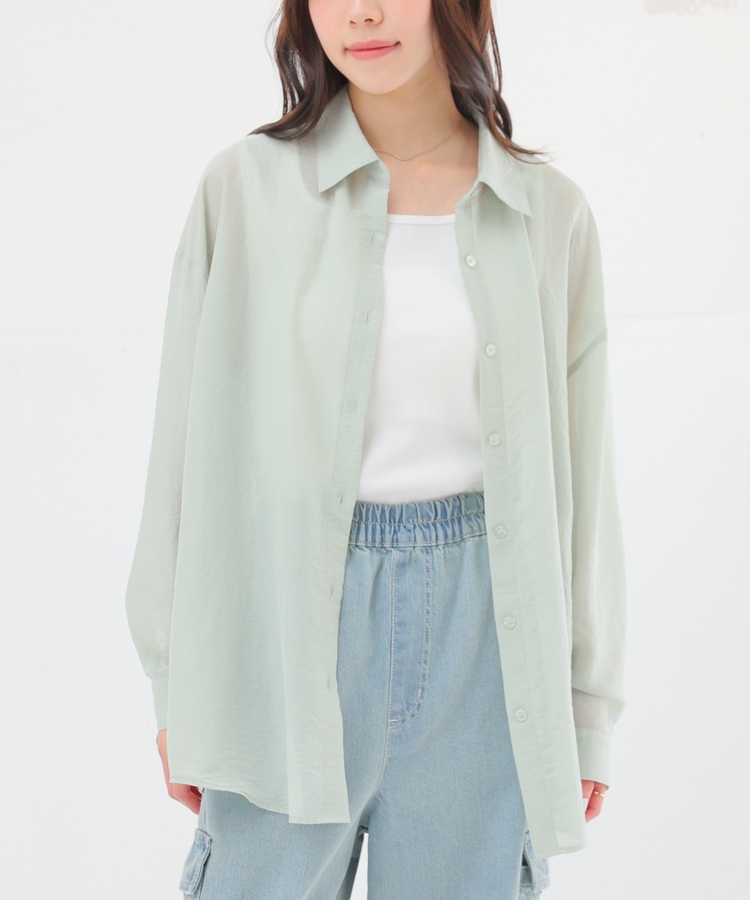 シャツは、ワッシャー加工で自然な風合いに仕上げた、程よい透け感のシアー素材。
