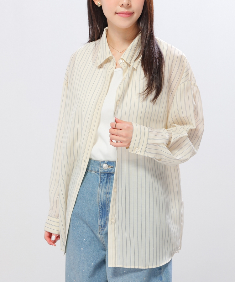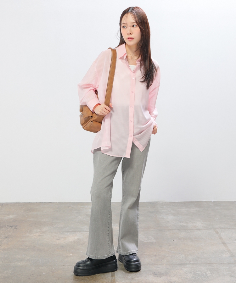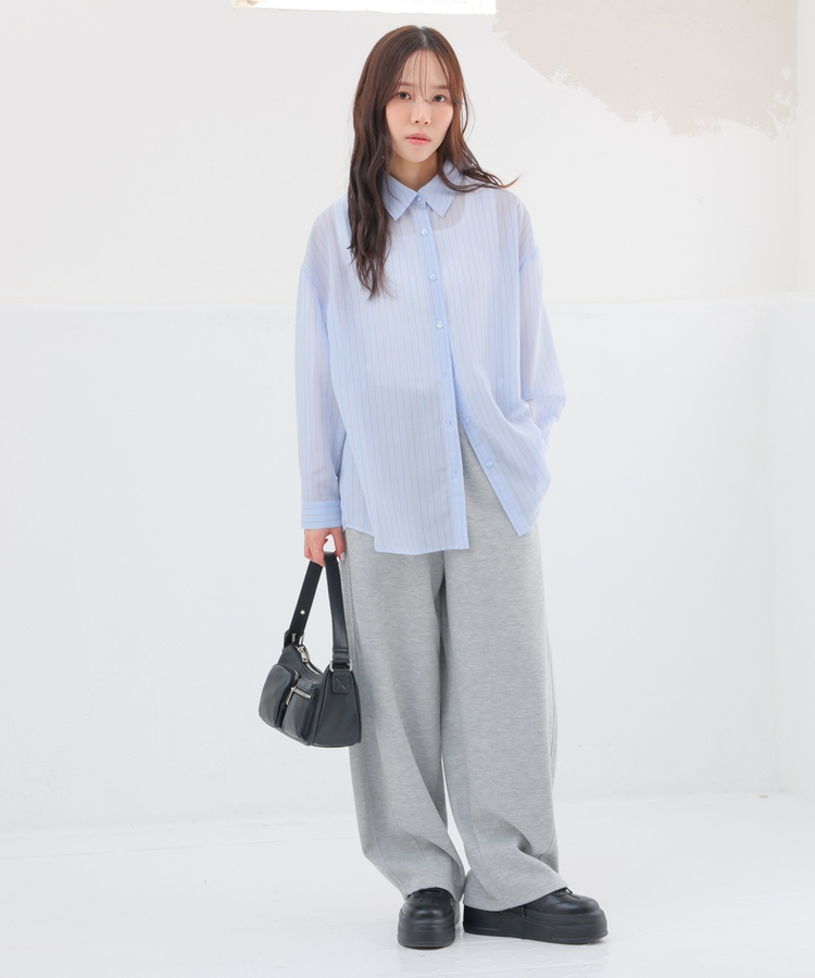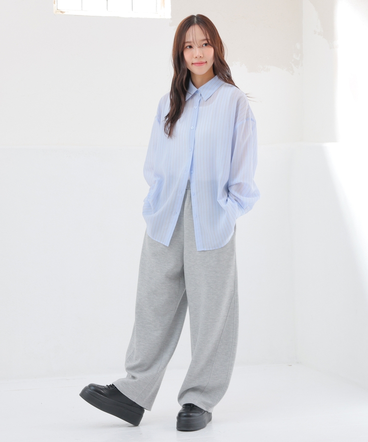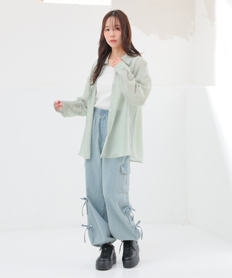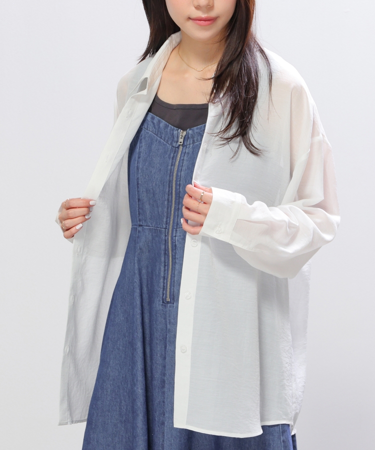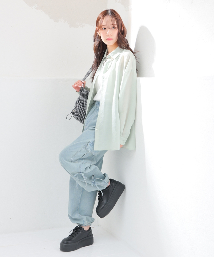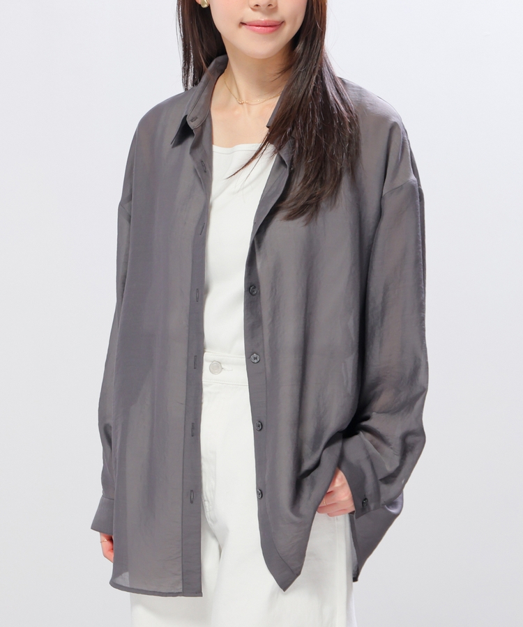 シャツは、ワッシャー加工で自然な風合いに仕上げた、程よい透け感のシアー素材。