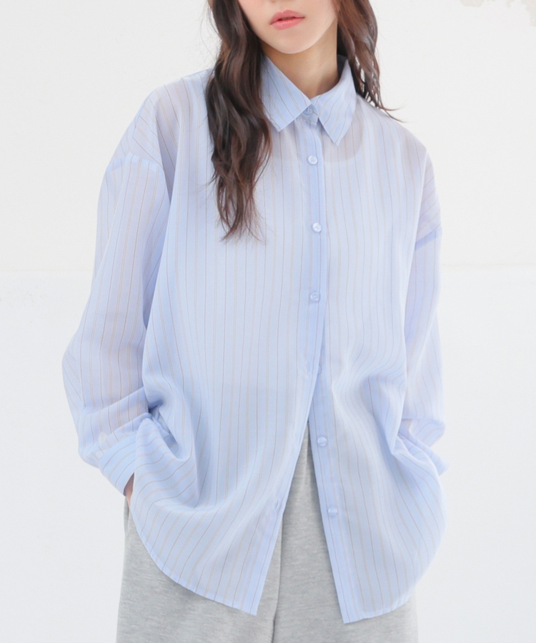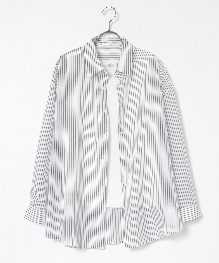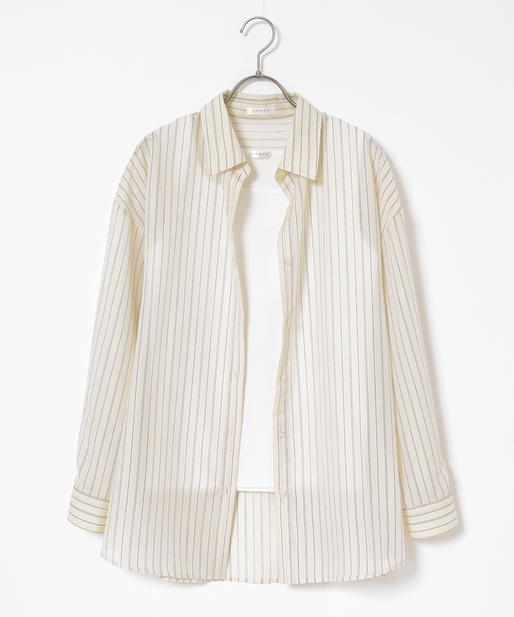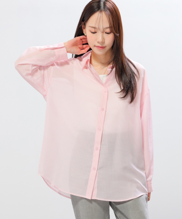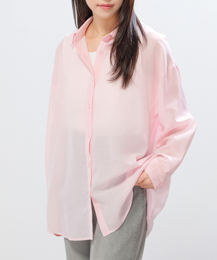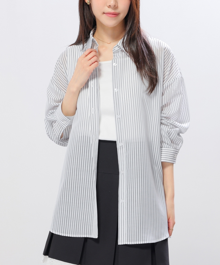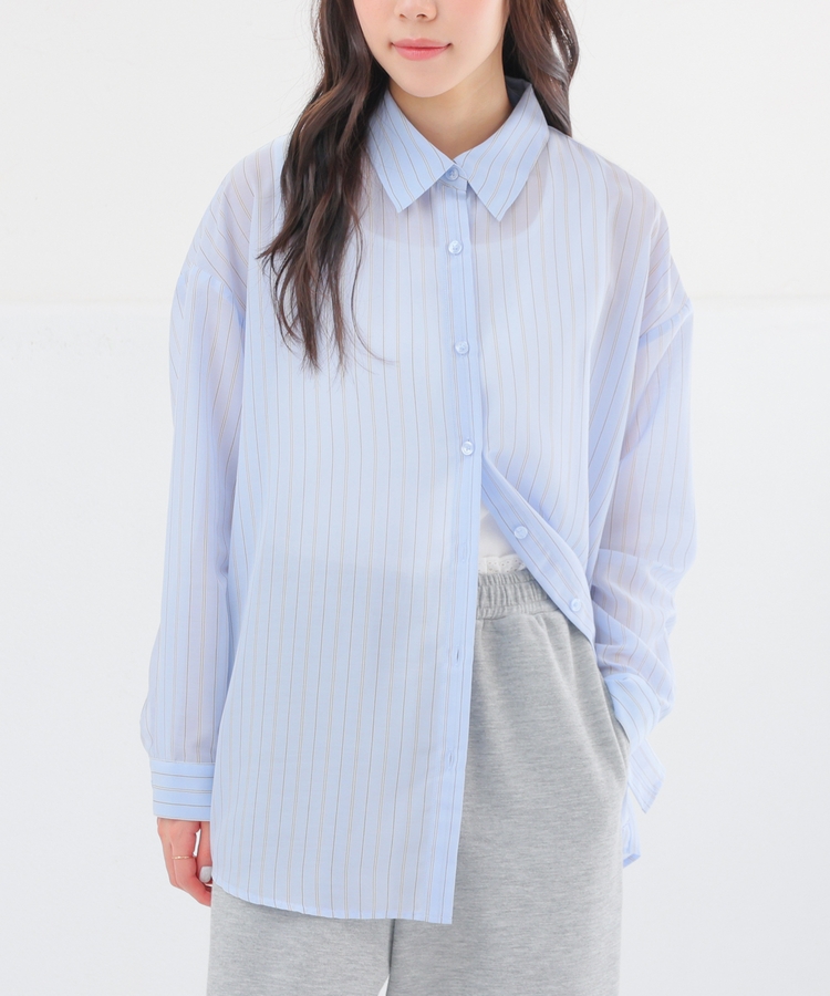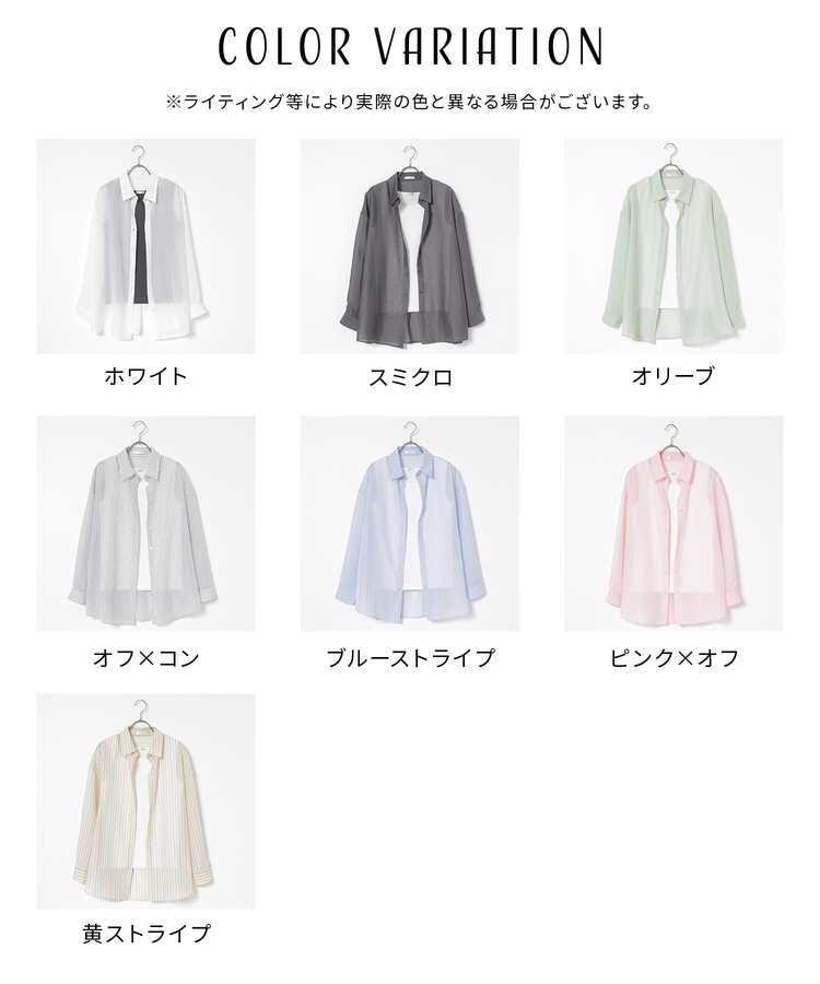 シャツは、ワッシャー加工で自然な風合いに仕上げた、程よい透け感のシアー素材。