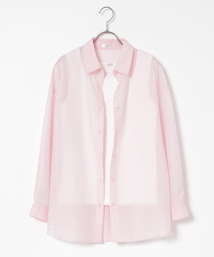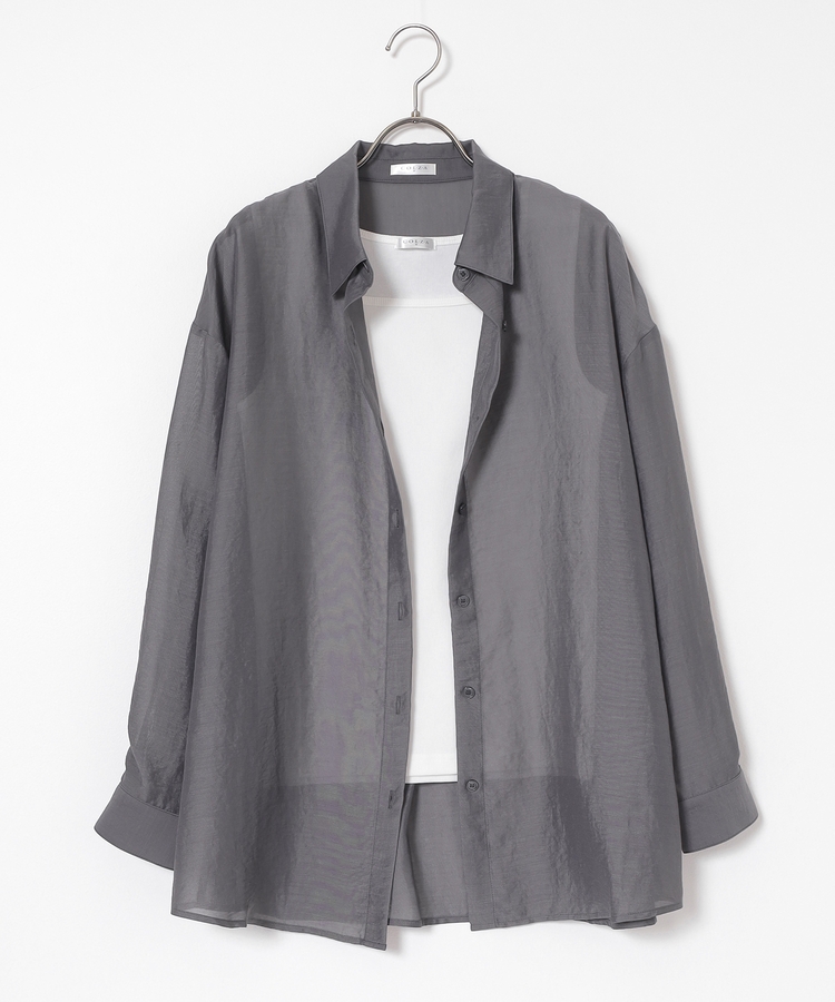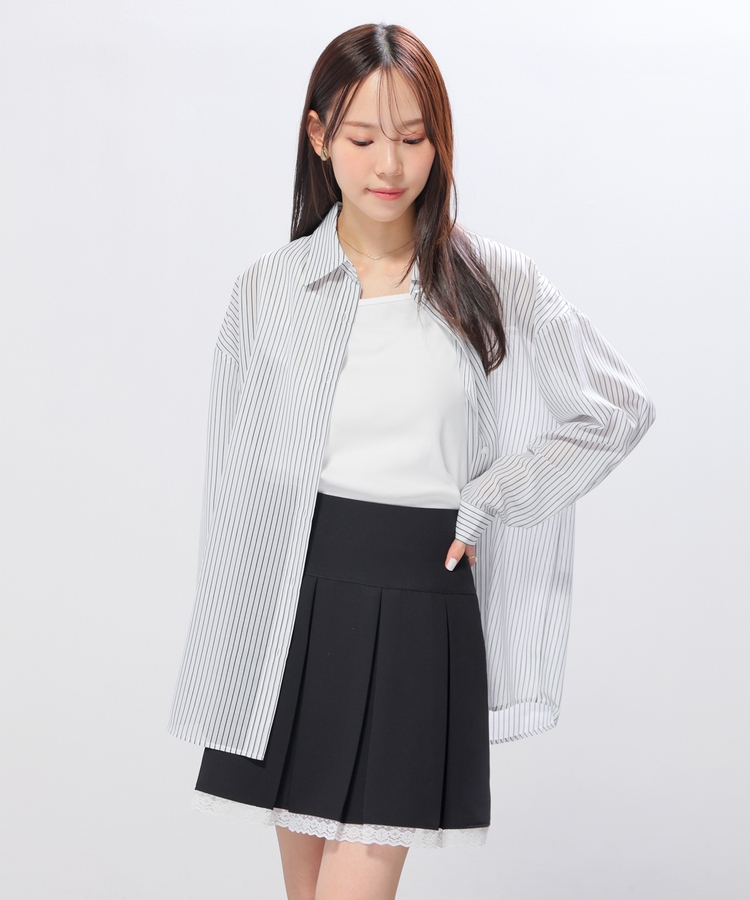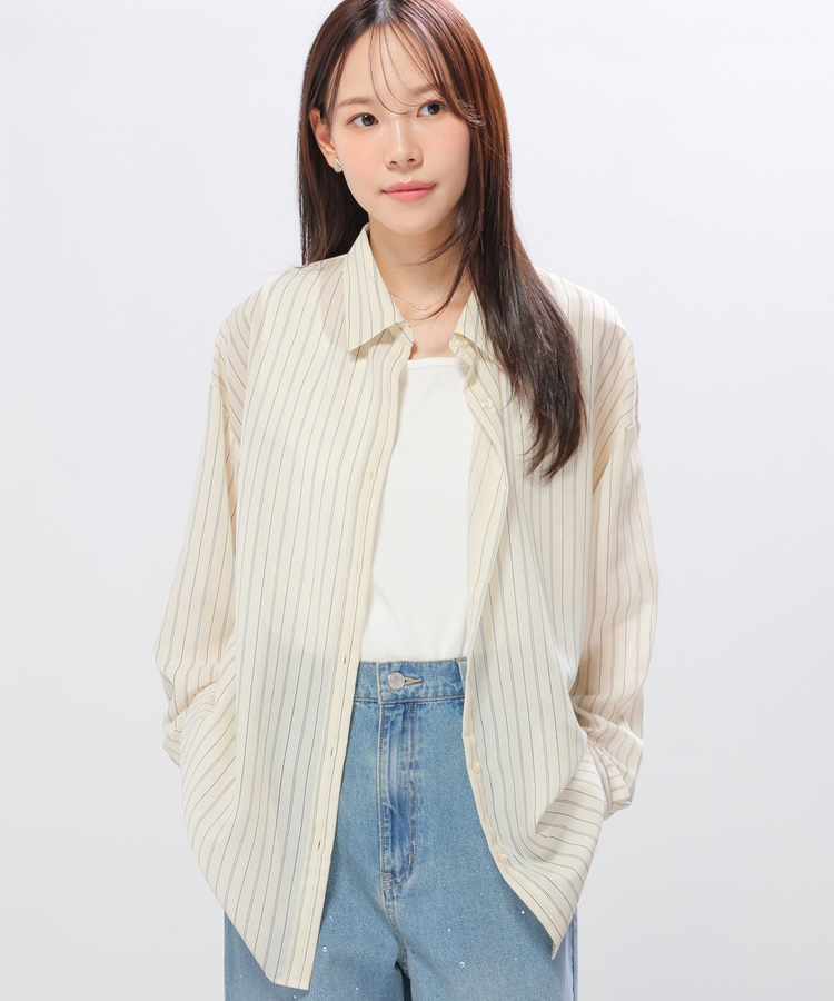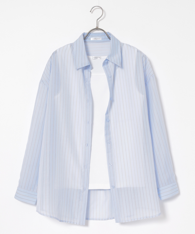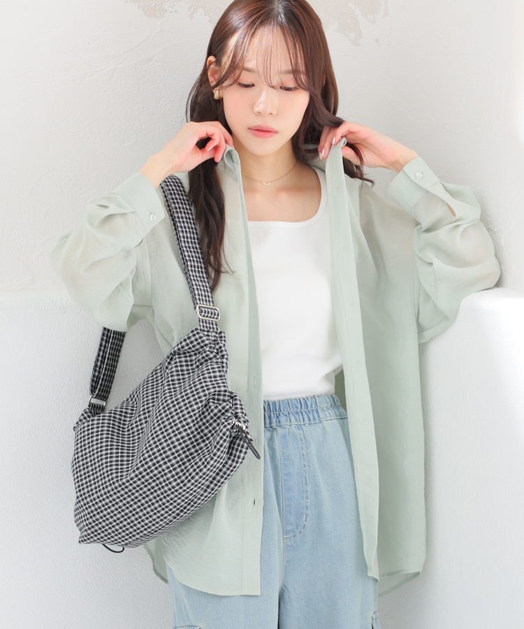さっと重ね着すれば簡単にトレンドスタイルが完成する、シアーシャツ×タンクトップのセット。
