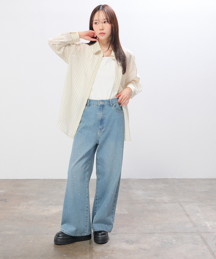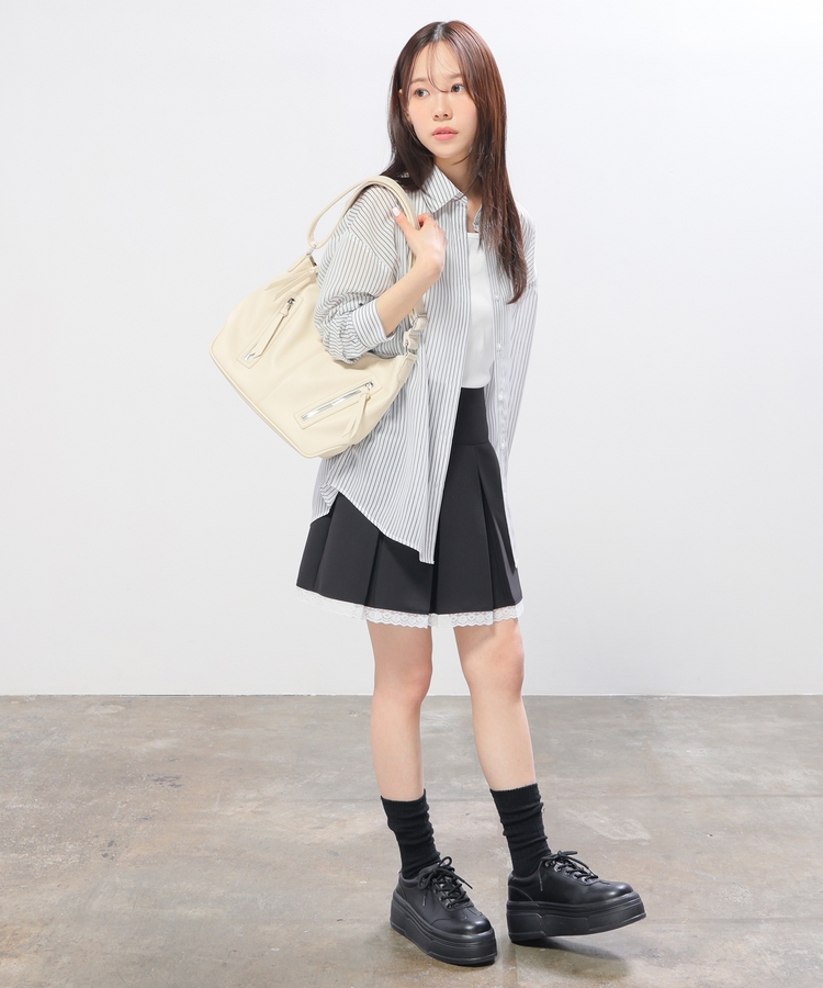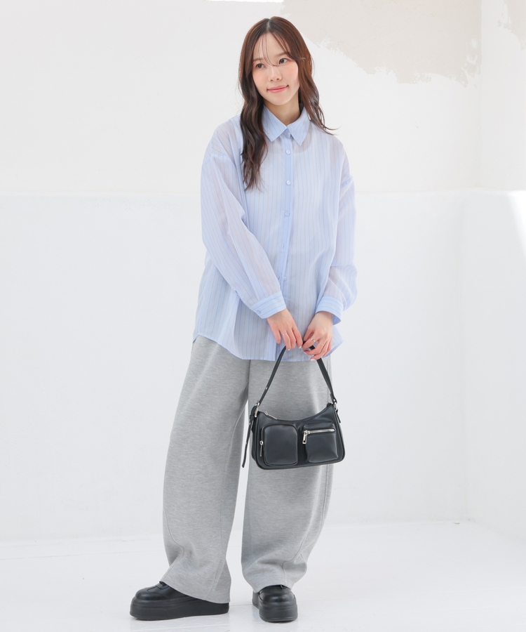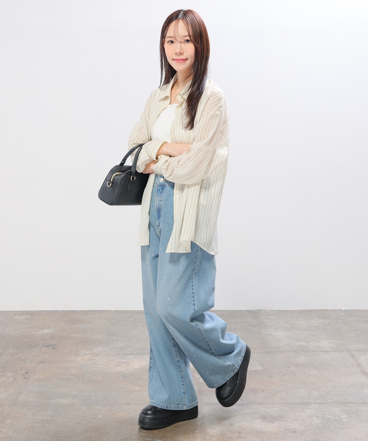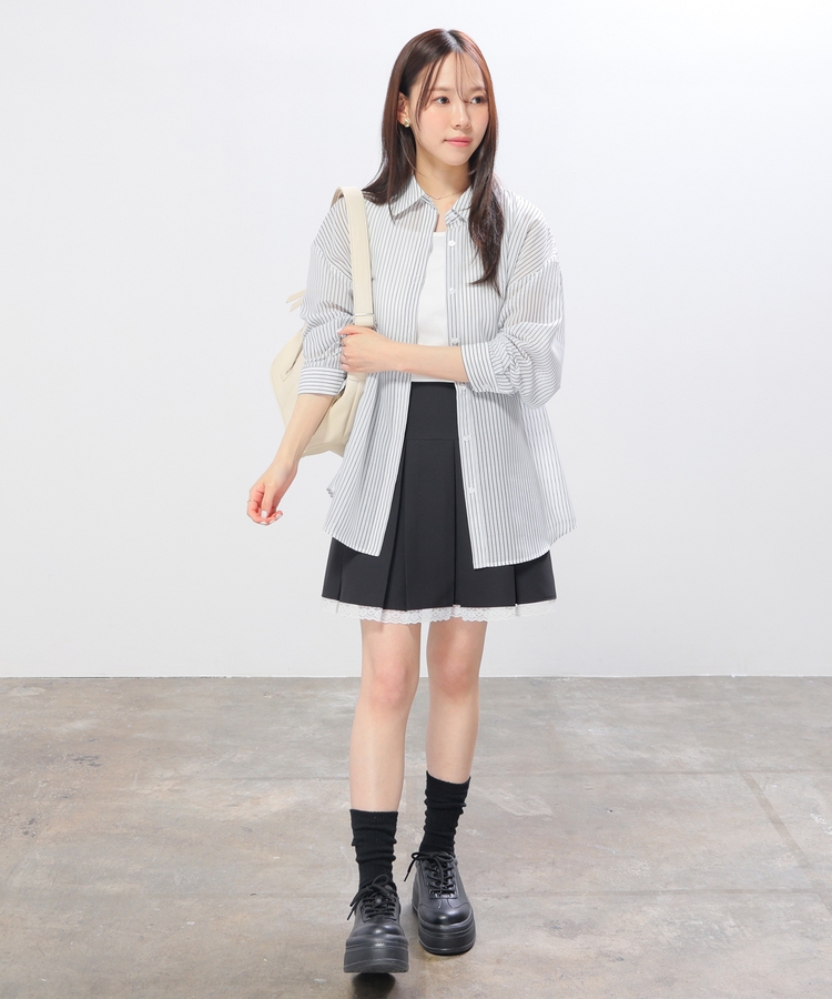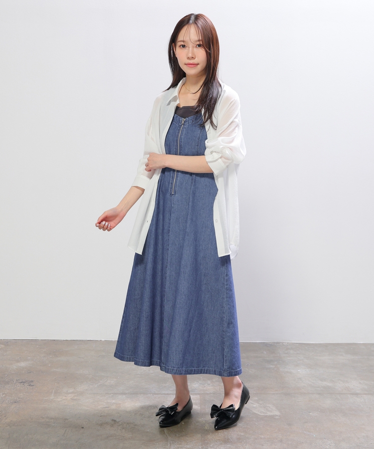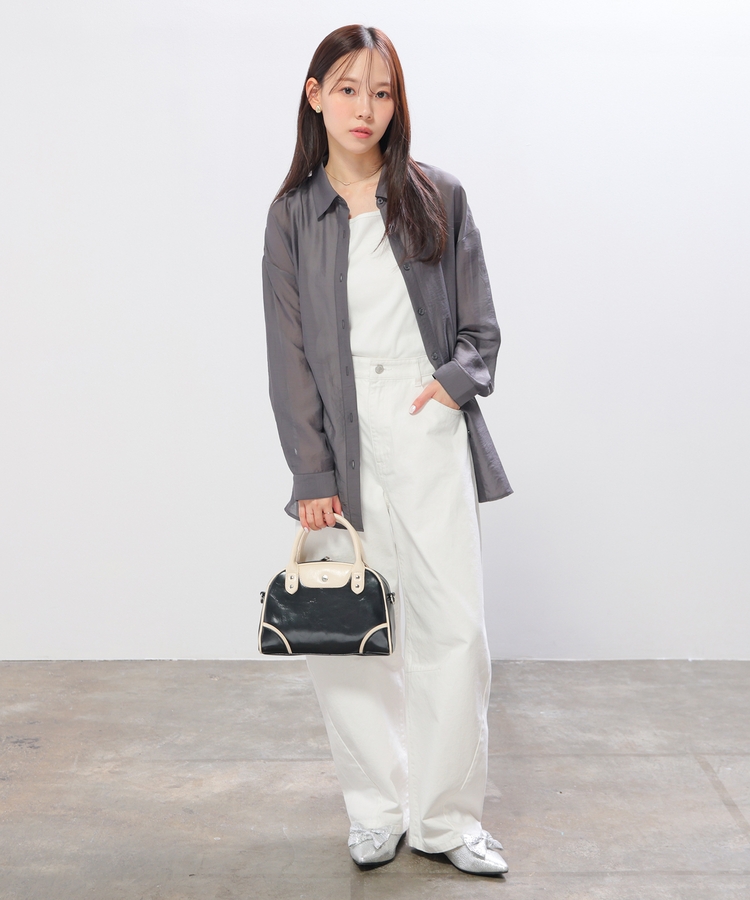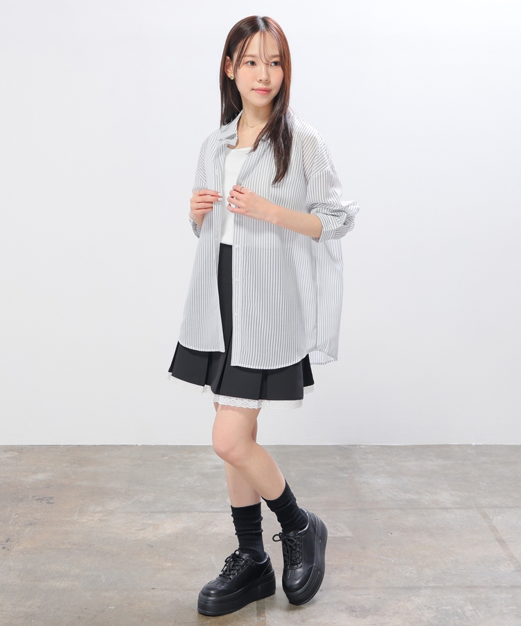 シャツはバックにタックを入れたゆったり幅&ヒップまですっぽり隠れる丈感で、華奢見えも叶うシルエット。
