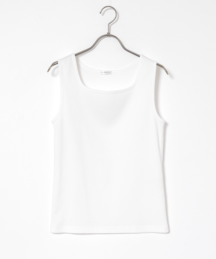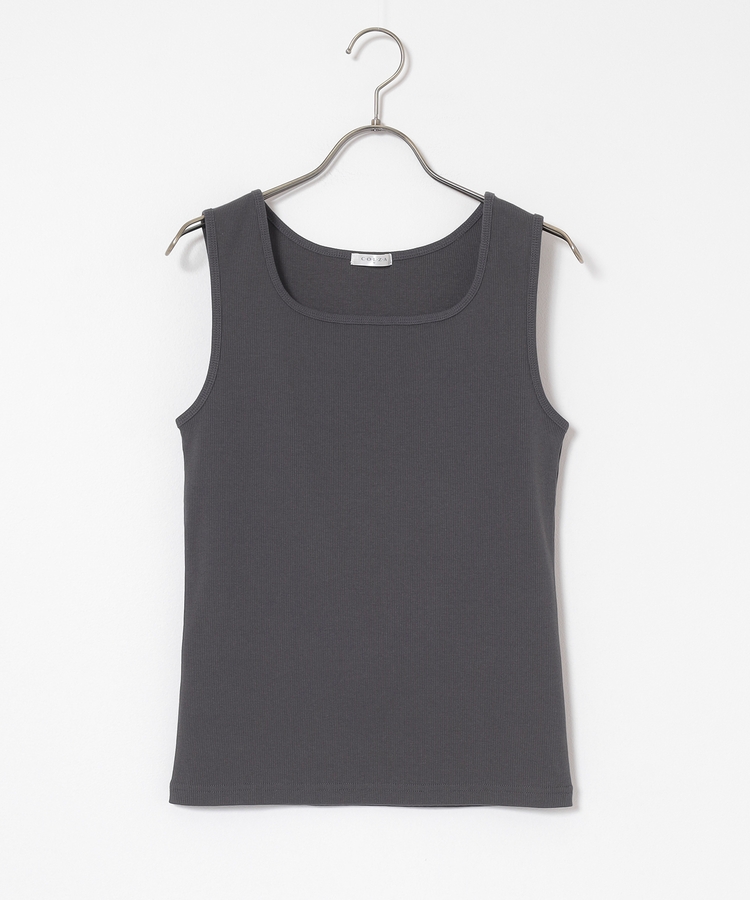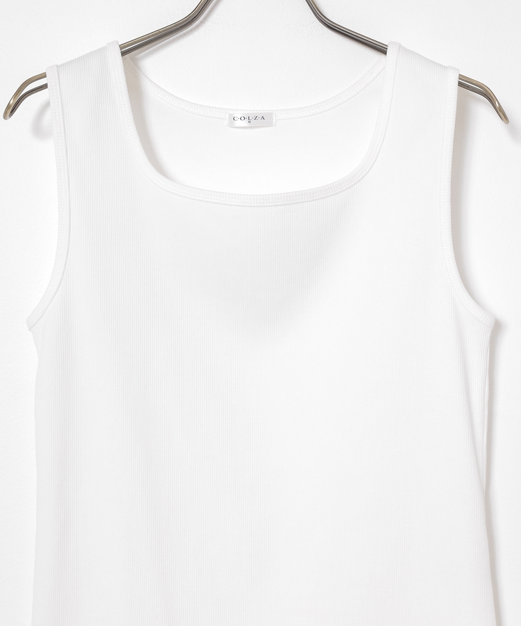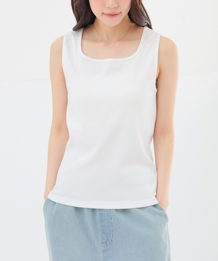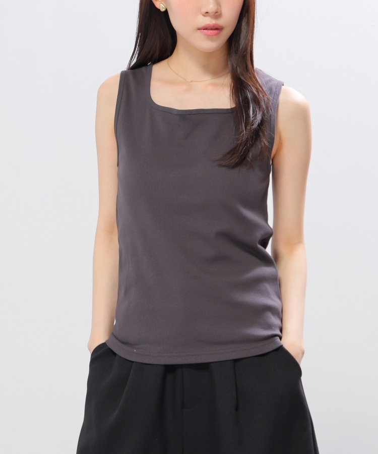 タンクトップはデコルテがきれいに見えるスクエアネック。