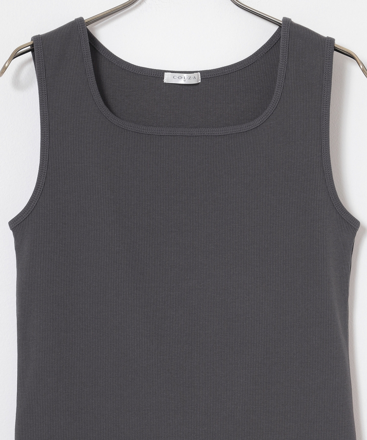 タンクトップは、伸縮性があり快適な着心地の綿混テレコ素材。