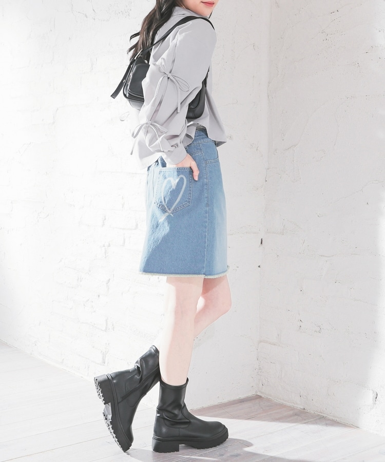 Tシャツやスウェット合わせはもちろん、コンパクトトップスと合わせて後ろのデザインを見せるのがおすすめ。