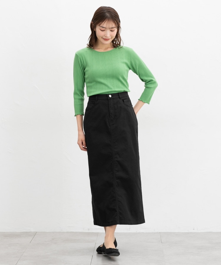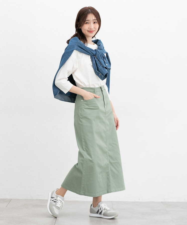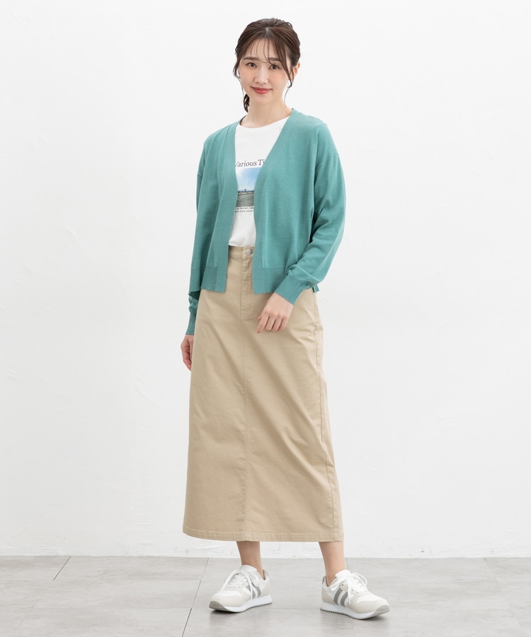 ボーダートップスやロゴスウェットと合わせたカジュアルスタイルはもちろん、ボウタイやハイネックのブラウスと合わせたきれいめスタイルなどにも、幅広く活躍。