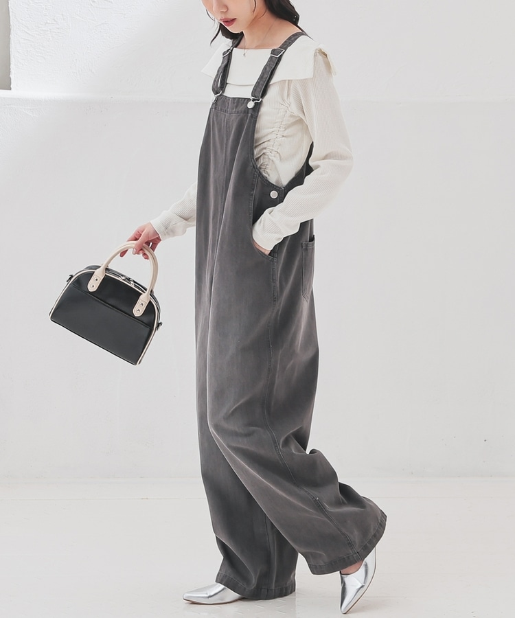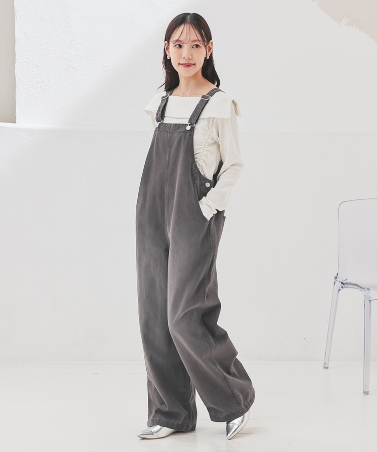 春夏はTシャツやブラウス、秋冬はスウェットやニットなど、インナー次第でテイストががらりと変わり、幅広い着回しに活躍。
